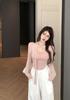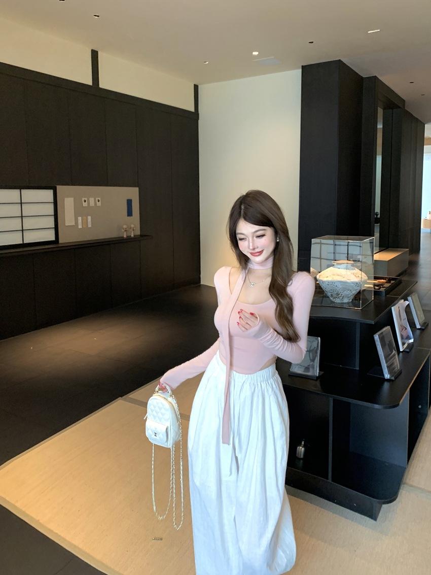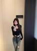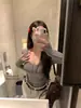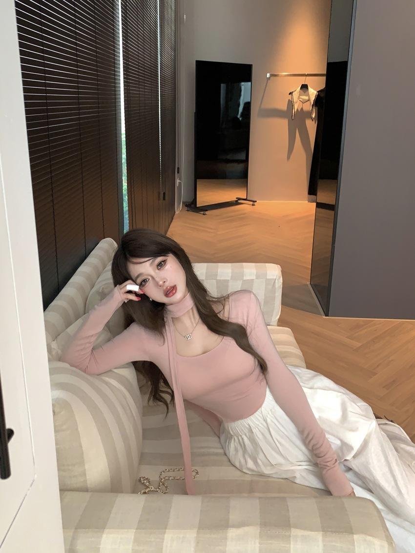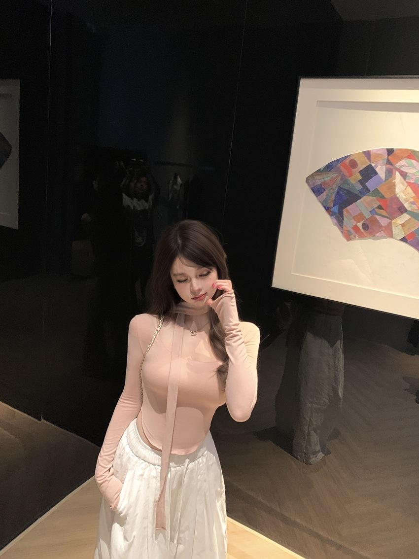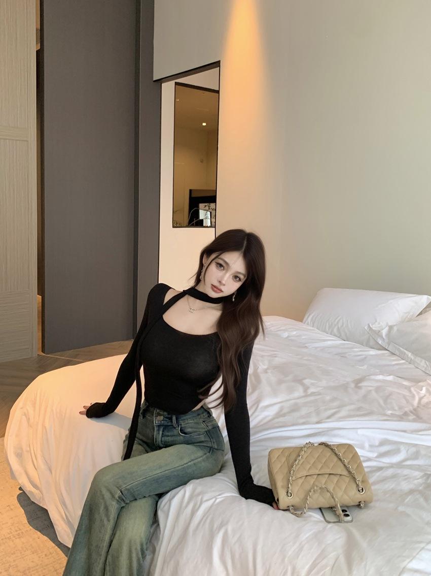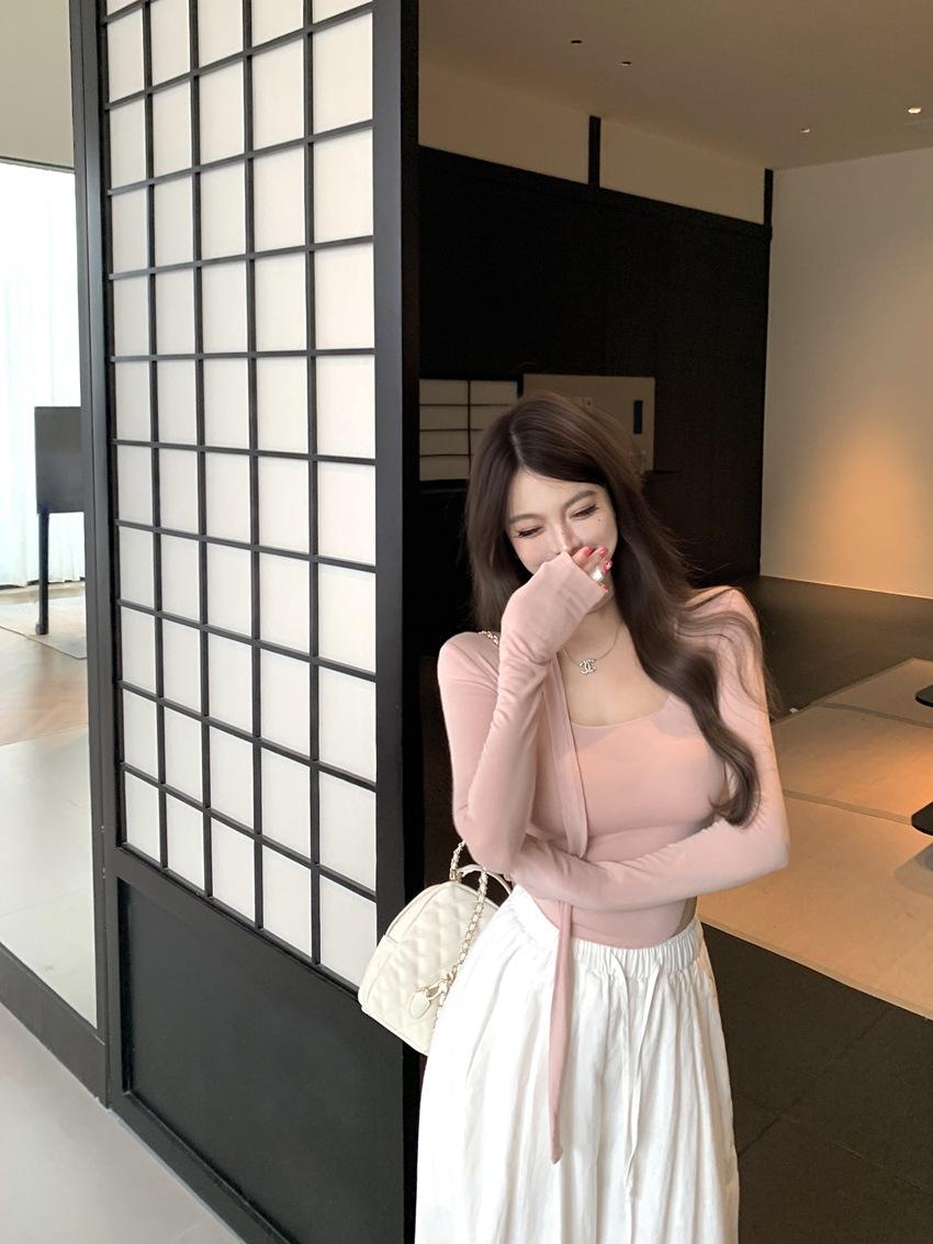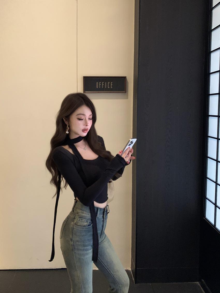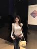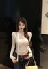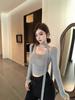 Foto Real 2025 Deseo Puro Estilo Chica Caliente Cuello U Cinta Manga Larga Camiseta Mujer Corta Adelgazante Elástica Top Camiseta Base