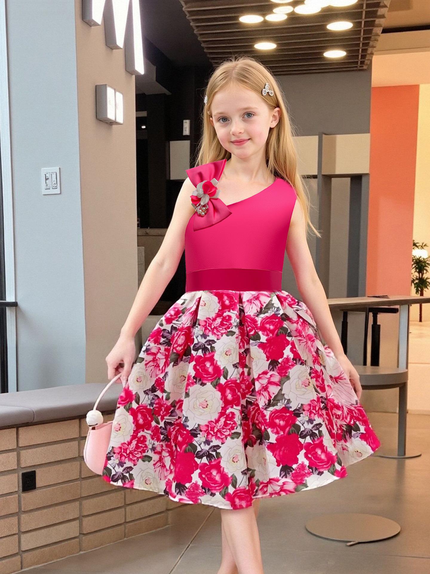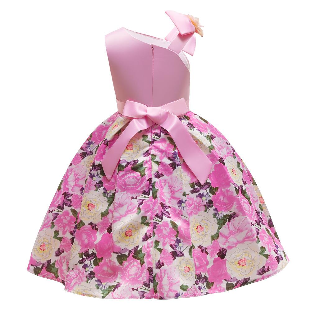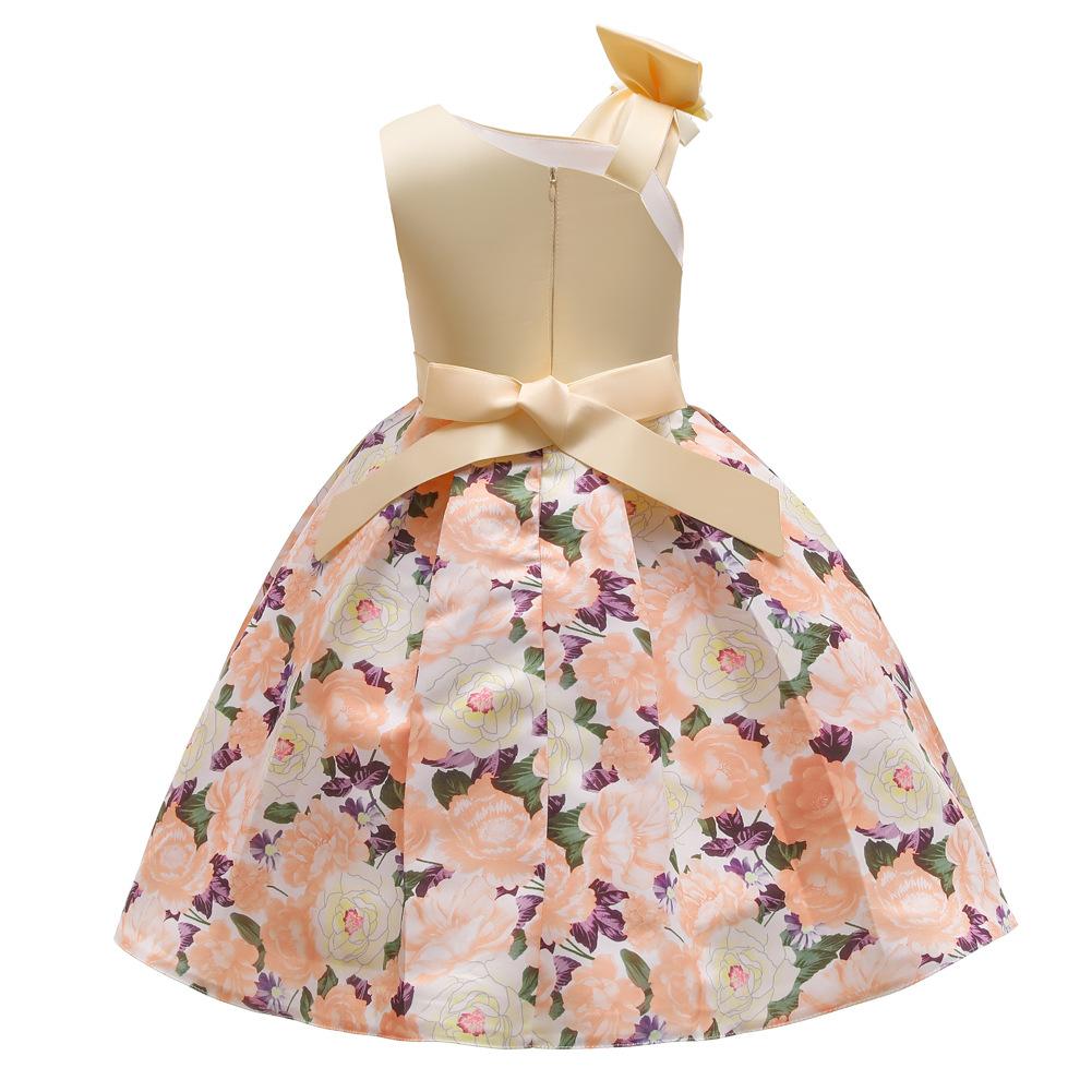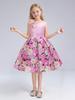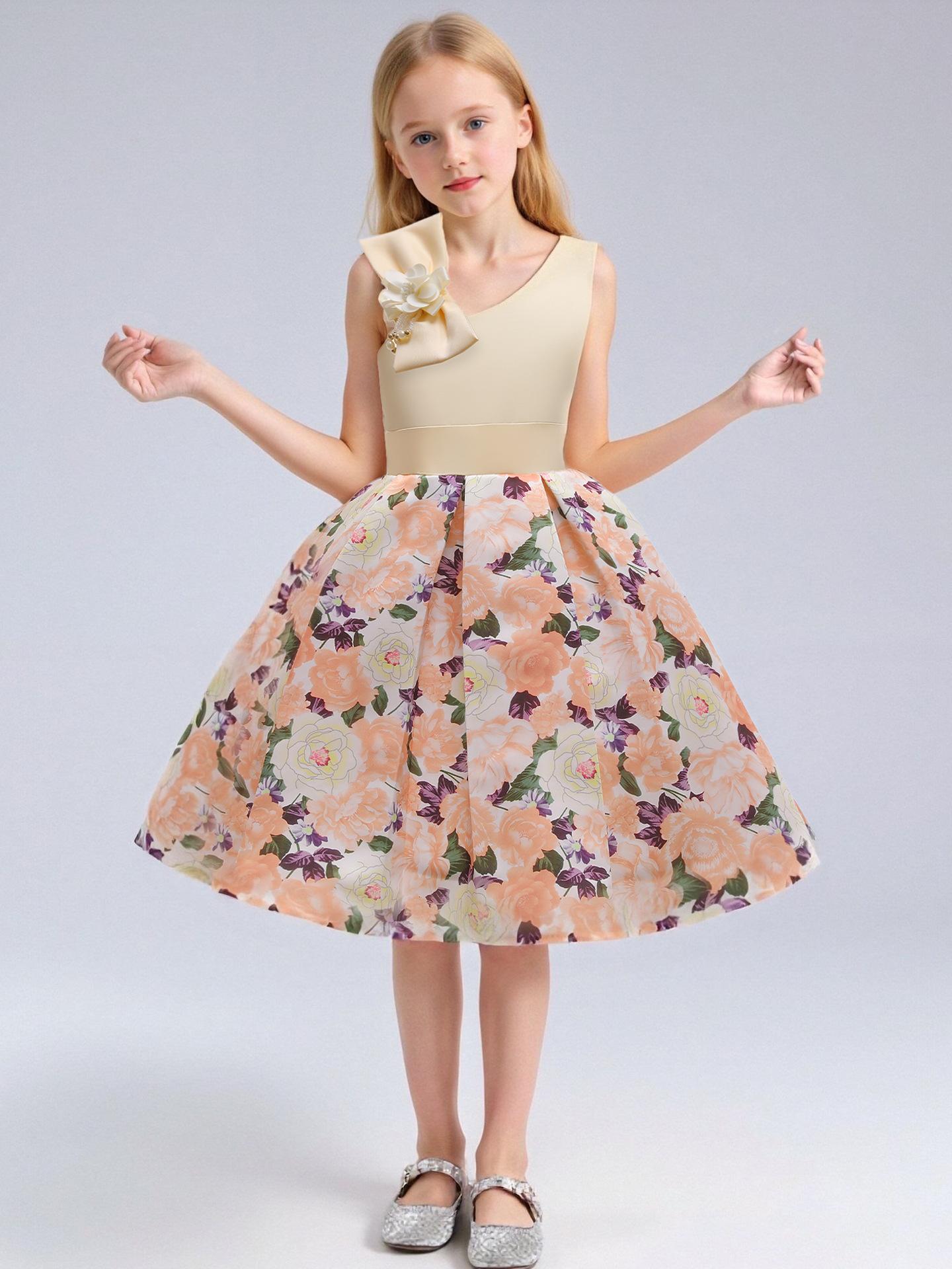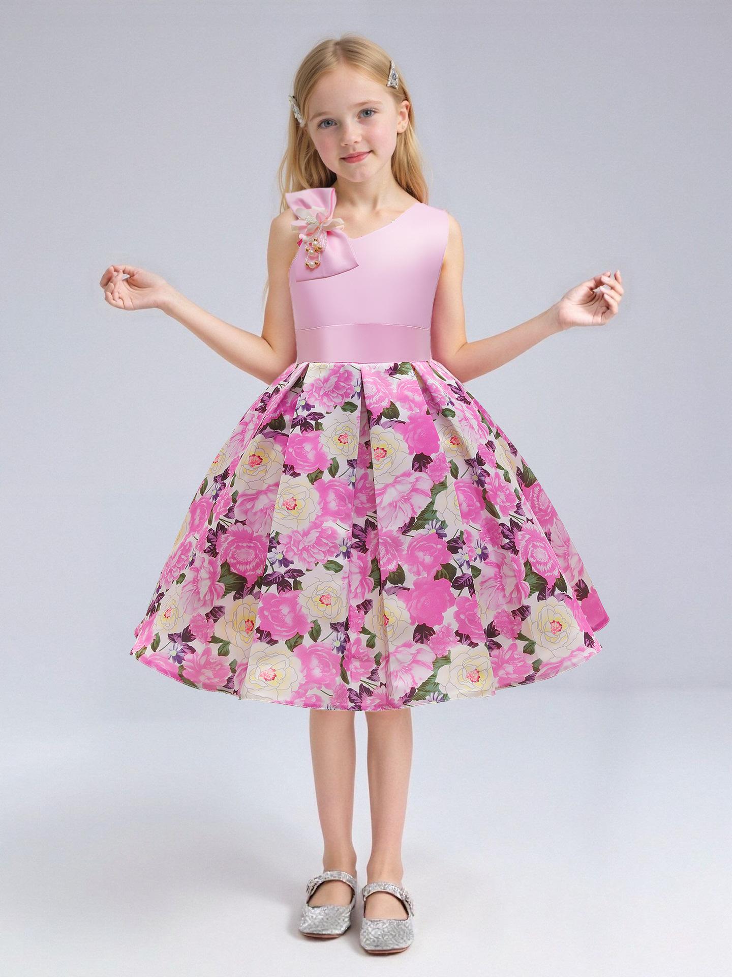 Vestido de Niña Transfronterizo Ropa de Actuación Vestido Chaleco Estampado para Niñas Vestido de Princesa con Lazo Plisado para Niños K2