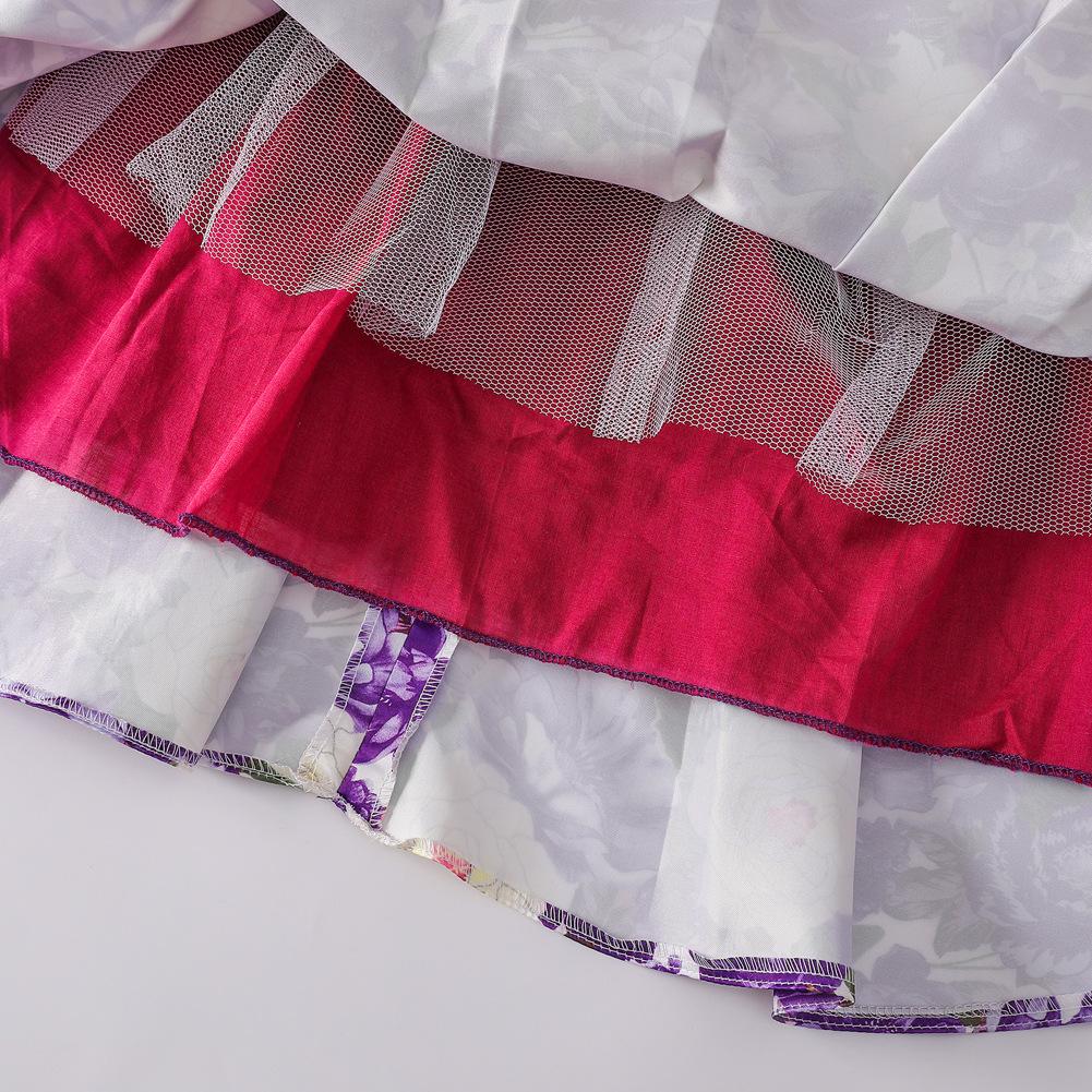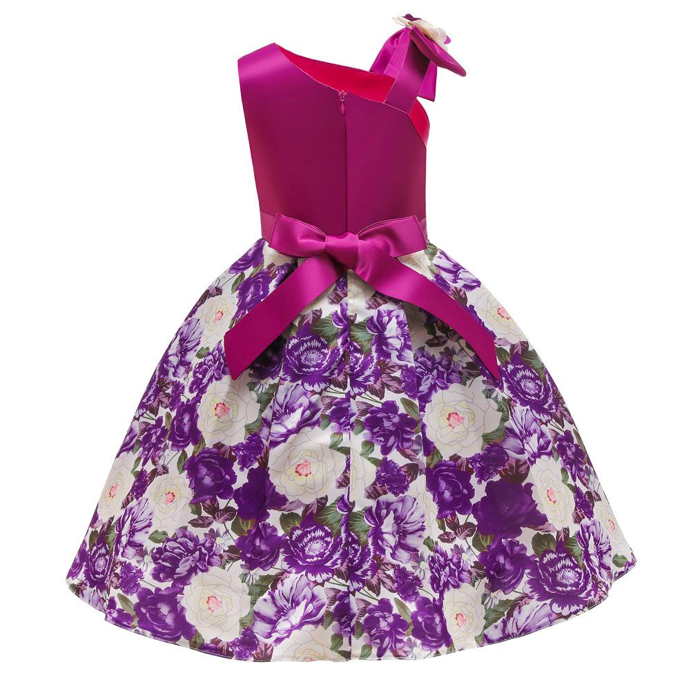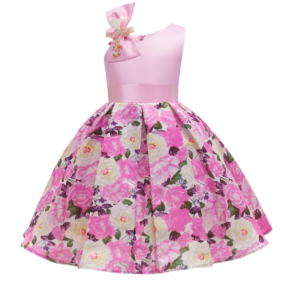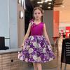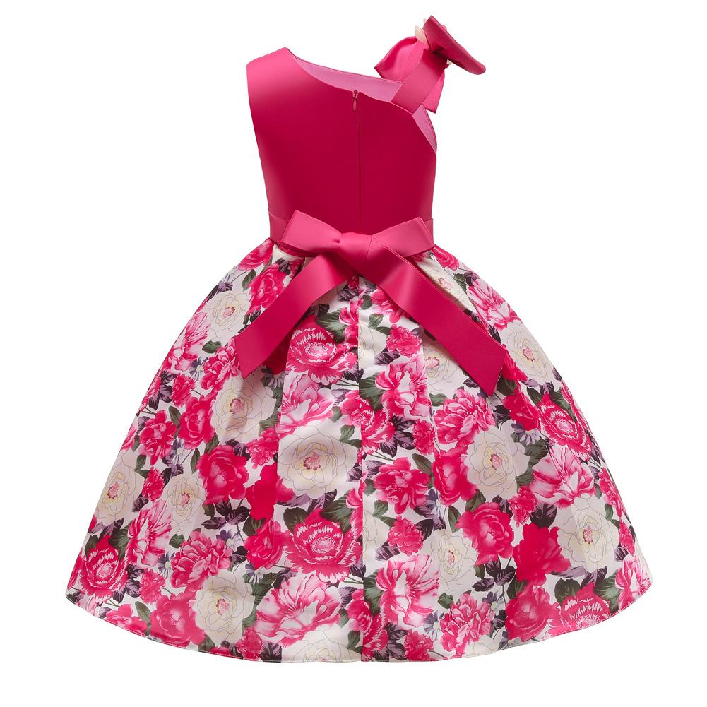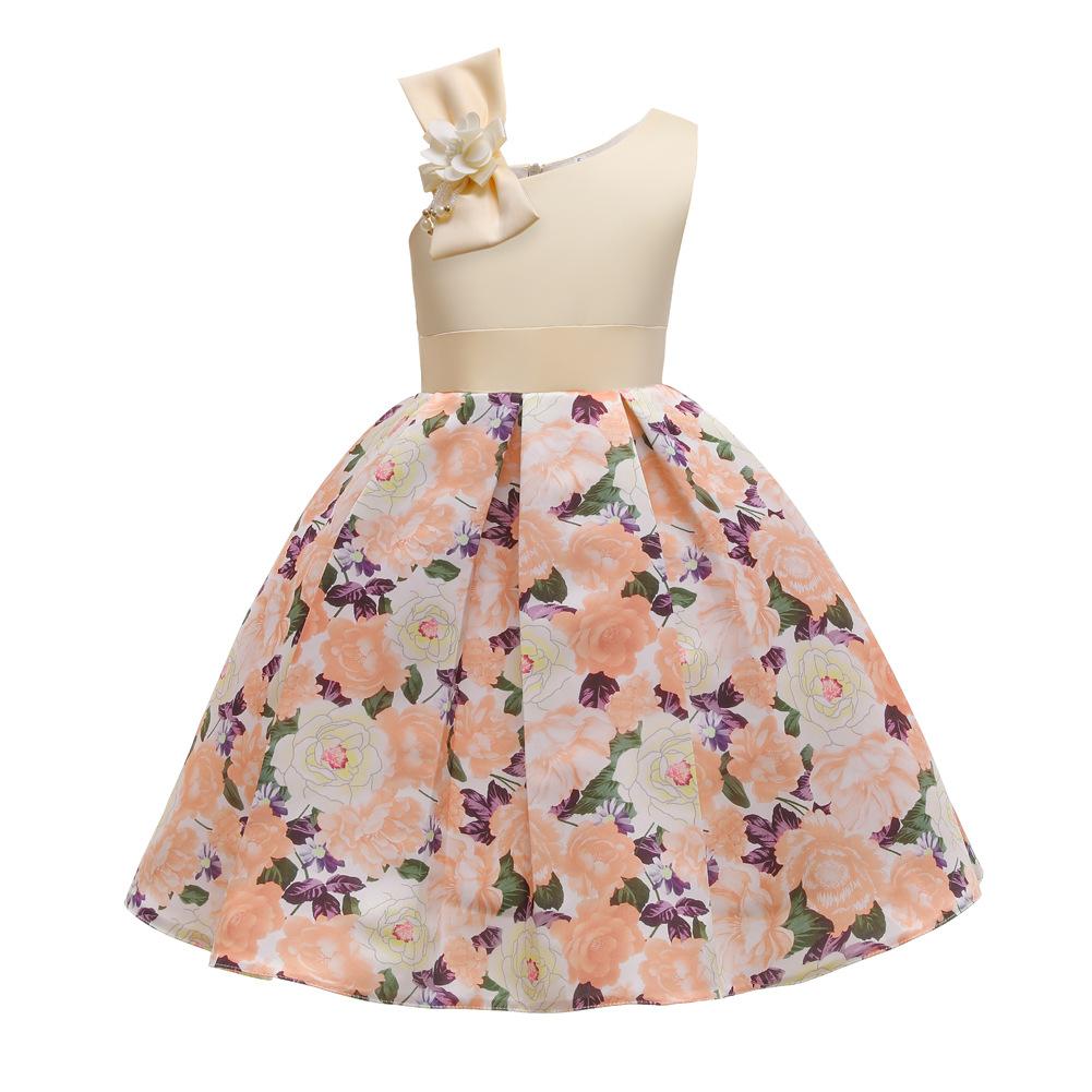 Vestido de Niña Transfronterizo Ropa de Actuación Vestido Chaleco Estampado para Niñas Vestido de Princesa con Lazo Plisado para Niños K2