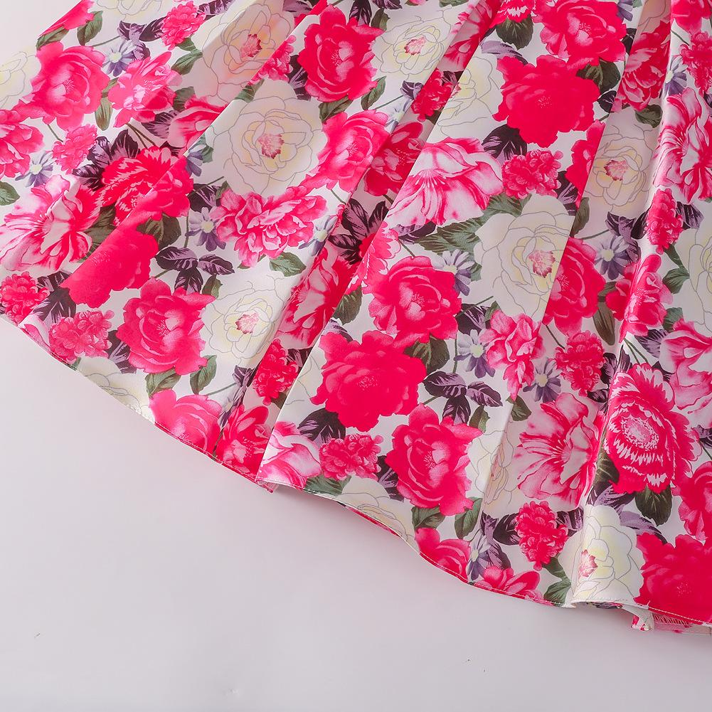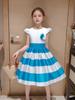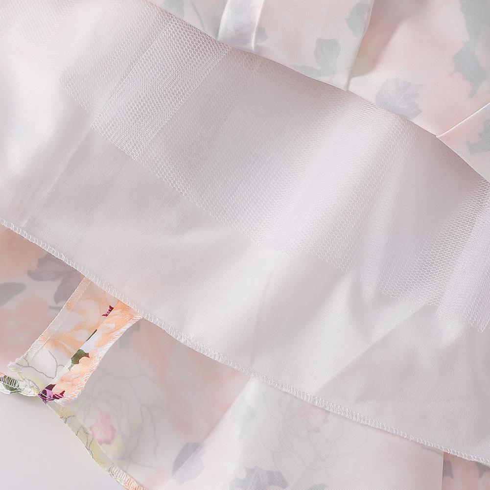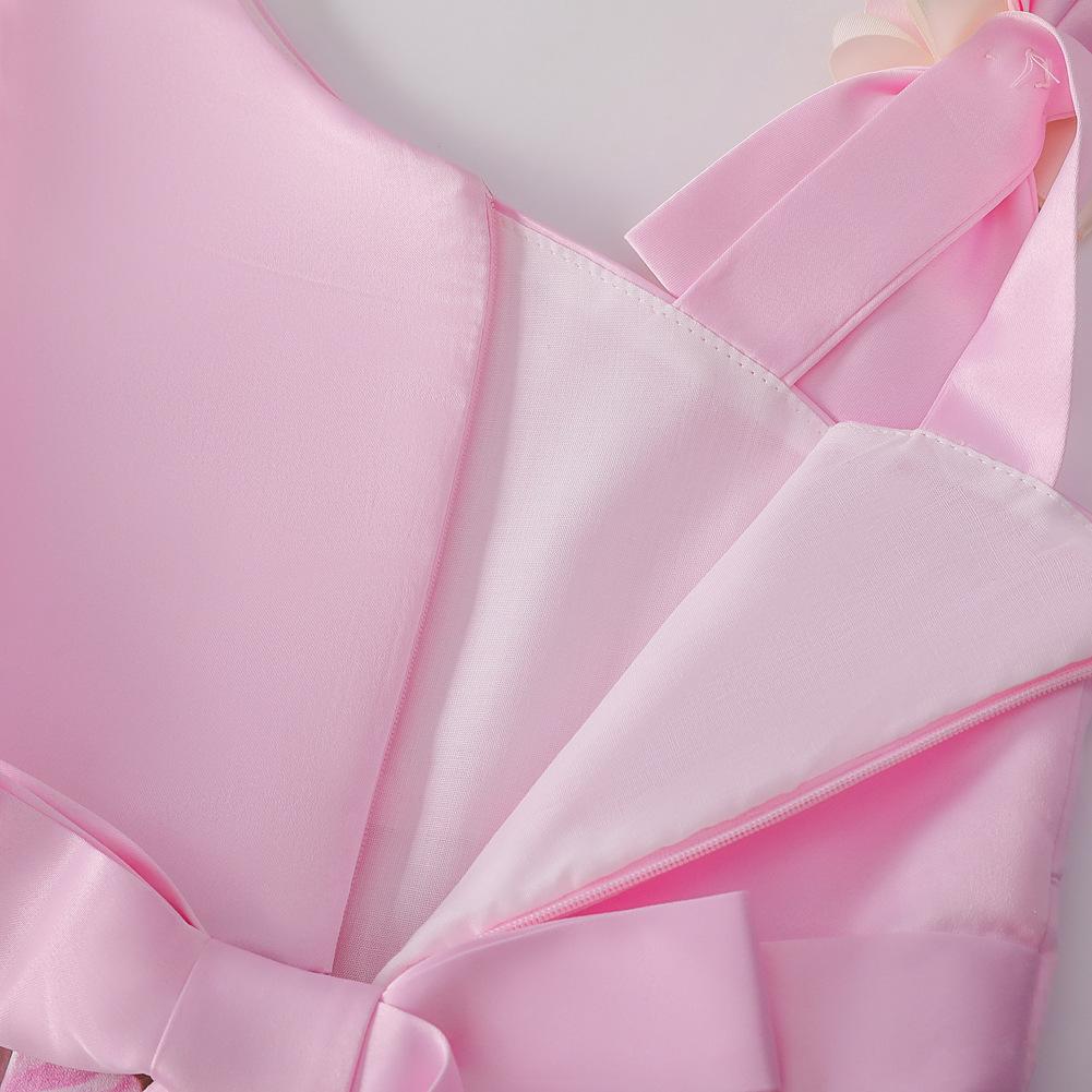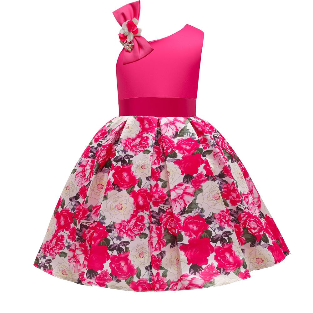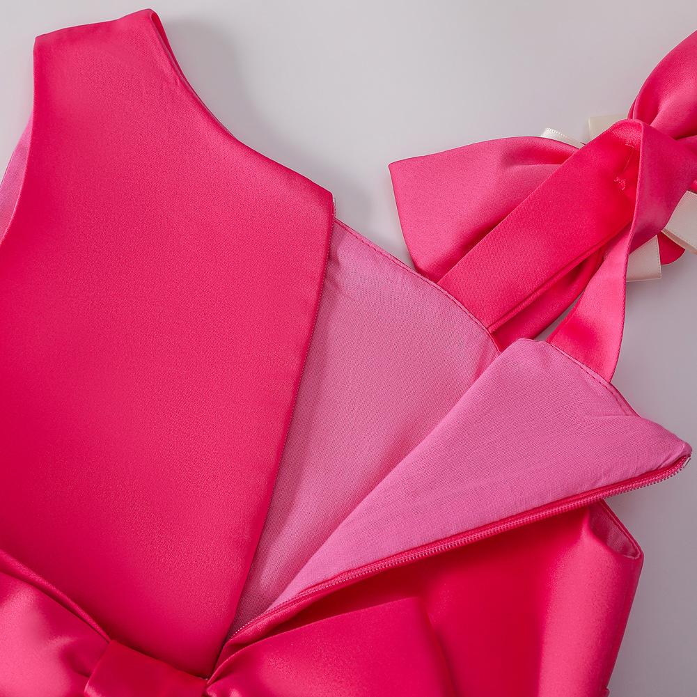 Vestido de Niña Transfronterizo Ropa de Actuación Vestido Chaleco Estampado para Niñas Vestido de Princesa con Lazo Plisado para Niños K2