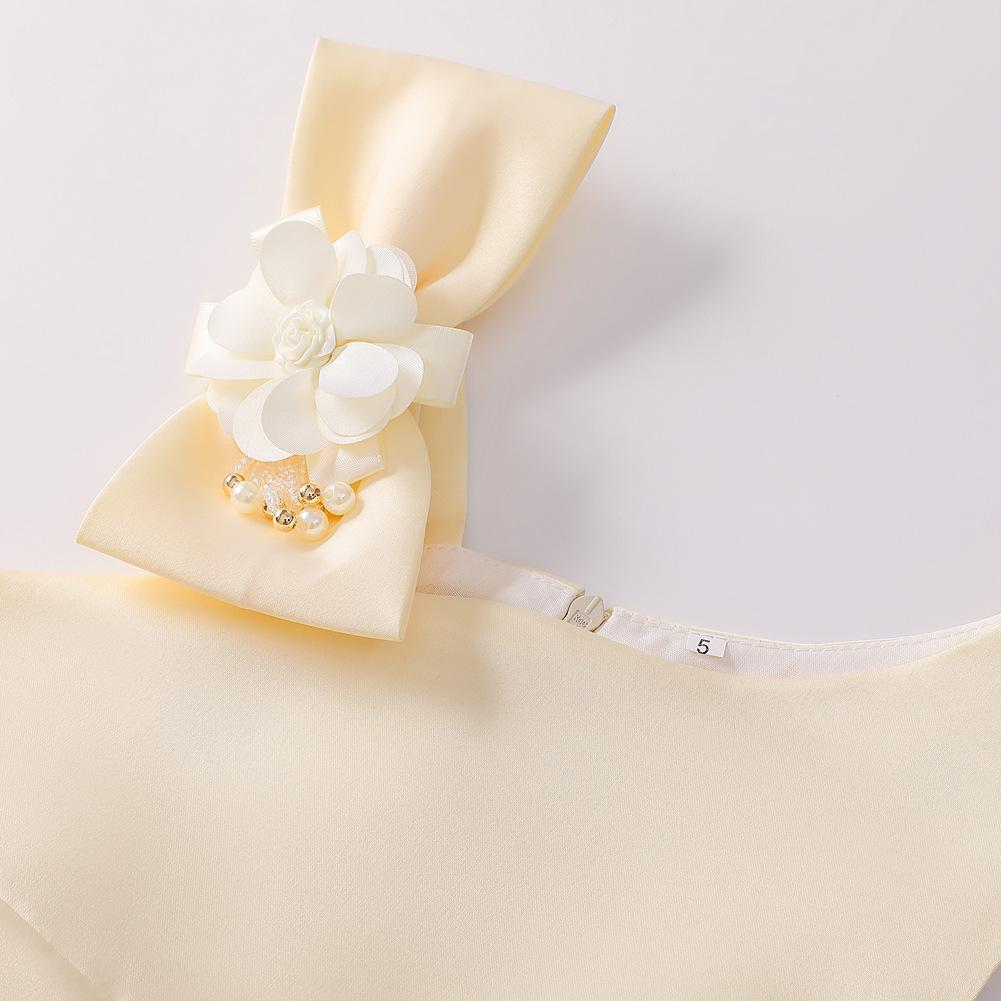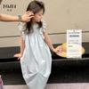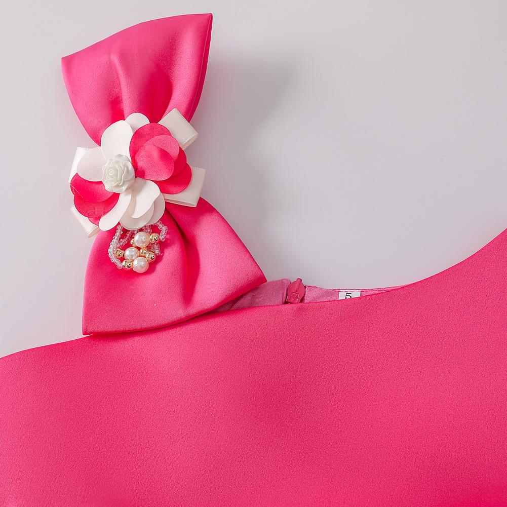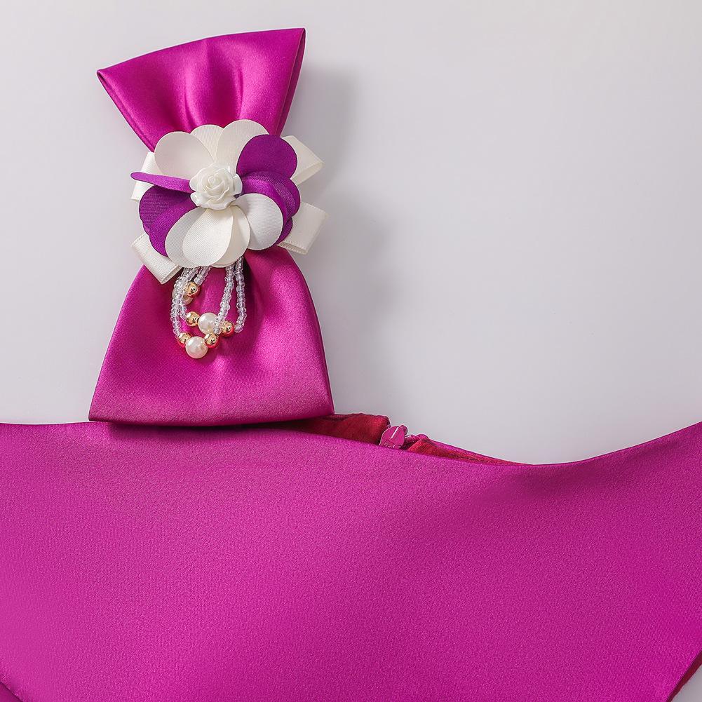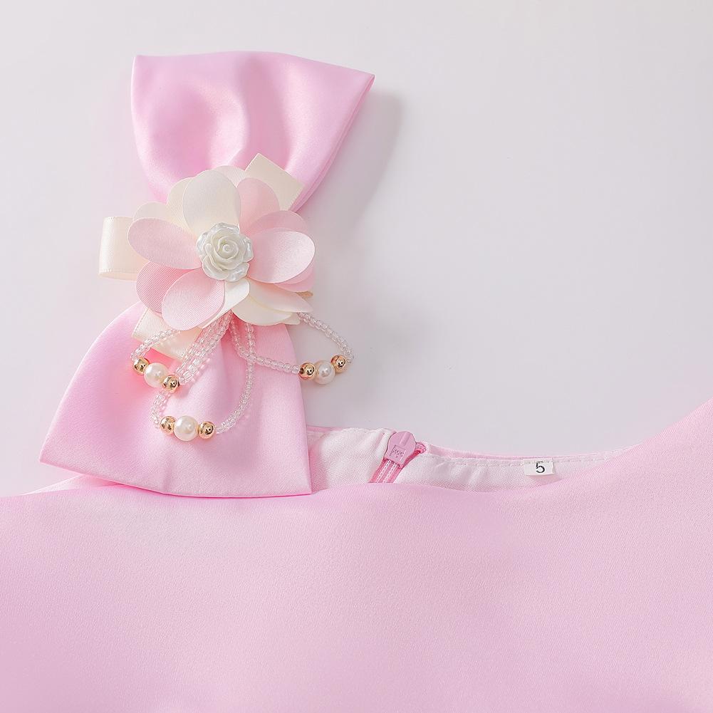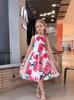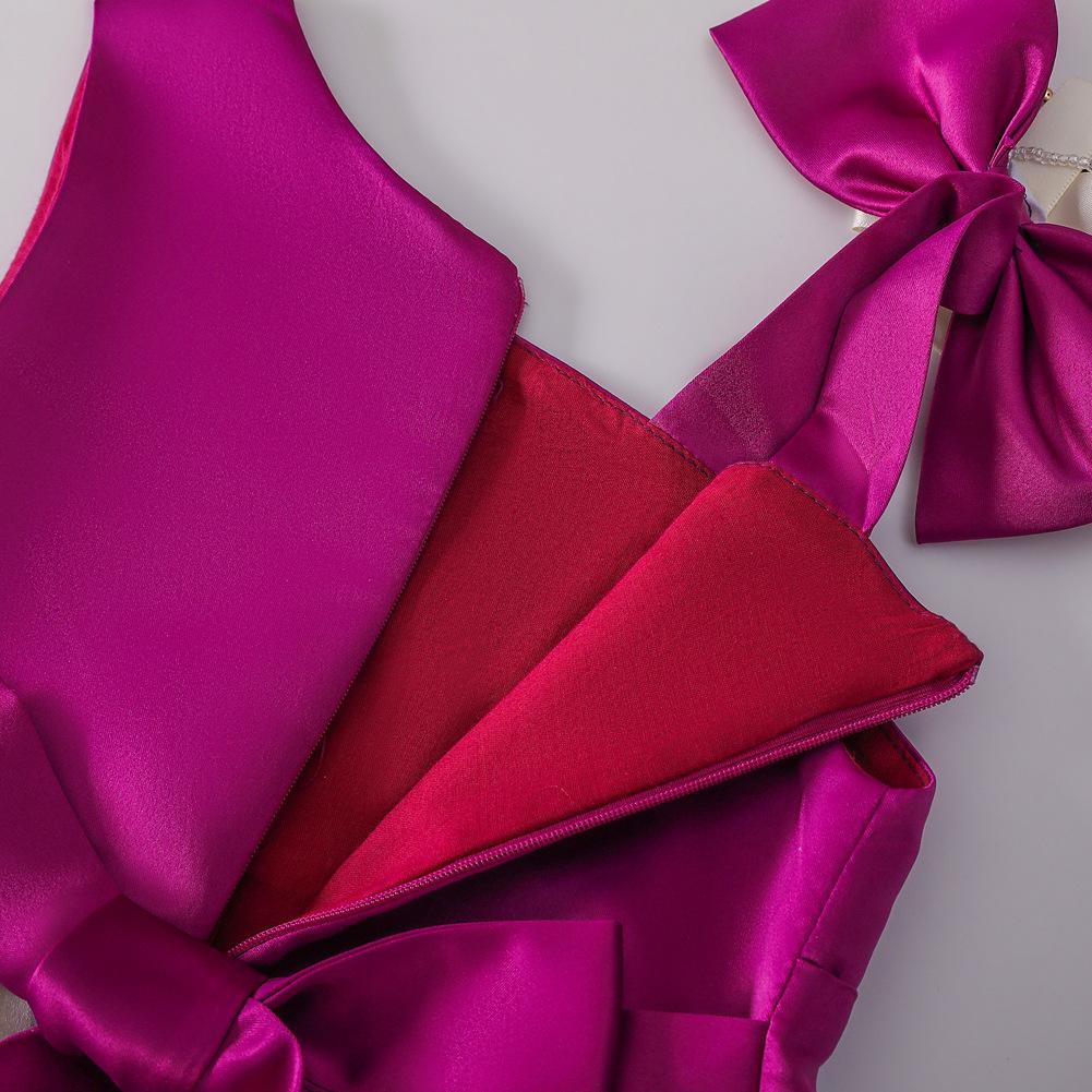 Vestido de Niña Transfronterizo Ropa de Actuación Vestido Chaleco Estampado para Niñas Vestido de Princesa con Lazo Plisado para Niños K2