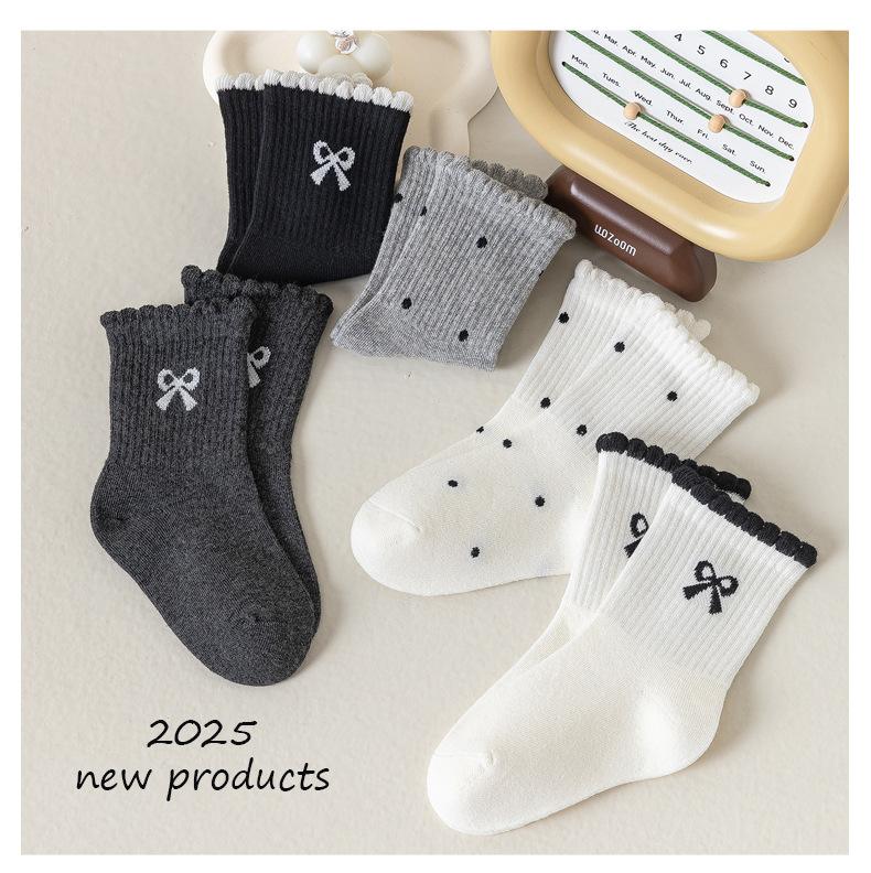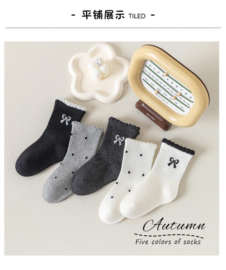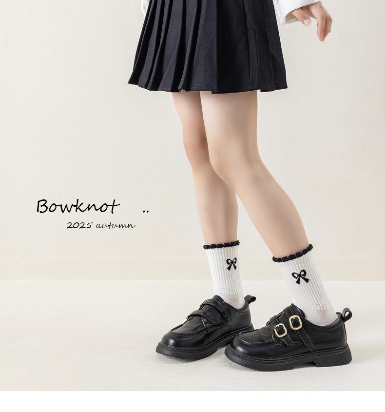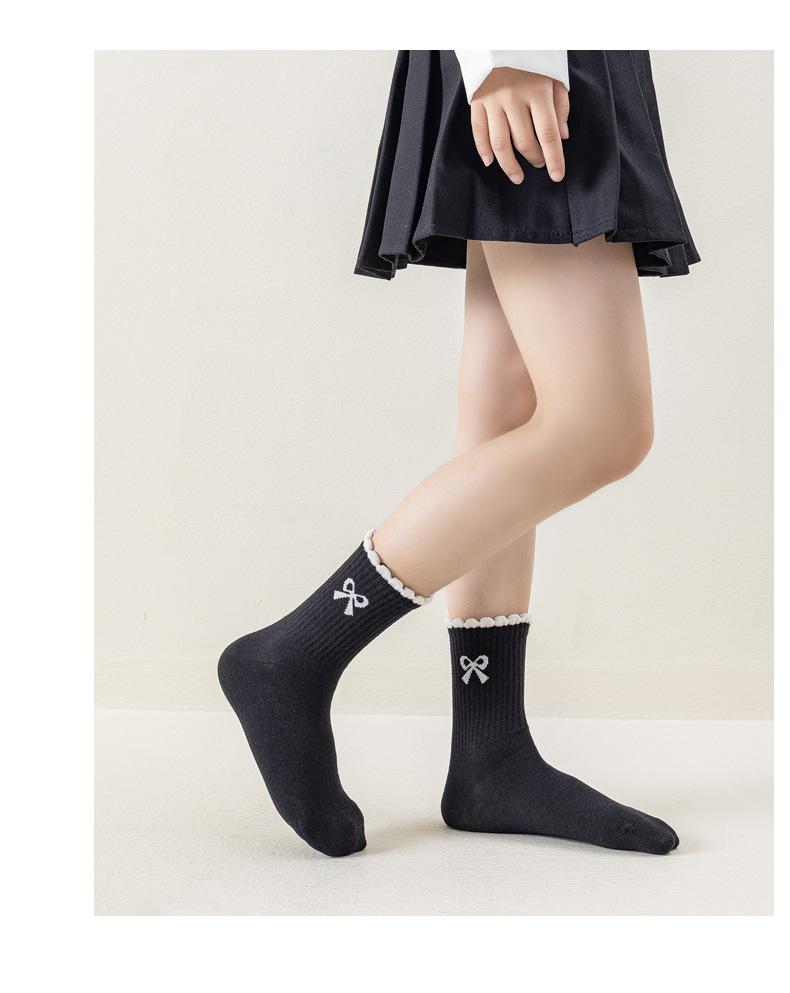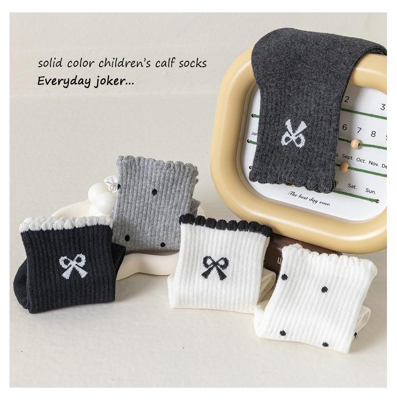 Calcetines de Invierno Otoño Primavera para Niños Calcetines de Algodón de Media Caña Clase A para Niñas Calcetines para Niños Zhuji 6-12 Años Estudiante de Dibujos Animados Lazo