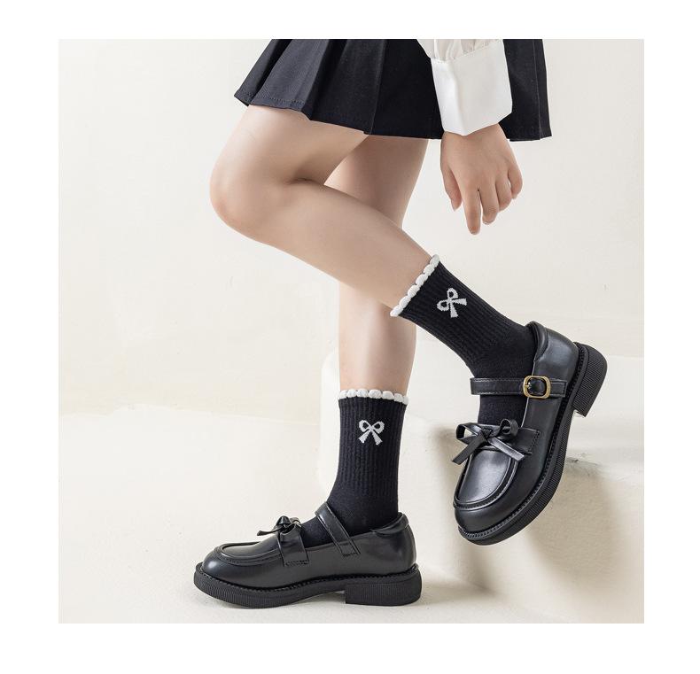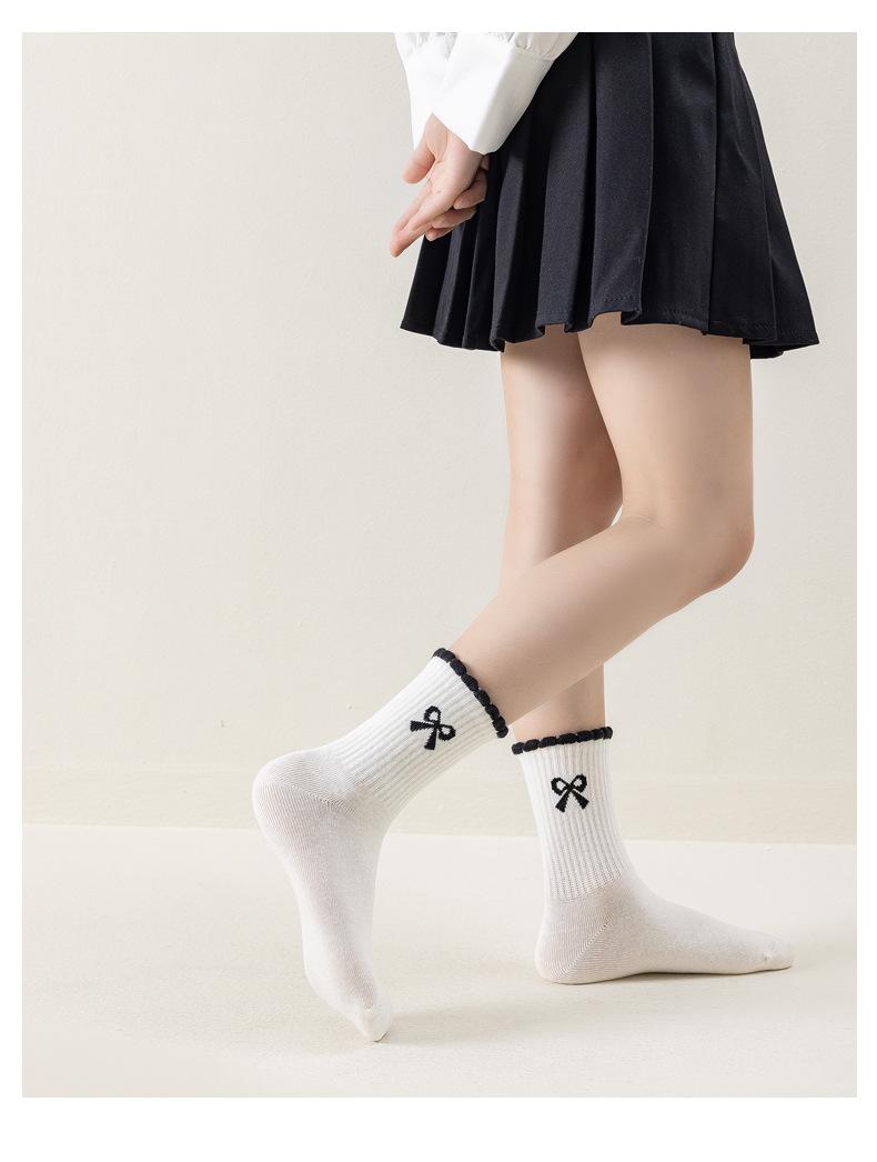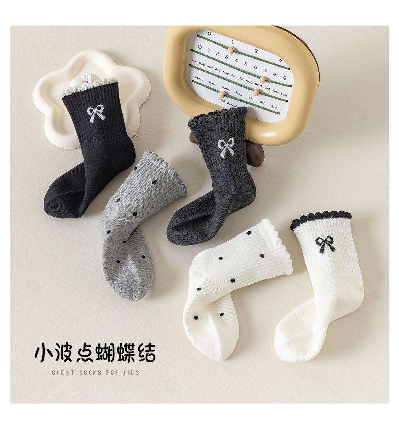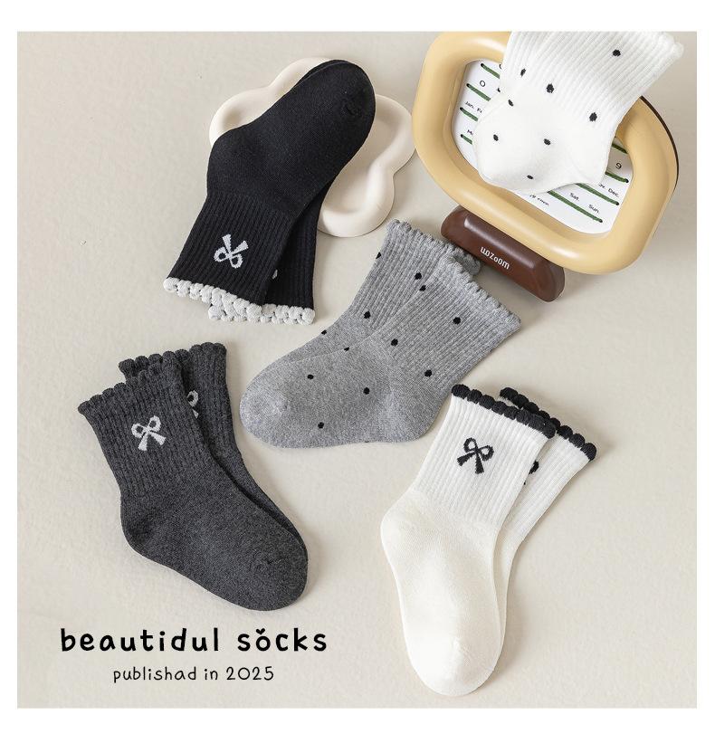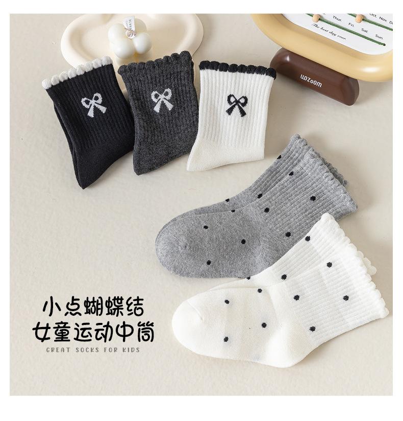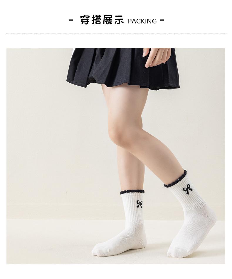 Calcetines de Invierno Otoño Primavera para Niños Calcetines de Algodón de Media Caña Clase A para Niñas Calcetines para Niños Zhuji 6-12 Años Estudiante de Dibujos Animados Lazo