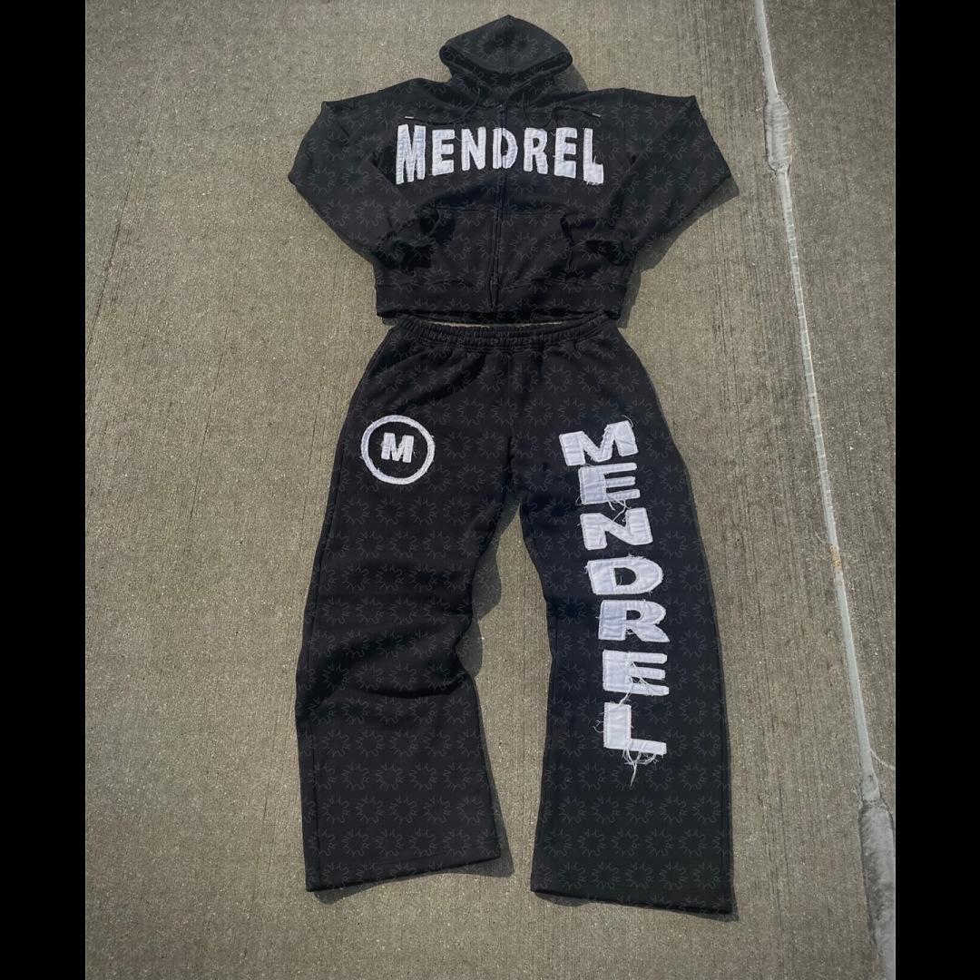Conjunto de sudadera y pantalones deportivos con parche bordado oscuro de personalidad transfronteriza ins europea y americana, sudadera con capucha de manga larga tipo jersey, vintage y2k