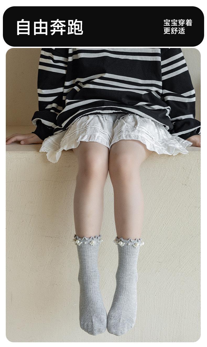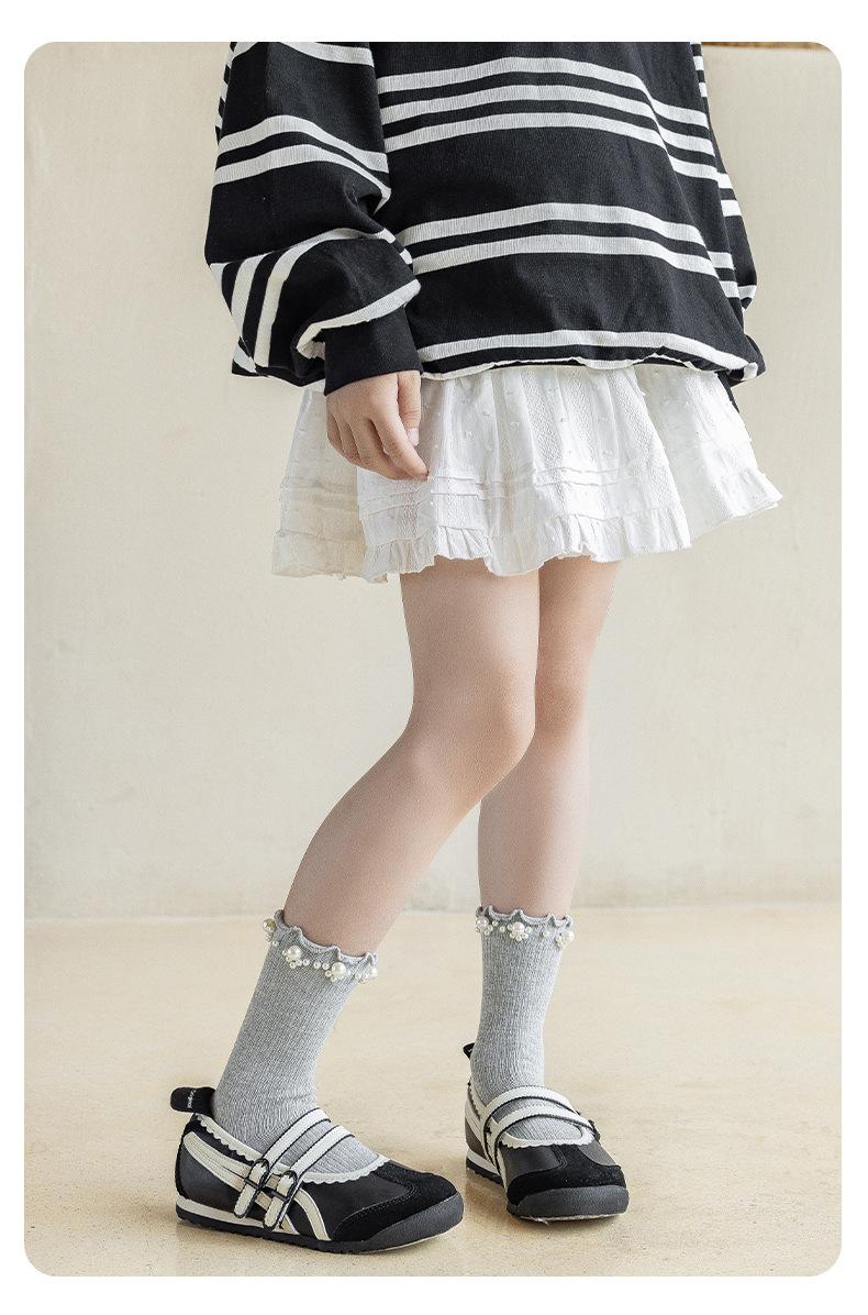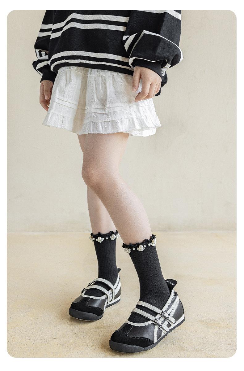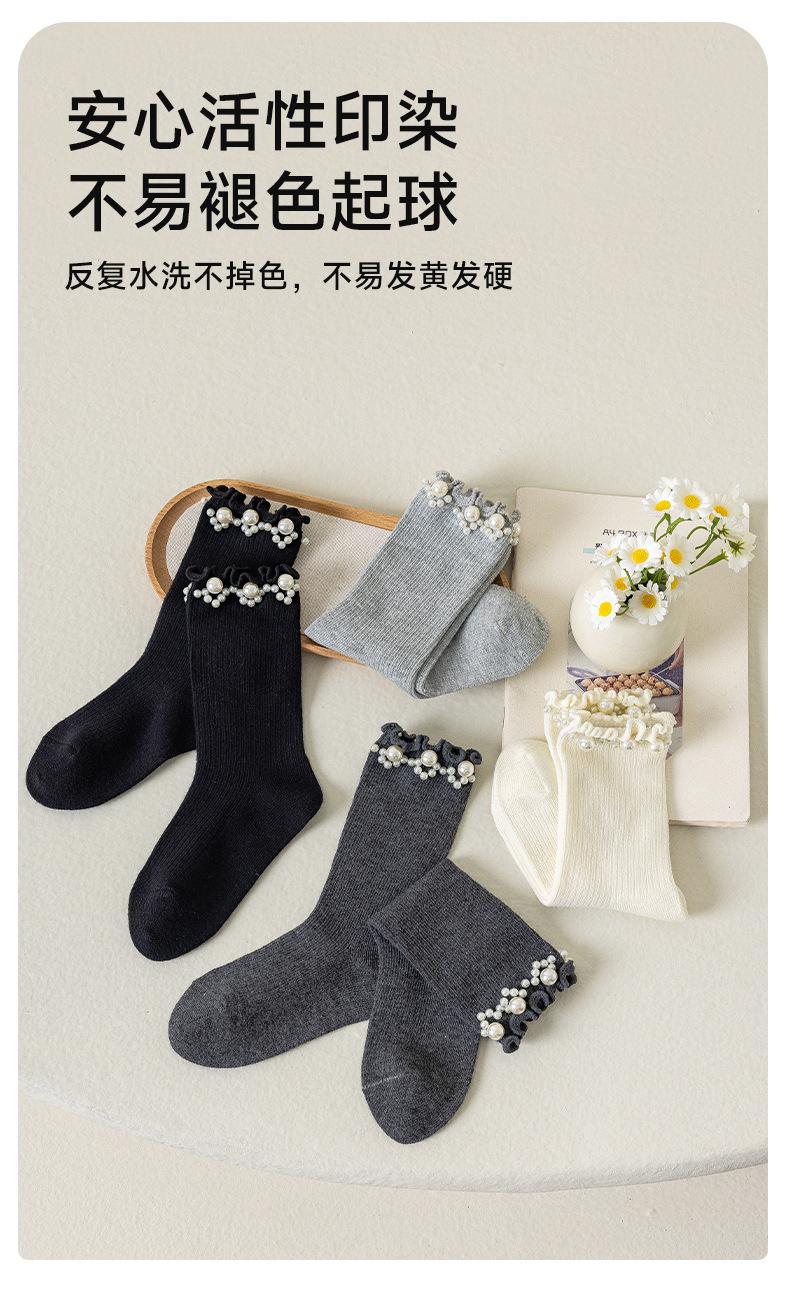 Calcetines para Niños Otoño Invierno Estilo Coreano Media Caña Calcetines de Princesa con Volantes de Perlas Calcetines de Color Sólido para Niñas Calcetines Versátiles para Estudiantes
