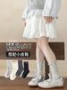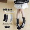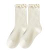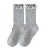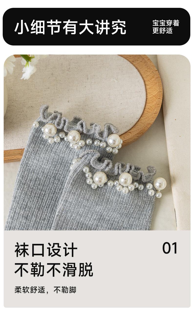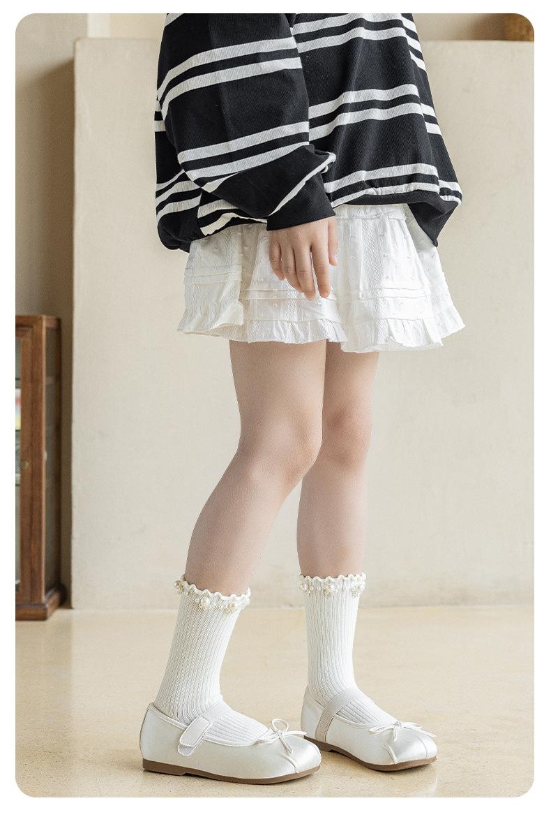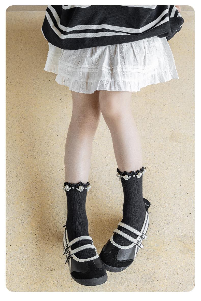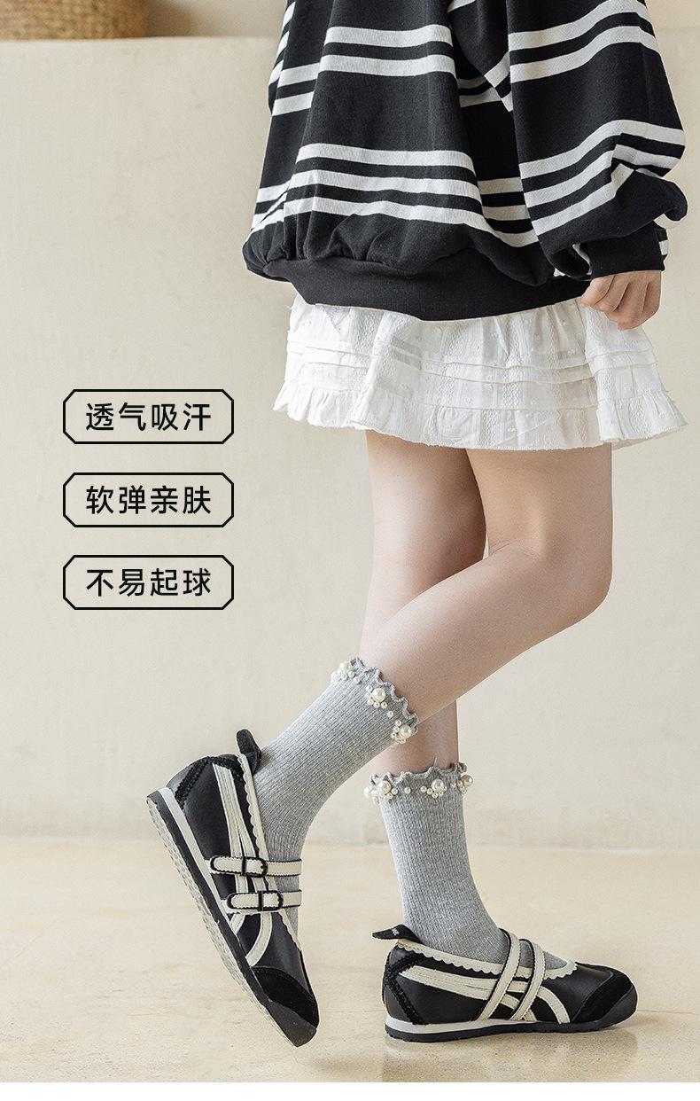 Calcetines para Niños Otoño Invierno Estilo Coreano Media Caña Calcetines de Princesa con Volantes de Perlas Calcetines de Color Sólido para Niñas Calcetines Versátiles para Estudiantes