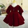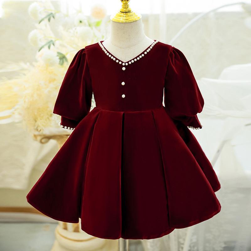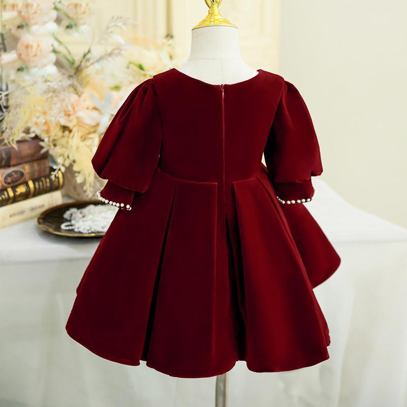 2025 Nuevo Bebé Un Año Vestido de Banquete Moda Rojo Niña de las Flores Boda Niña Cumpleaños Vestido de Princesa Niña