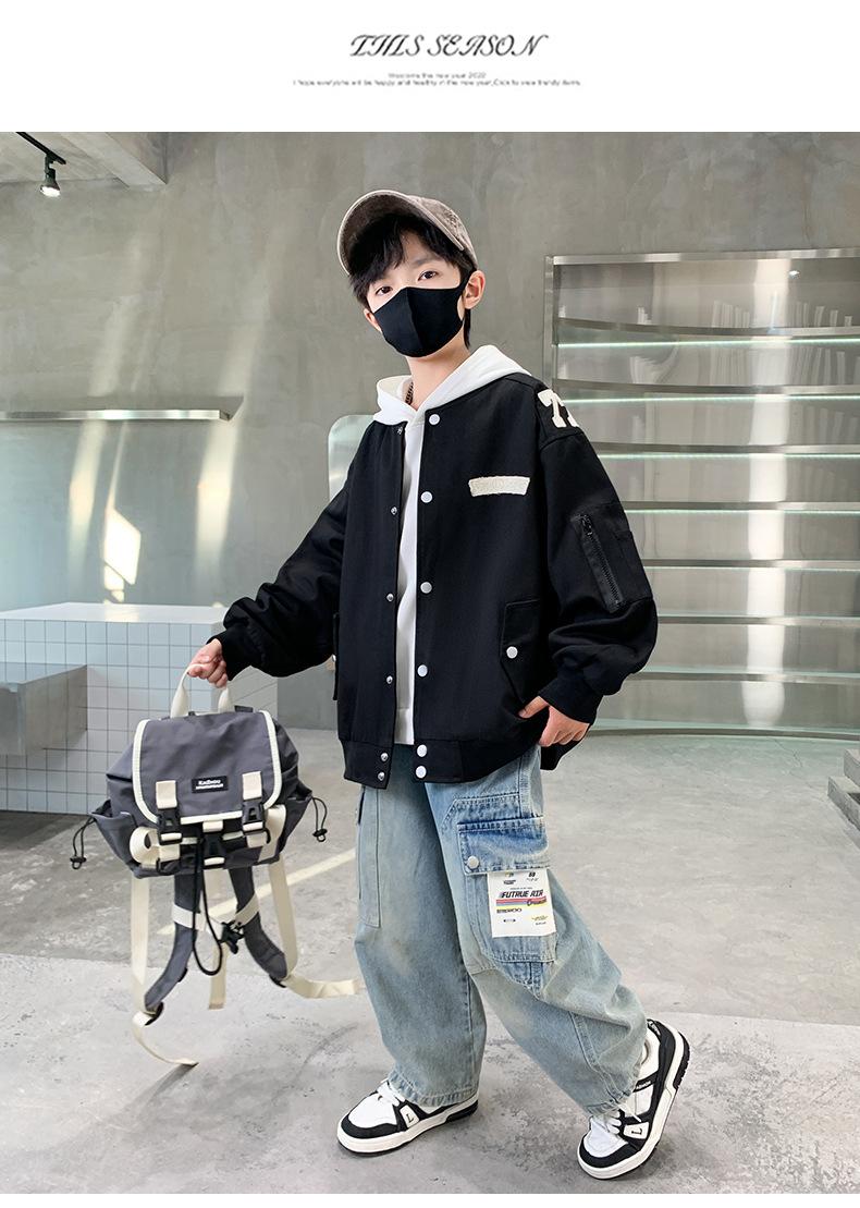 Ropa Exterior de Primavera y Otoño para Niños 2025 Nuevo Estilo Niño Mediano y Grande Estilo Otoño Top Casual con Capucha Pulóver Uniforme de Béisbol