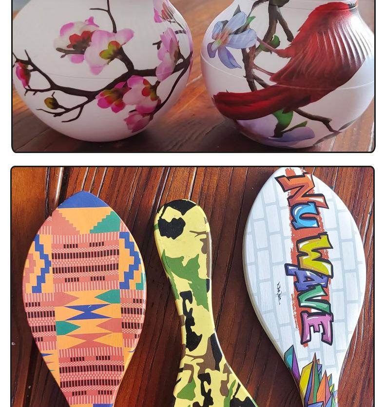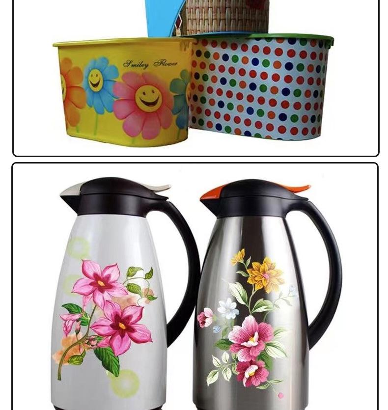 2、Calcomanías al agua (calcomanías de alta y baja temperatura): Diseño de arte AI - prueba de color - fabricación de planchas - impresión de papel para calcomanías al agua - aplicación de calcomanías - rociado de aceite
