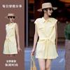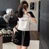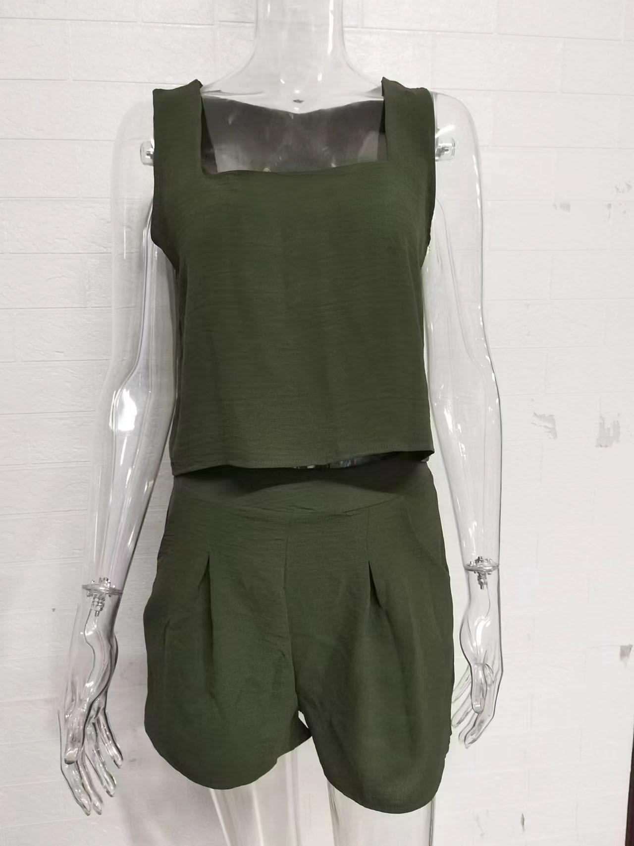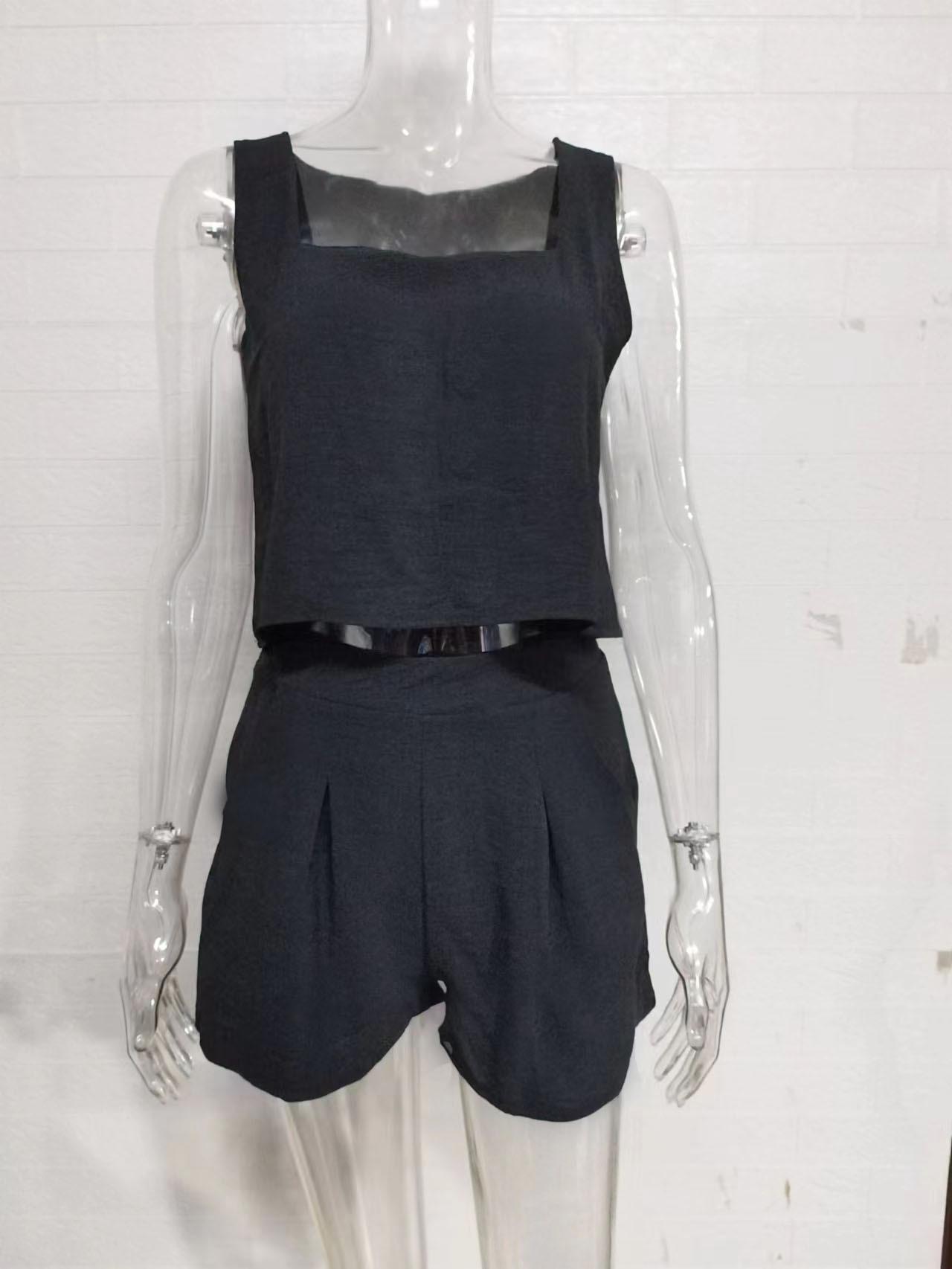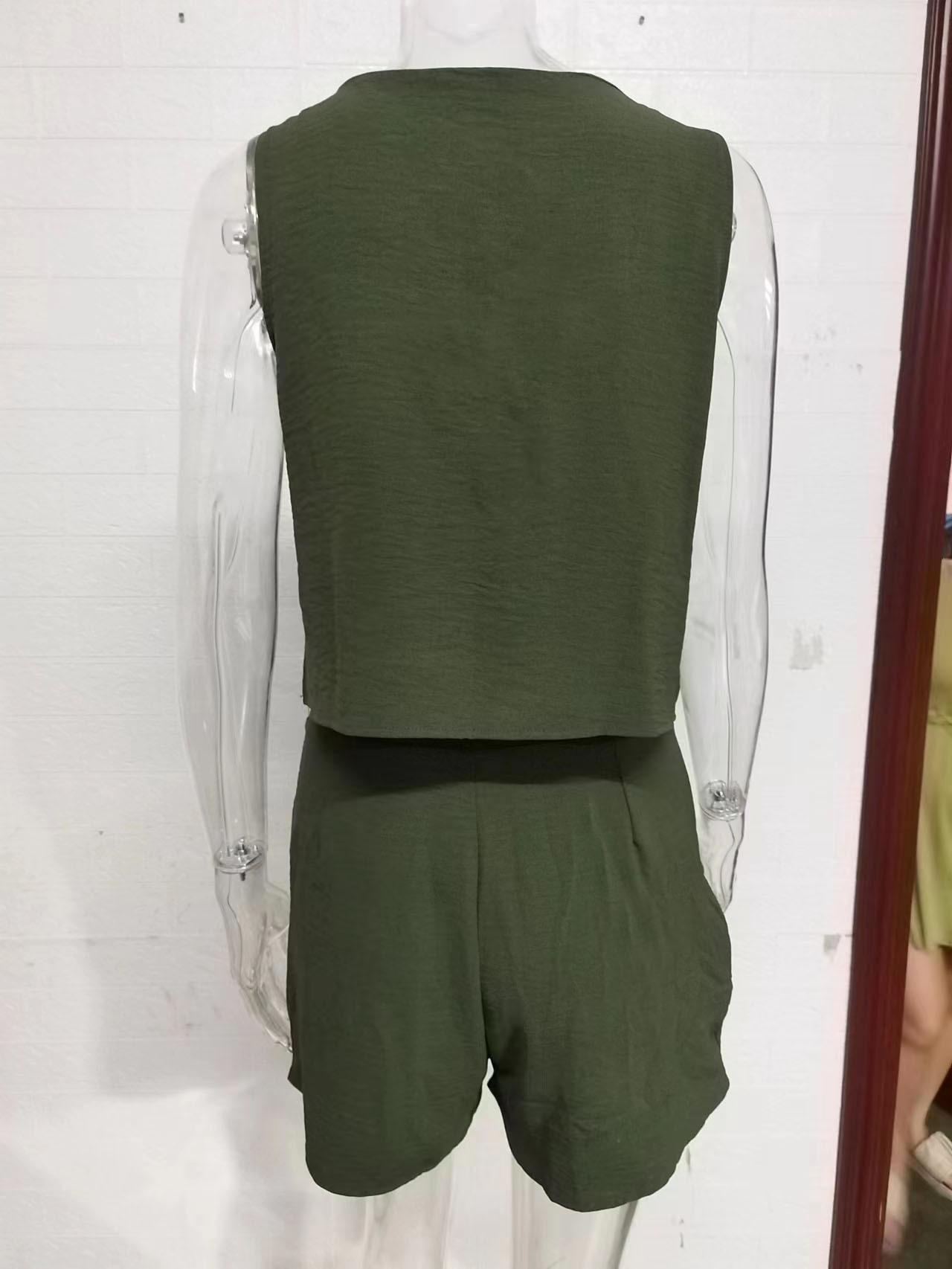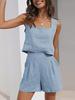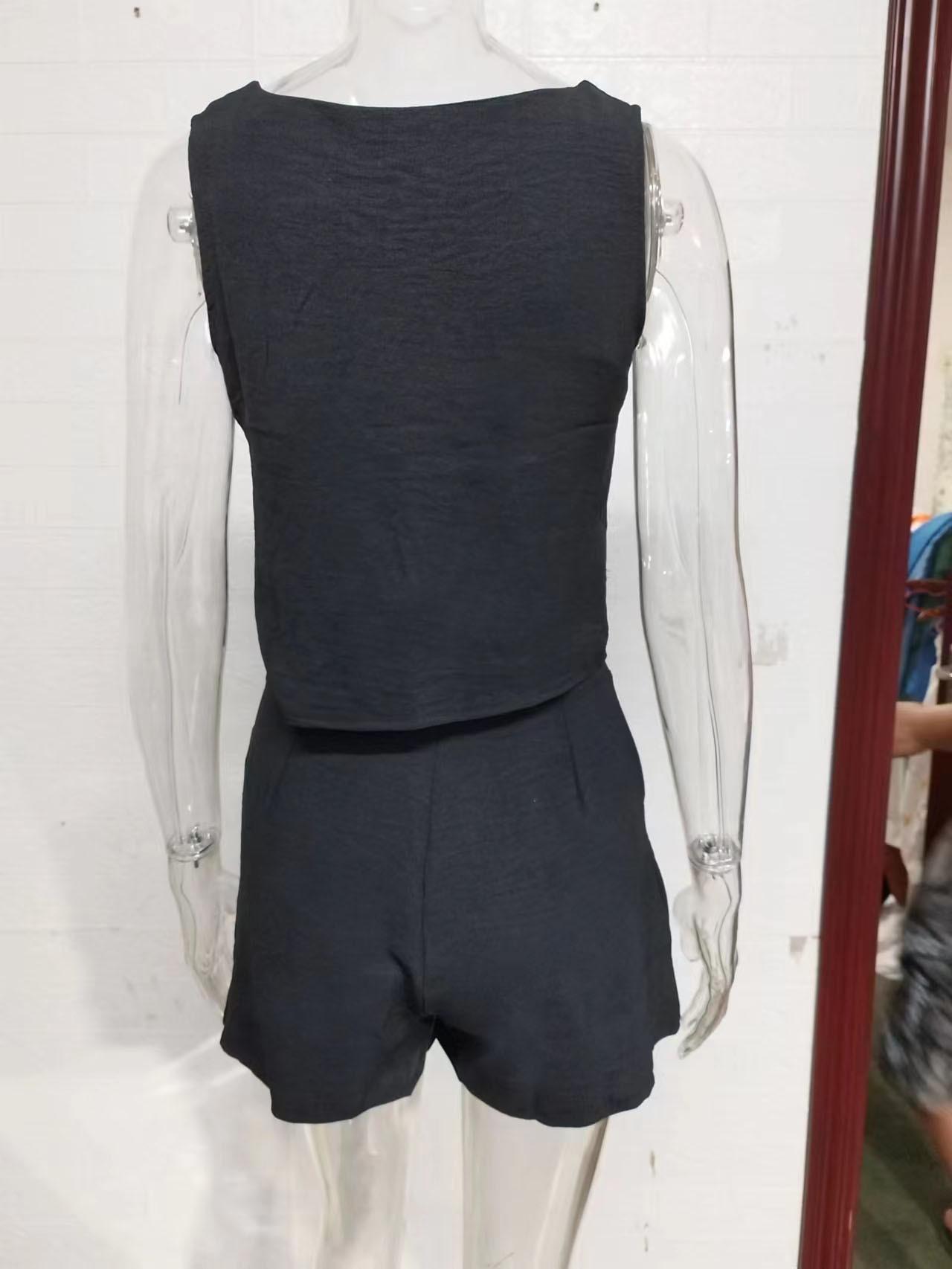 Conjunto de dos piezas casual a la moda 2024 Shorts de lino Crop top Conjunto para vacaciones de verano Elegante Versátil