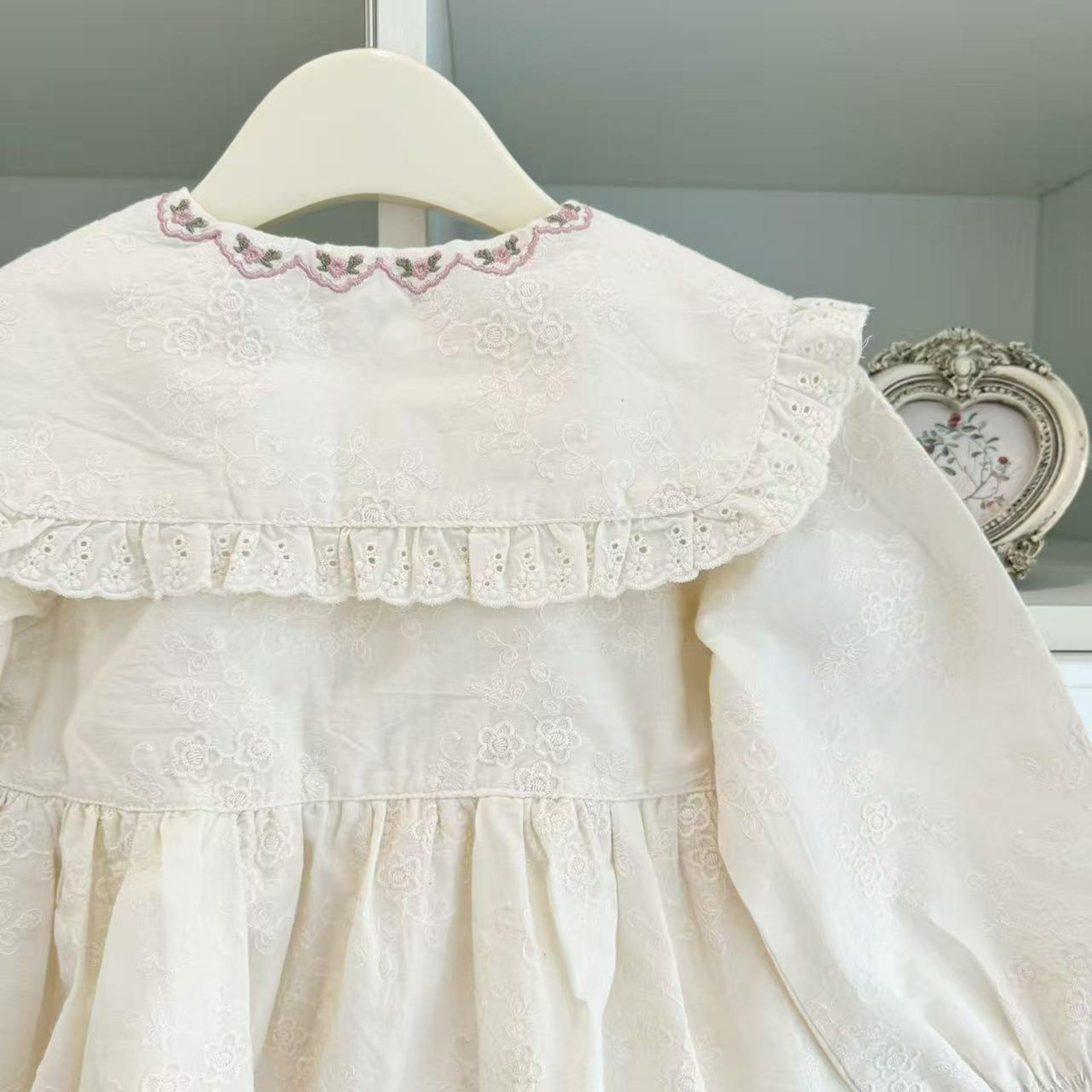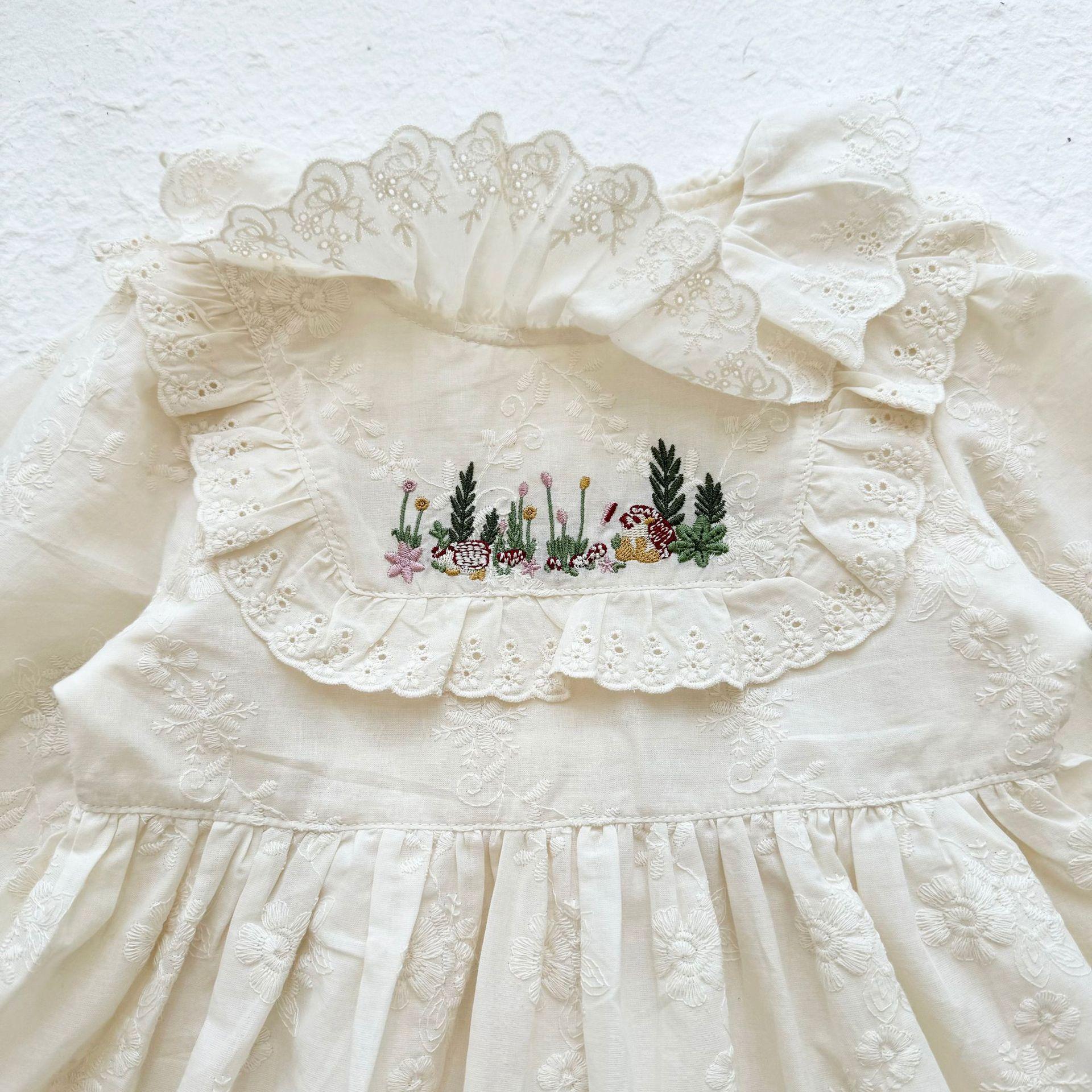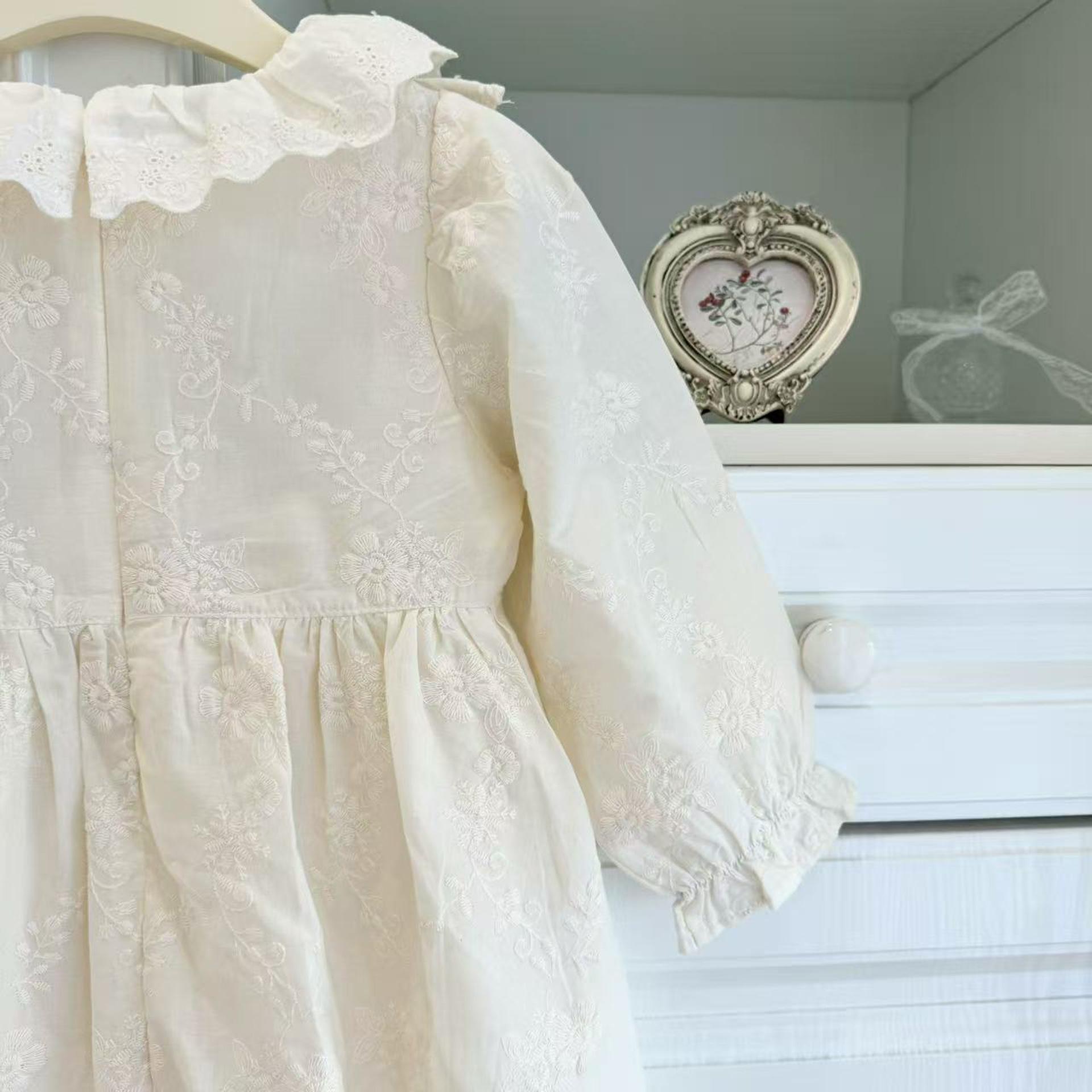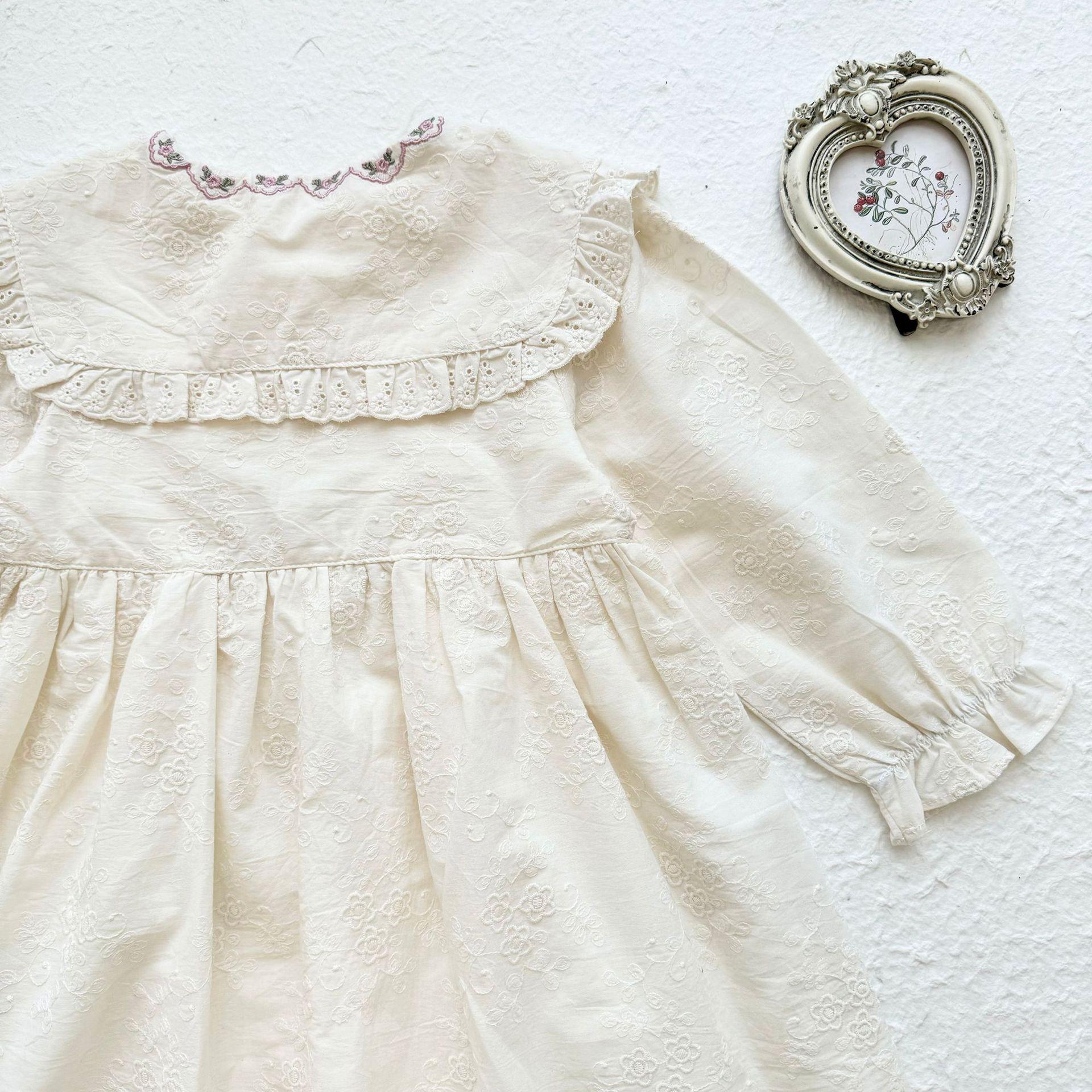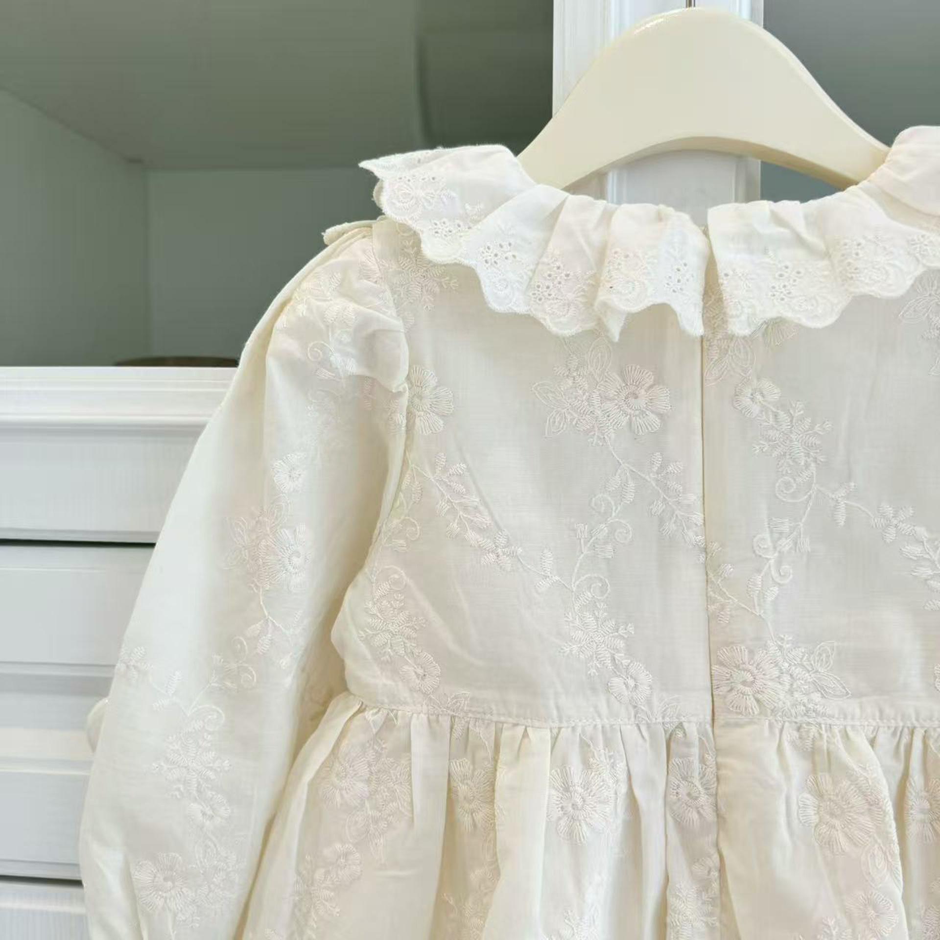 Vestido de Otoño para Niñas 2025 Nuevo Vestido Dulce de Encaje de Manga Larga con Cuello de Volantes Bordado