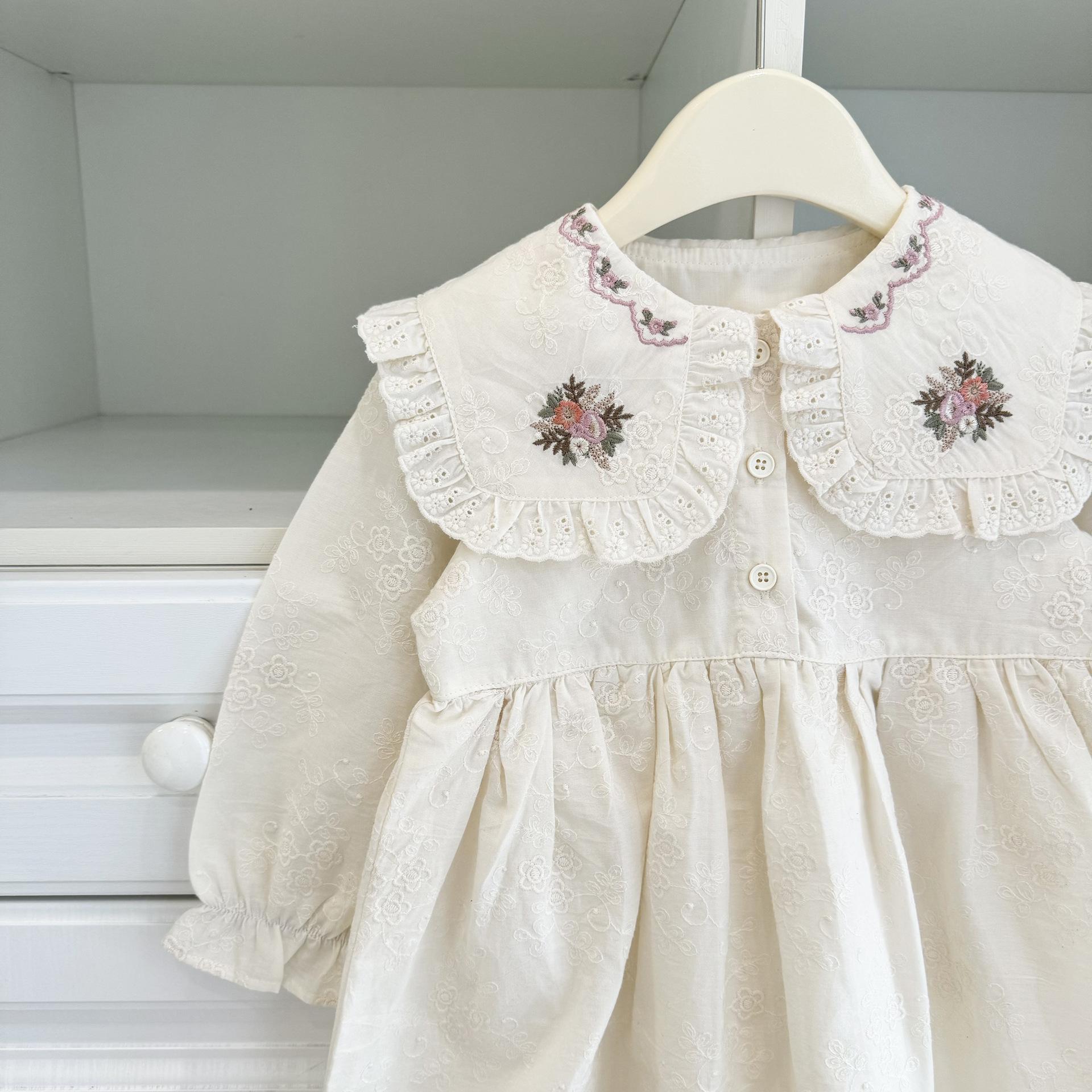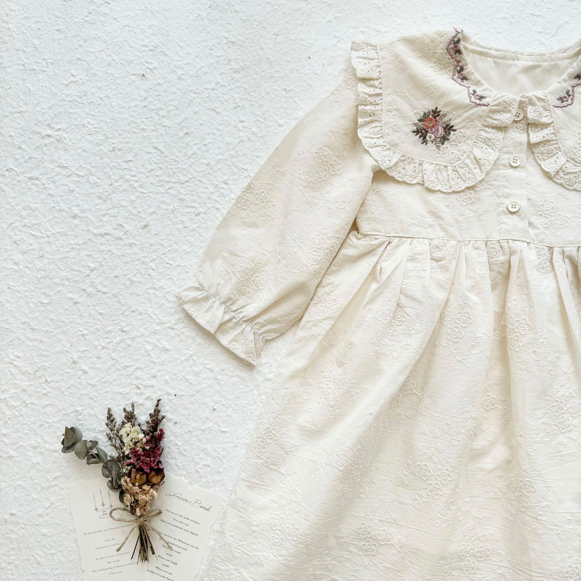 lotus leaf collar embroidered dress, Collared embroidered dress