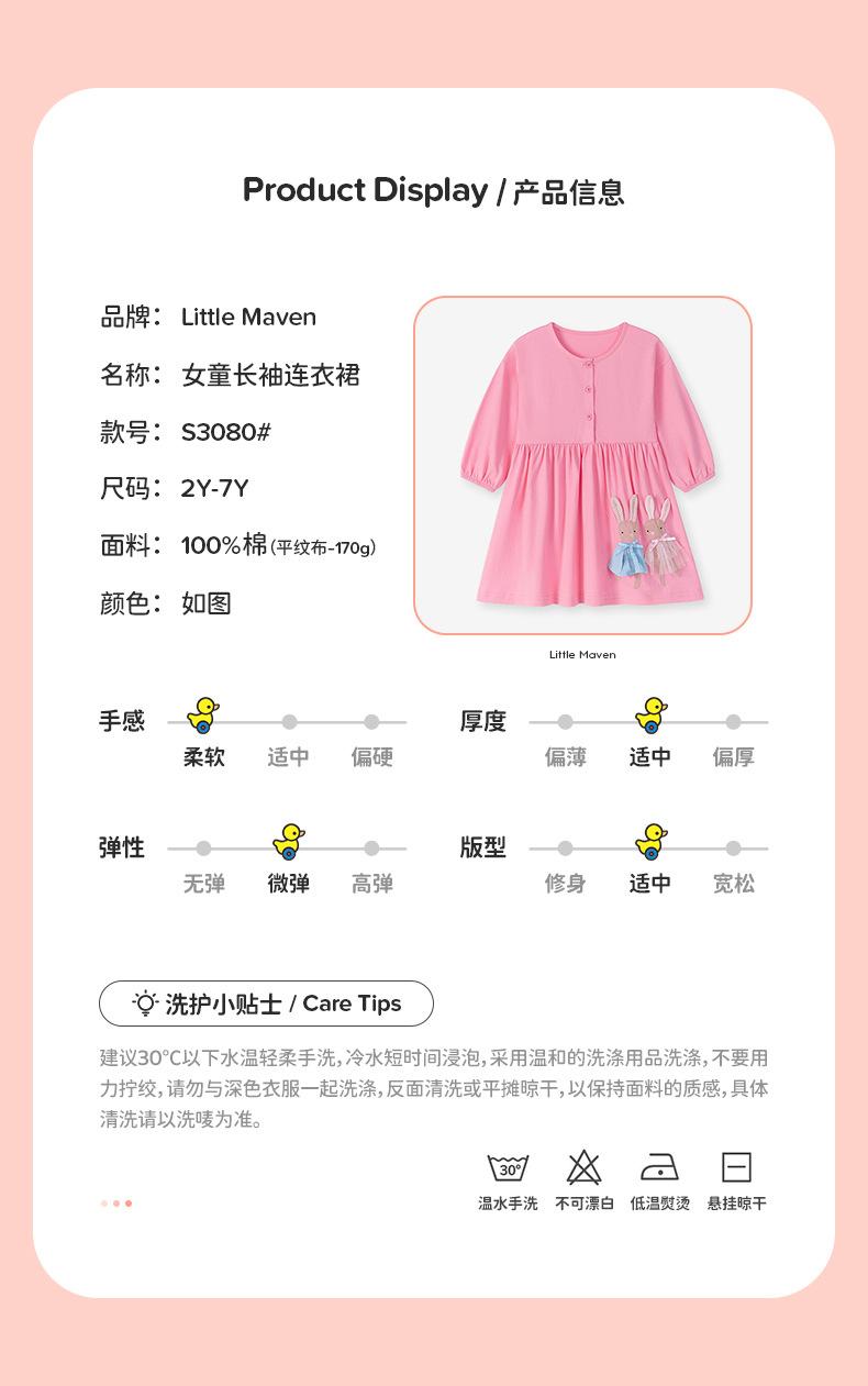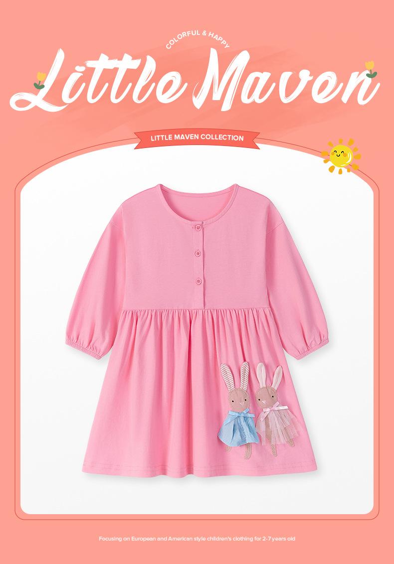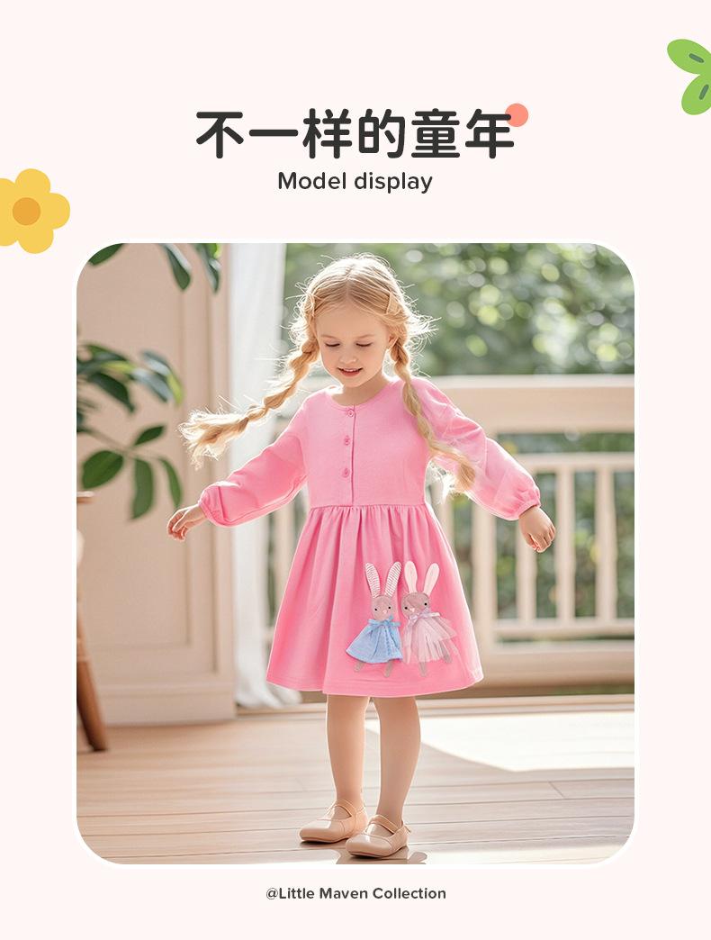 Little maven Comercio Exterior Transfronterizo Vestido de Niña Otoño Vestido de Niña Estilo Europeo y Americano Dibujos Animados Vestido Infantil