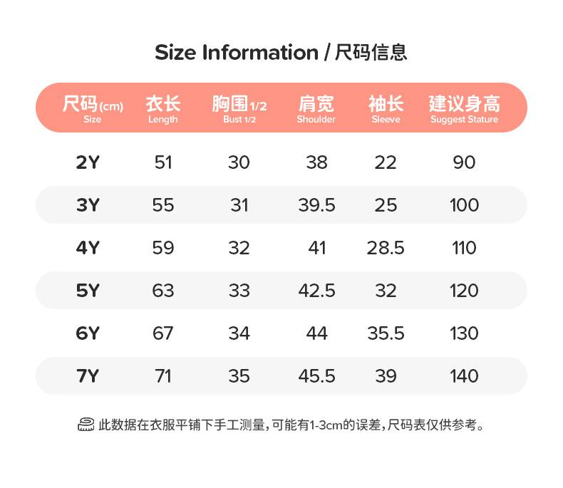 2Y(90cm), 3Y(100cm), 4Y(110cm), 5Y(120cm), 6Y(130cm), 7Y(140cm)