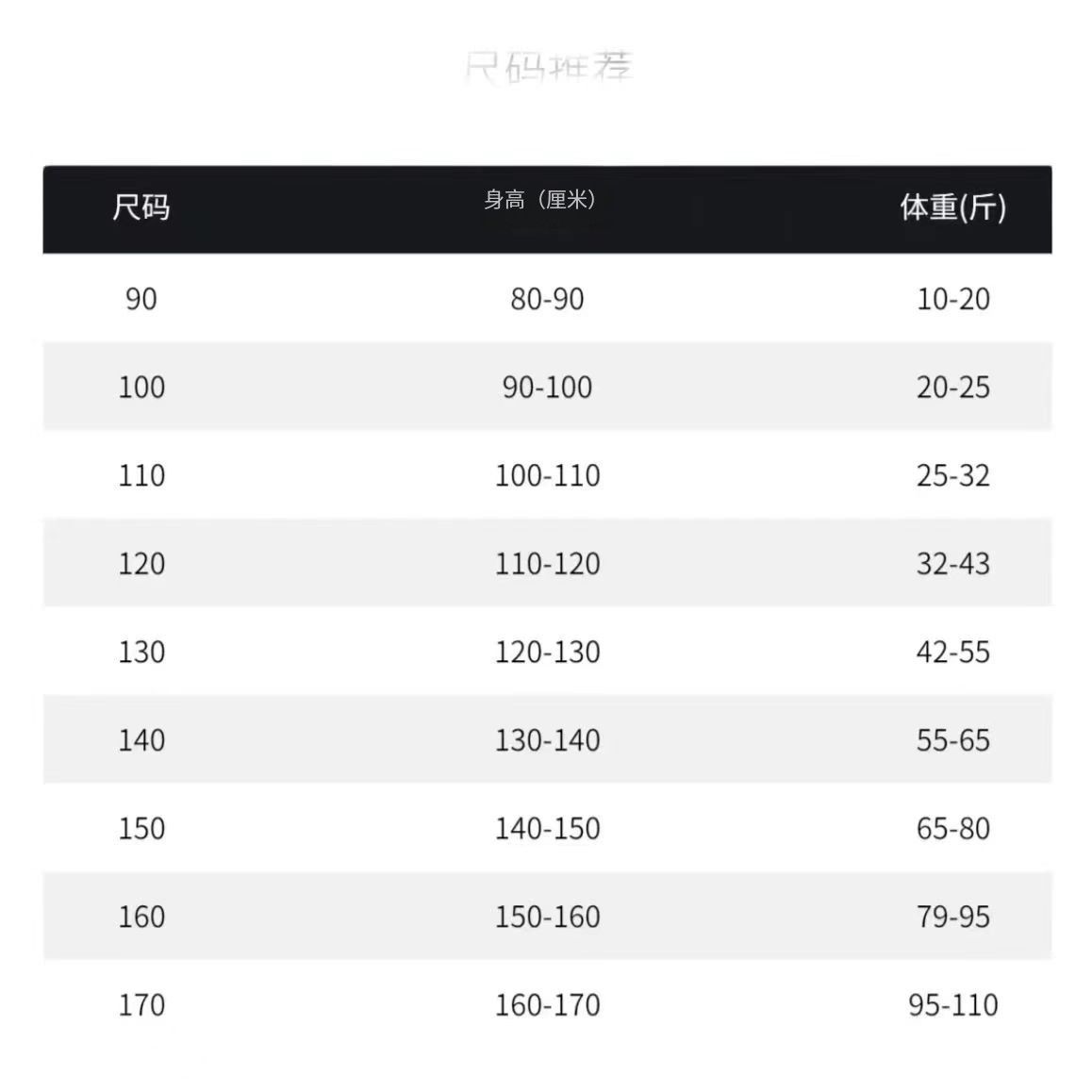 110 cm, 120cm, 130 cm, 140 cm, 150 cm, 160 cm