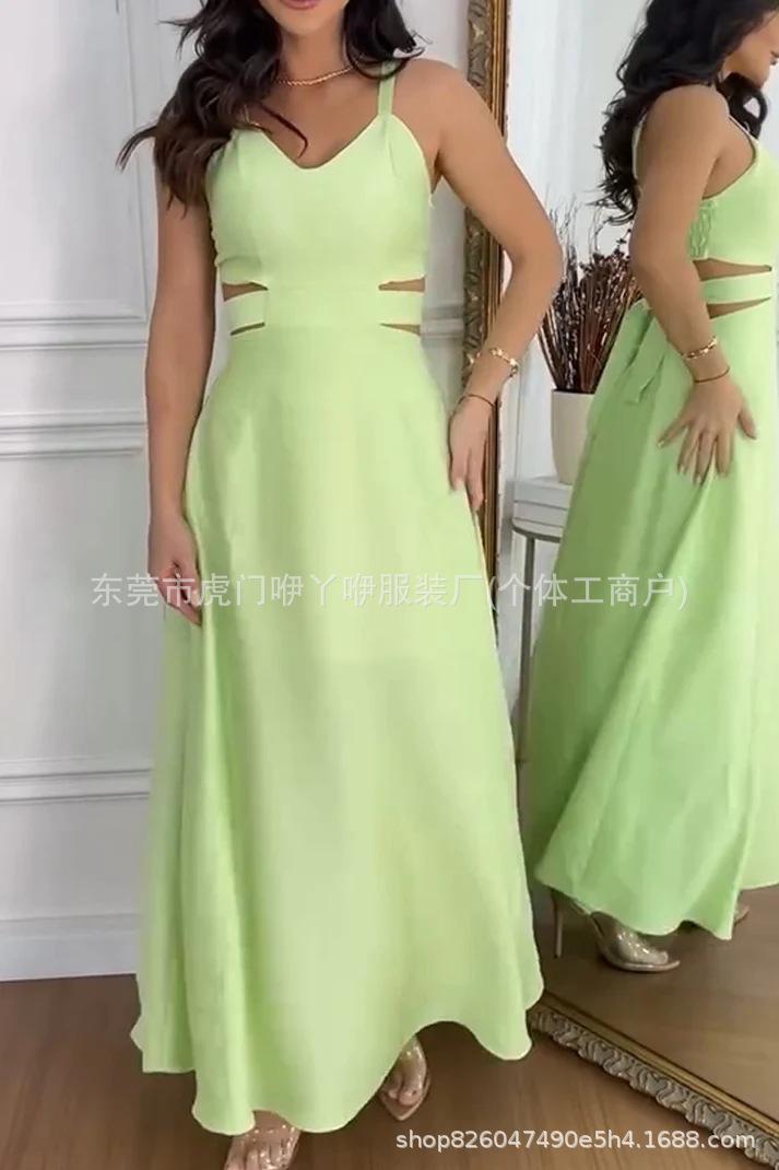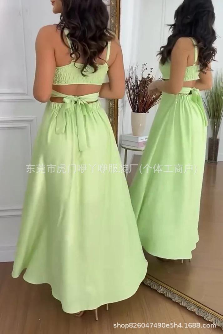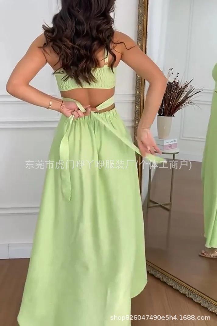 Transfronterizo Europa y América Amazon 2025 Verano Nuevo Vestido Sexy de Tirantes Descubierto con Encaje y Cordones para Mujer