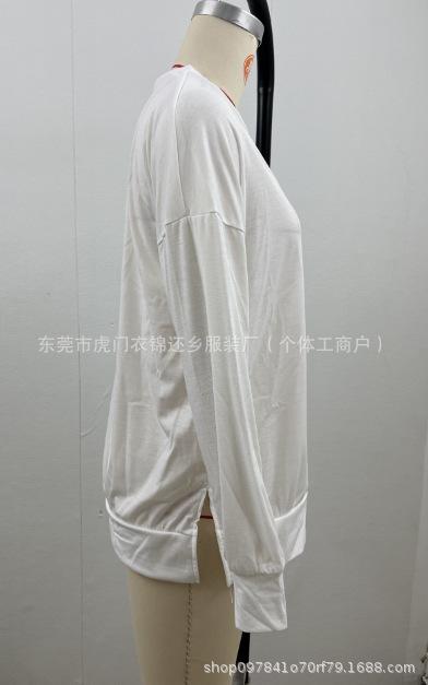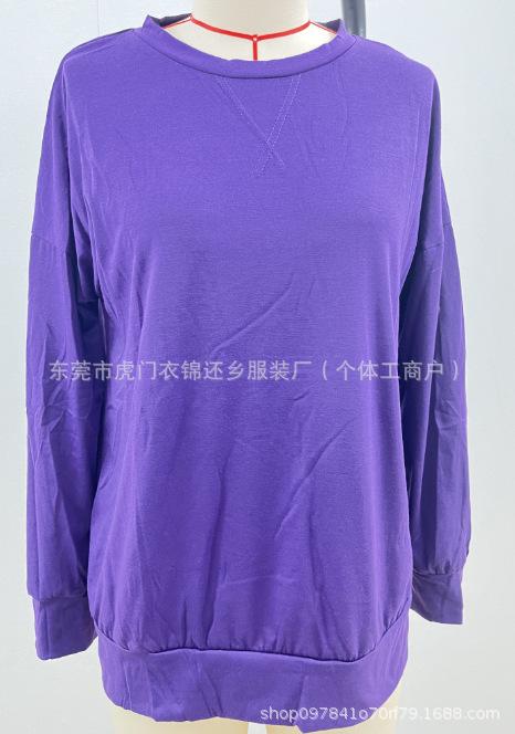 En stock, estación independiente transfronteriza de Amazon, nueva camiseta de manga larga Joker de comercio exterior europeo y americano, chaqueta informal de cuello redondo de color liso