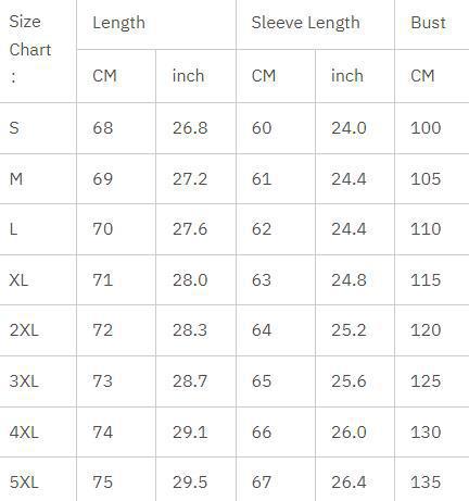 S, M, L, XL, 2XL, 3XL, 4XL, 5XL