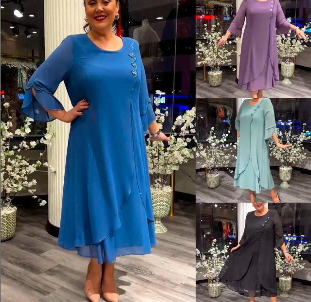Amazon transfronterizo 2025 nueva moda casual talla grande para mujer vestido suelto entallado estilo extranjero