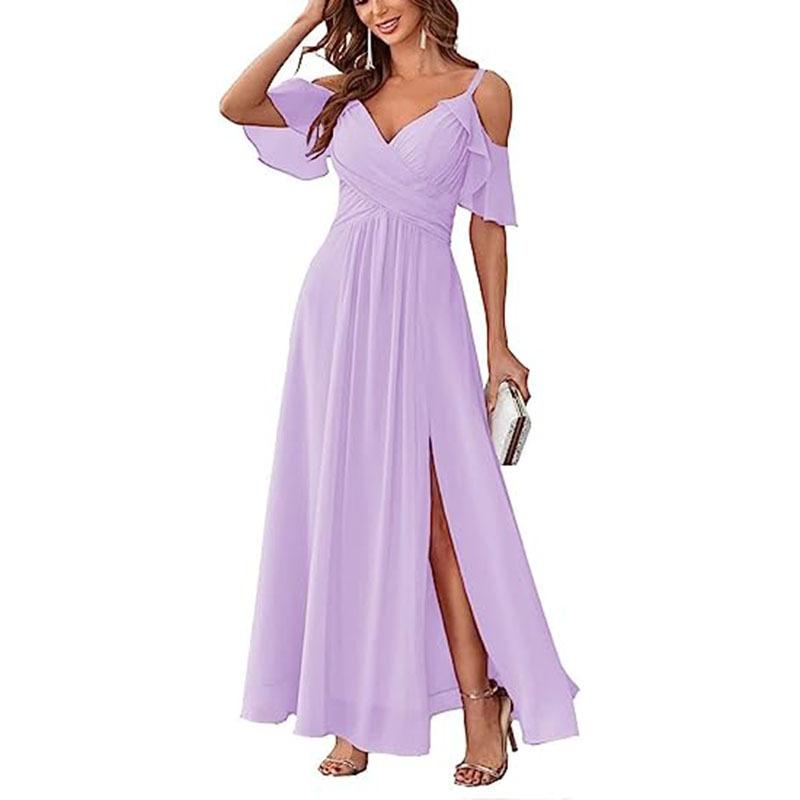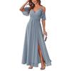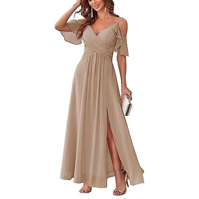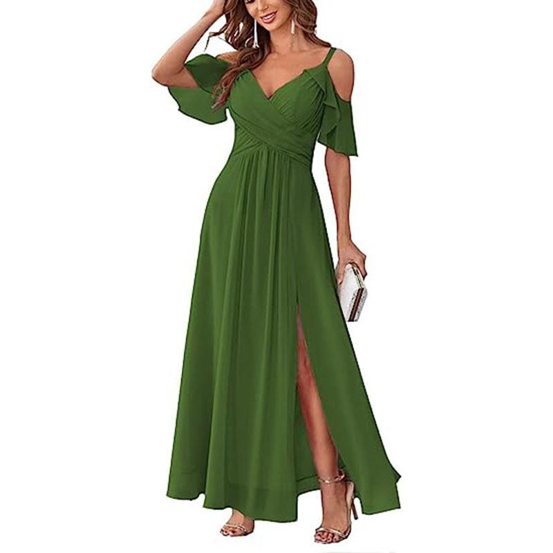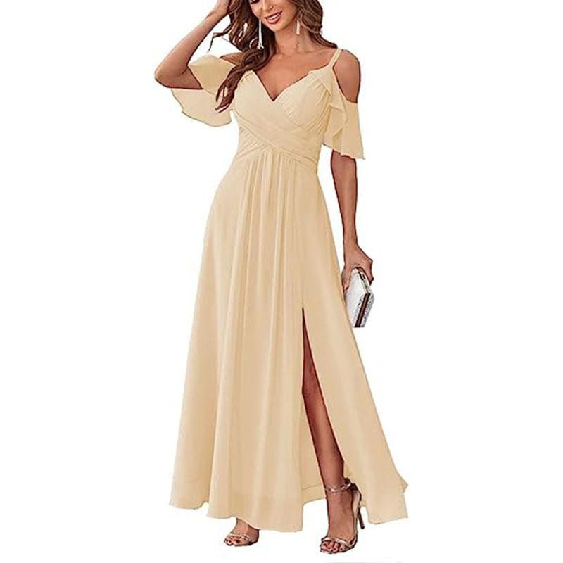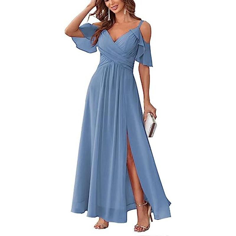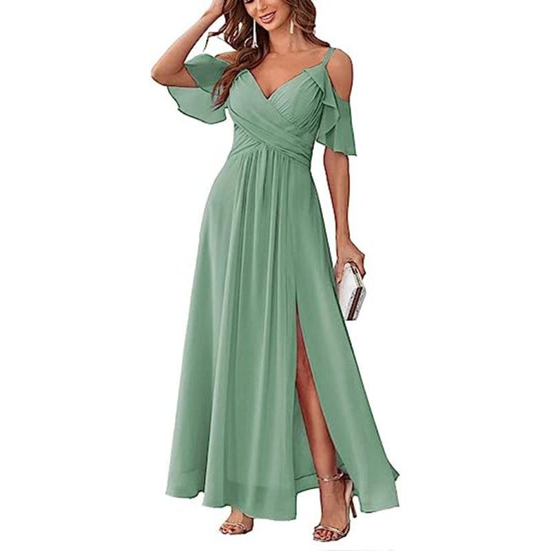 Europeo y Americano Transfronterizo 2025 Nuevo Vestido Falda Mangas con Volantes Vestido de Dama de Honor Vestido Largo de Gasa para Fiesta de Graduación Noche para Mujer