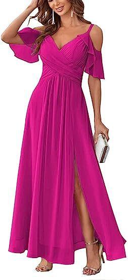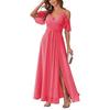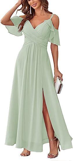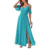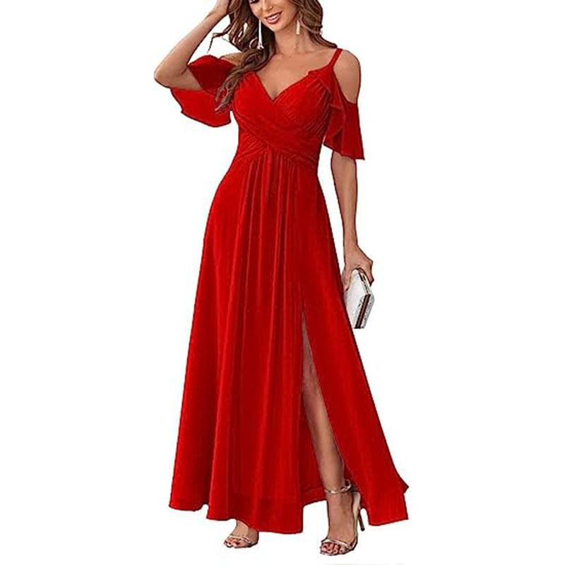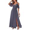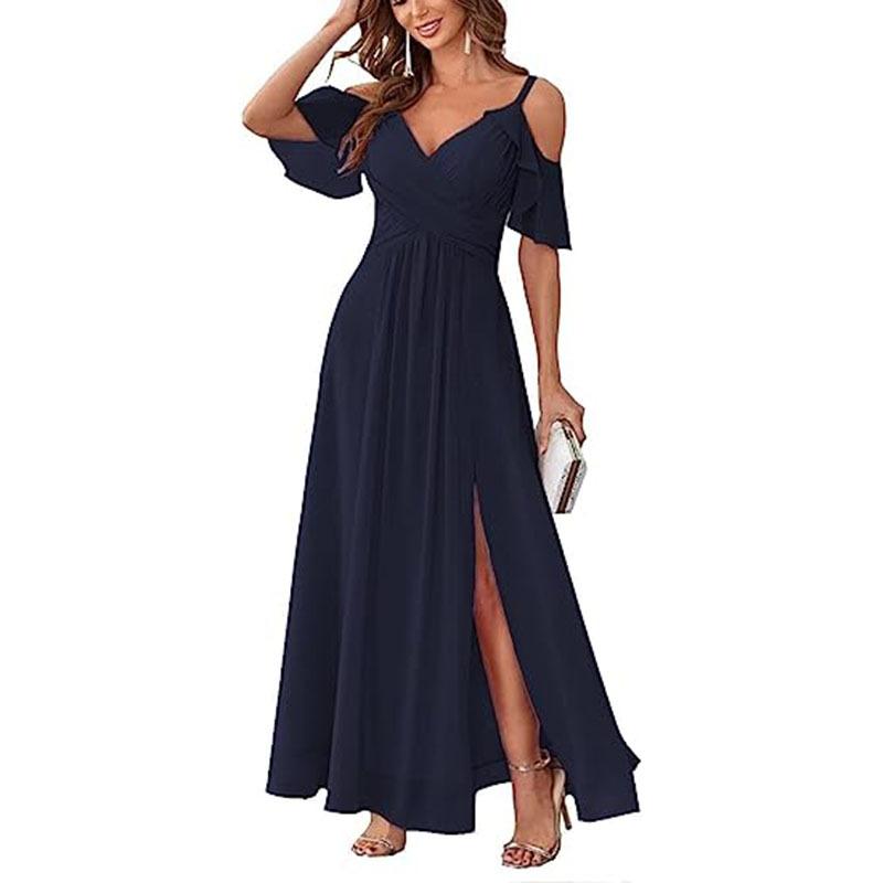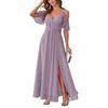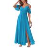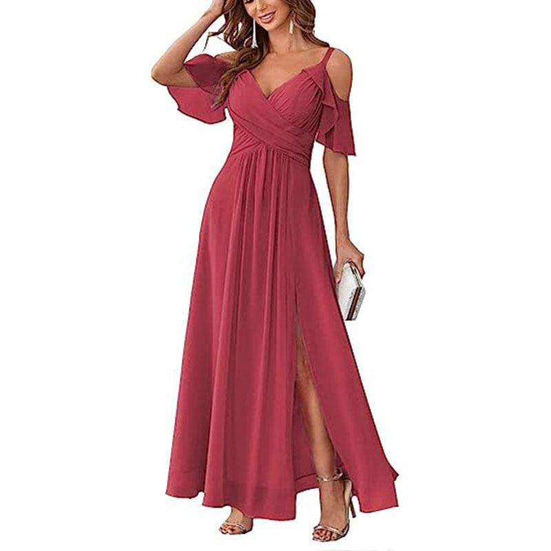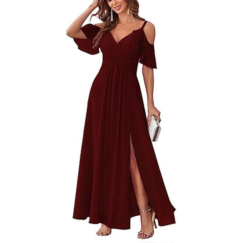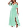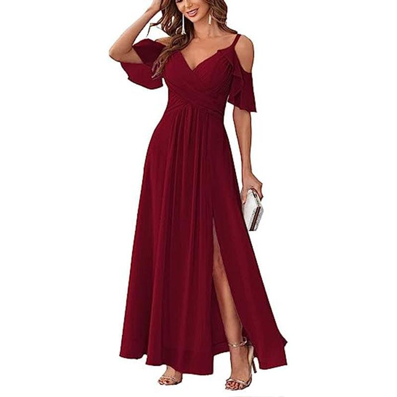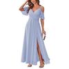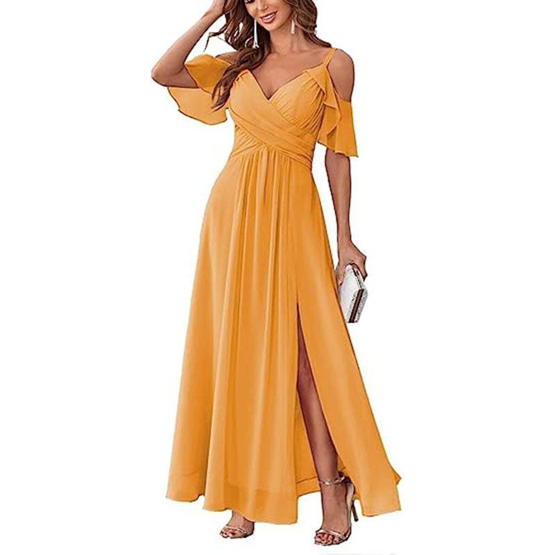 Europeo y Americano Transfronterizo 2025 Nuevo Vestido Falda Mangas con Volantes Vestido de Dama de Honor Vestido Largo de Gasa para Fiesta de Graduación Noche para Mujer