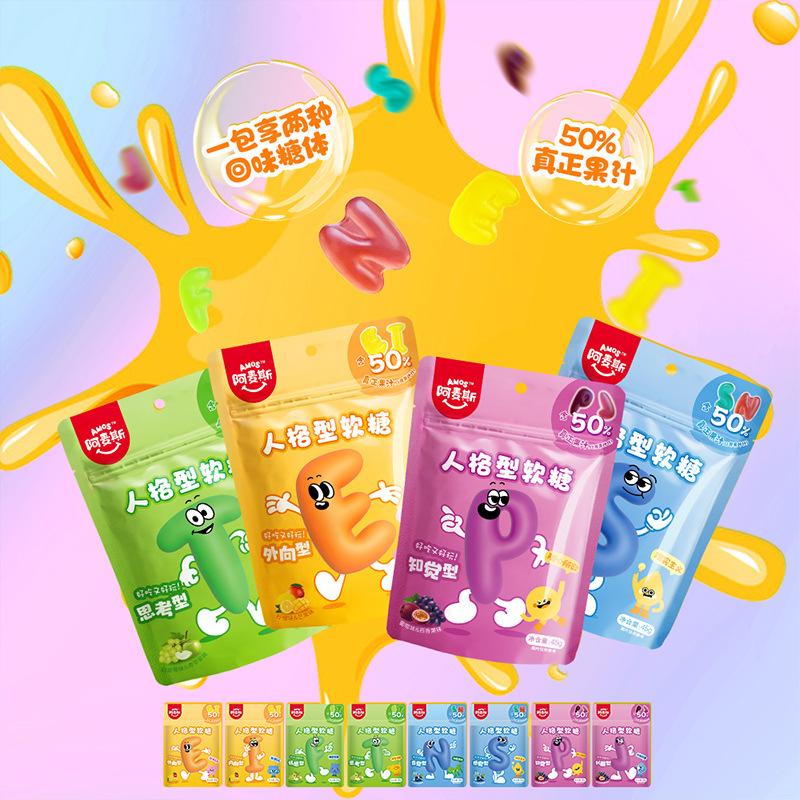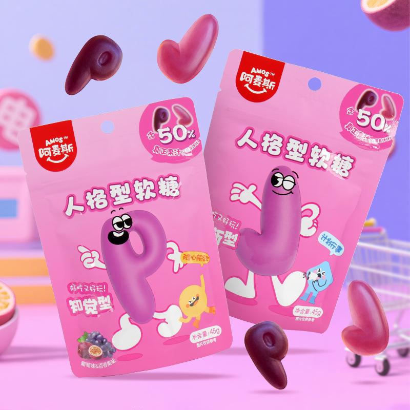 Caramelo Gominola Jugo de Fruta Tipo Personalidad Amass 45g Snacks Casuales Sabor Fruta Caramelo Gominola Divertido de Dibujos Animados