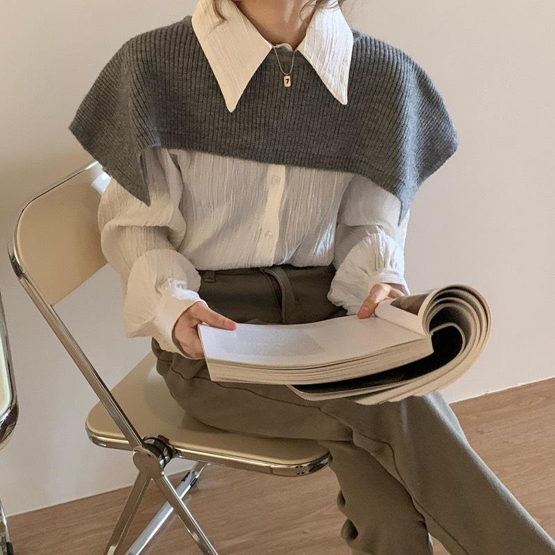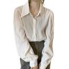 Camisa Retro Plisada de Manga Larga Estilo Sal Coreano 2025 para Mujer Solapa Estilo Francés Versátil Camisa Nicho Top para Mujer