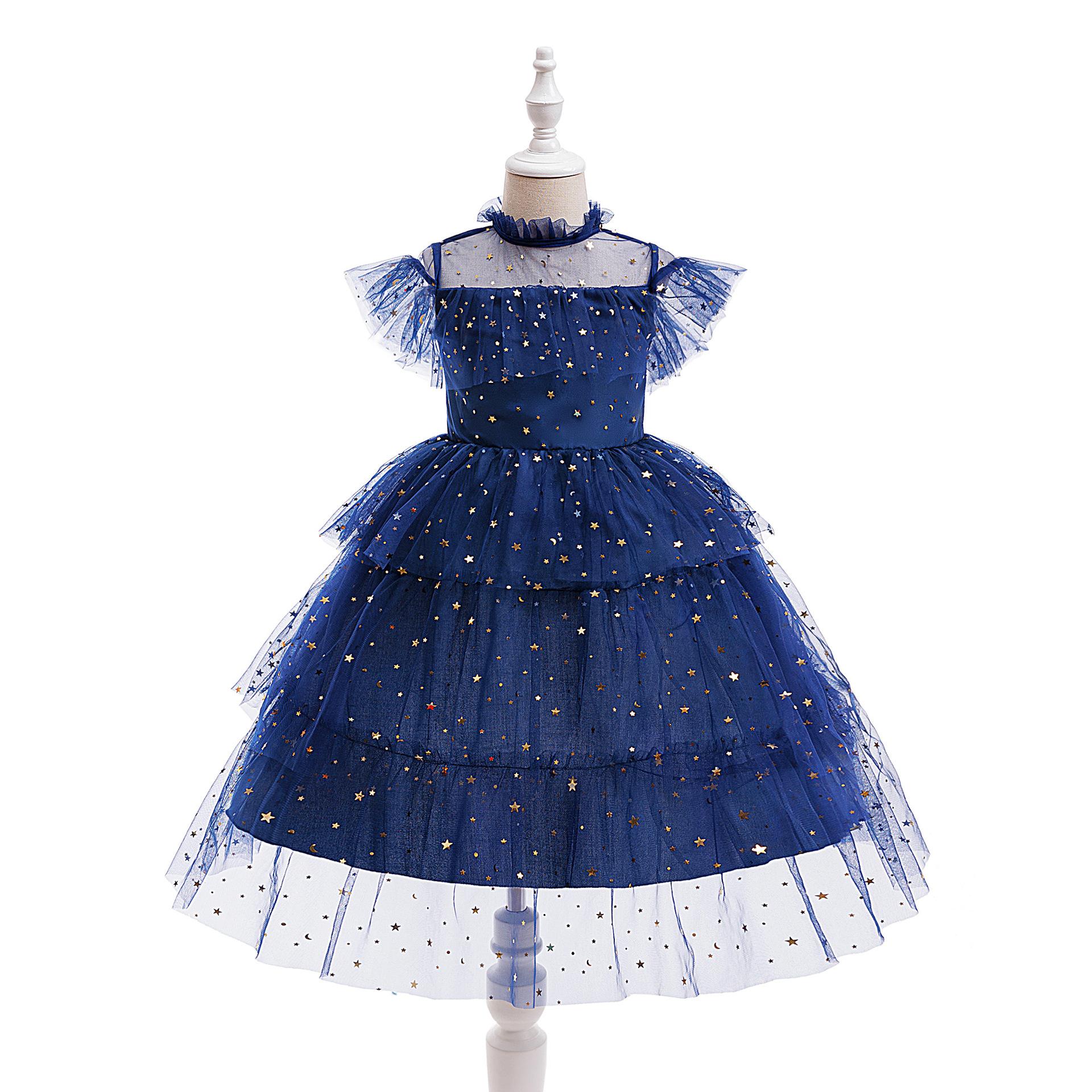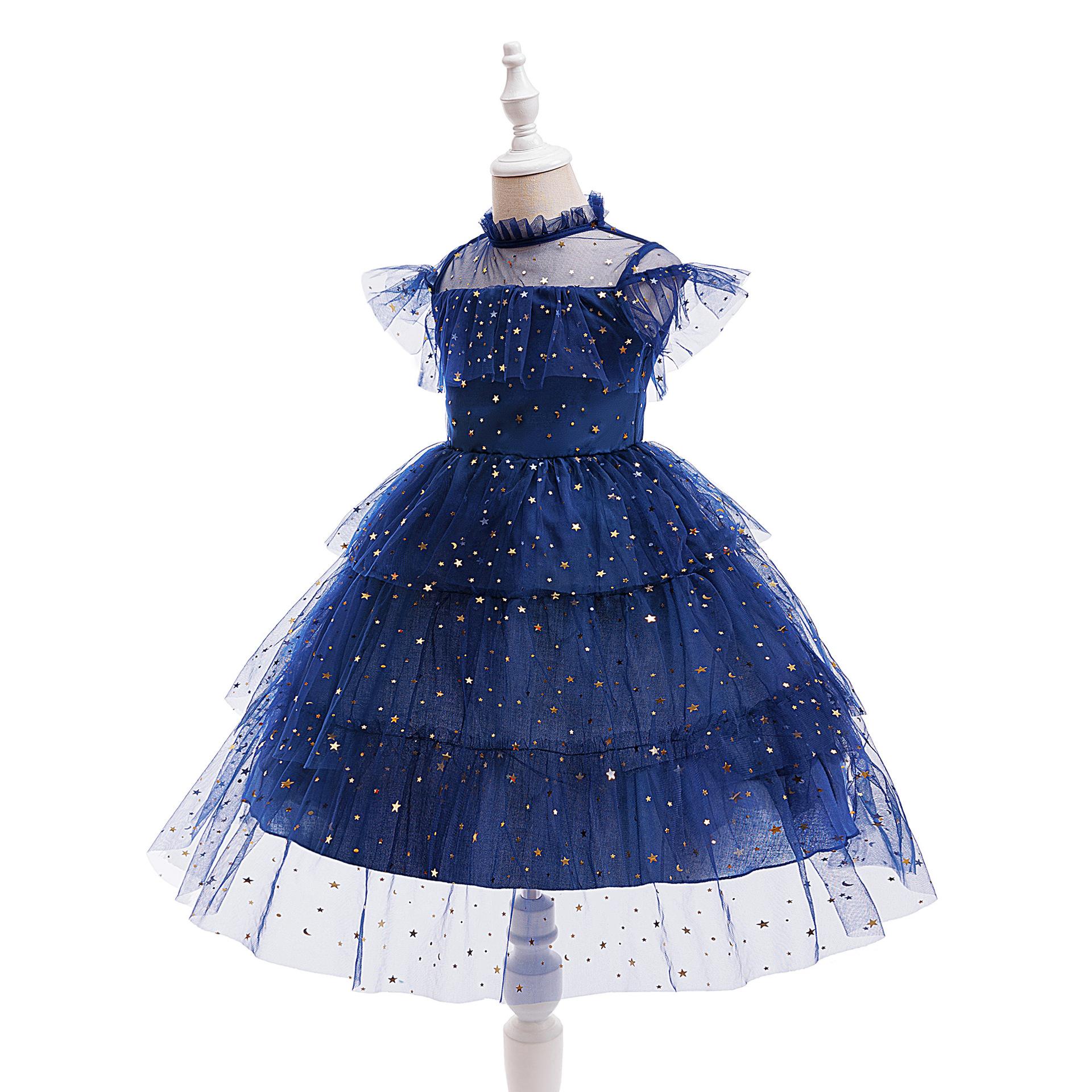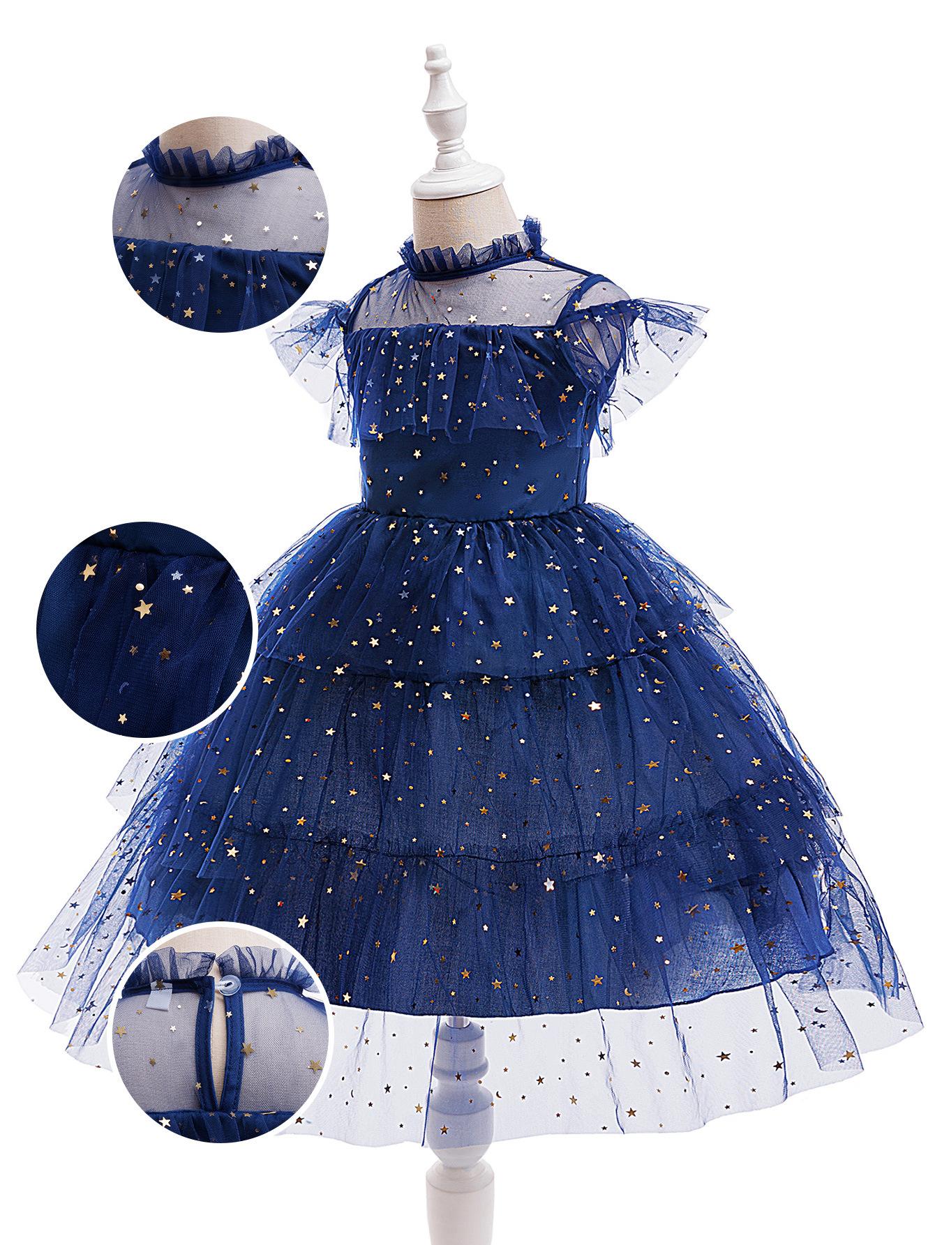 Nuevo Vestido de Actuación Infantil de Halloween Vestido de Princesa con Cuentas Vestido Negro con Falda Abullonada Falda de Tul Disfraz de Actuación para Niño Mediano