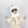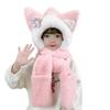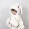 Bufanda Gruesa de Felpa para Otoño e Invierno para Niños, Gorro Integrado, Guantes Cálidos, Set de Tres Piezas de Dibujos Animados de Orejas Largas, Sombrero de Invierno a la Moda