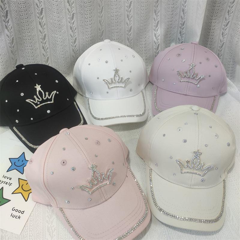 Sombrero de princesa Diamond Crown gorra de béisbol para niños medianos y grandes gorra con visera para estudiantes de primaria tendencia de moda tesoro femenino sombrero para el sol para exteriores
