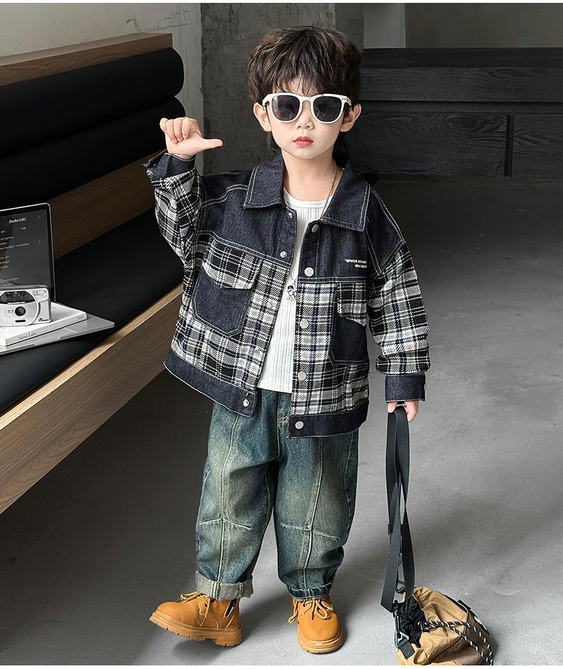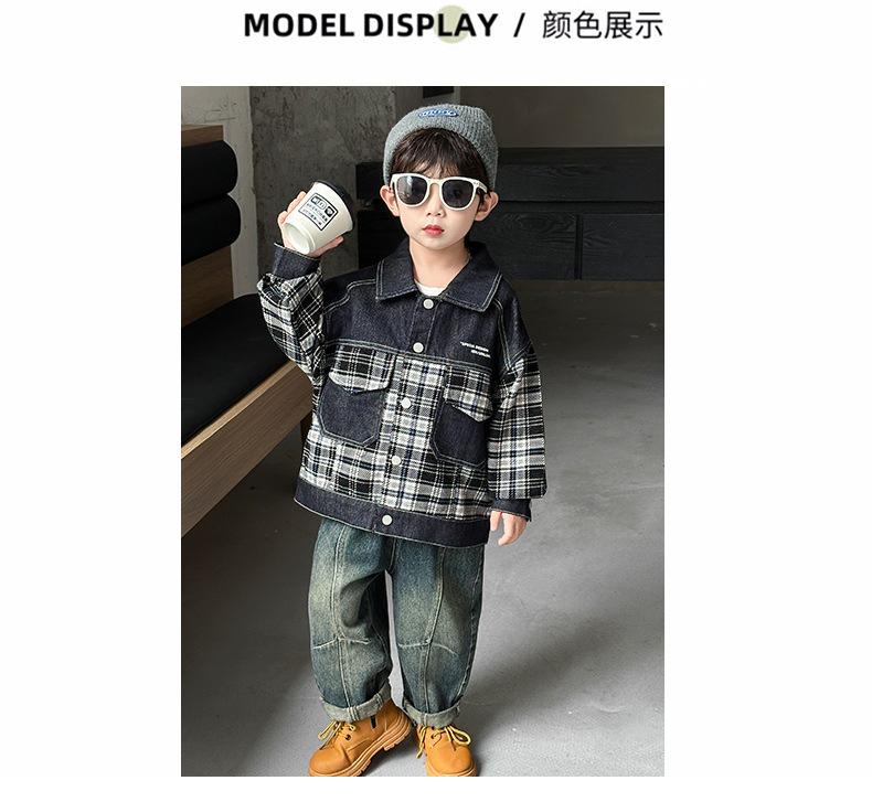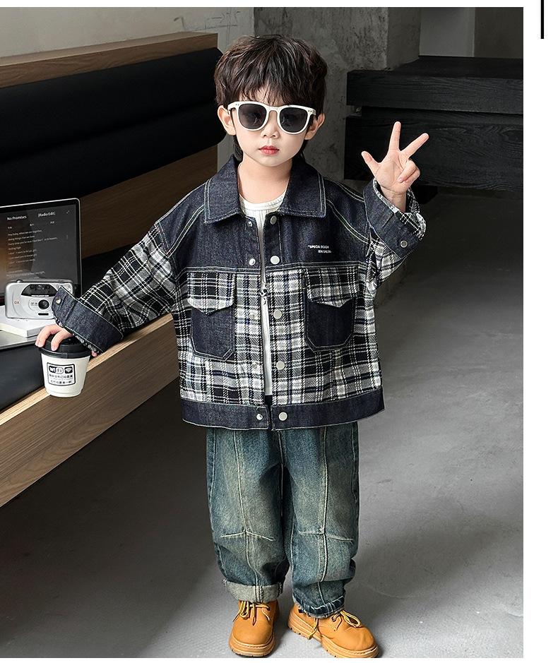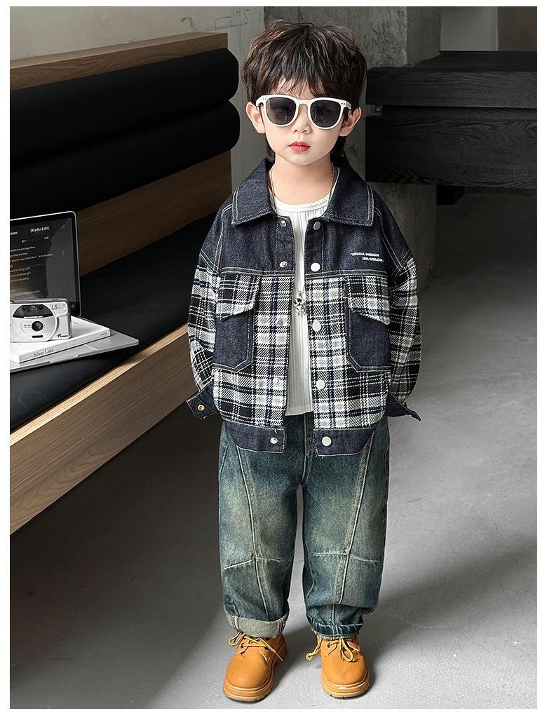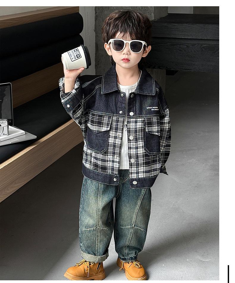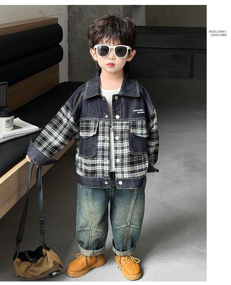 Chaqueta de mezclilla para niño estilo primavera y otoño 2025 nueva para niños parcheada a cuadros top niño bebé ropa de otoño chaqueta a la moda