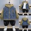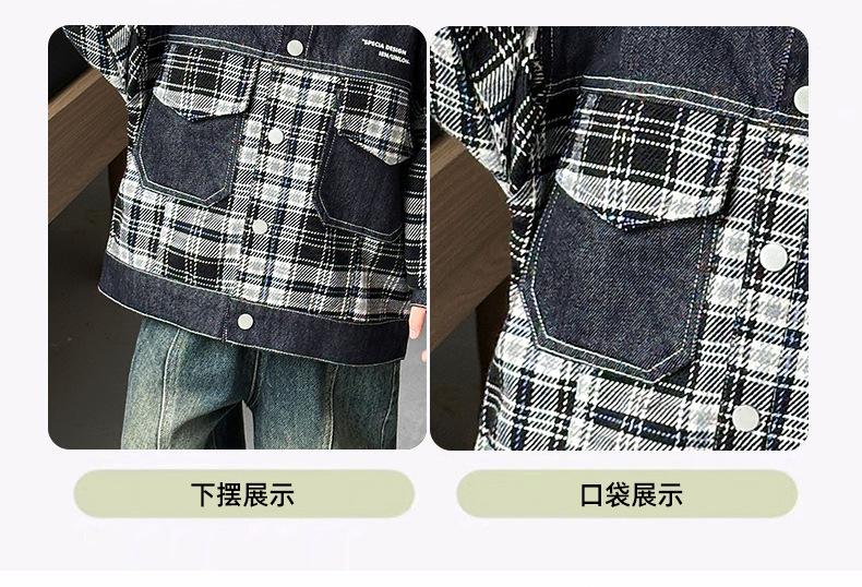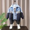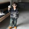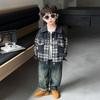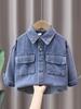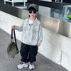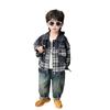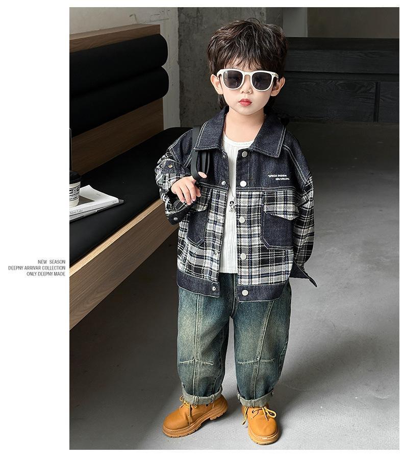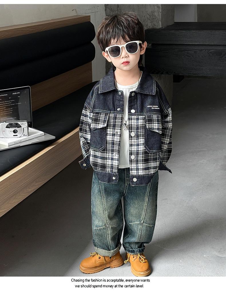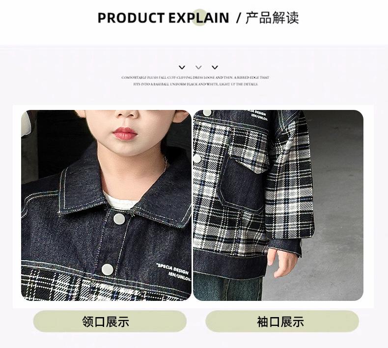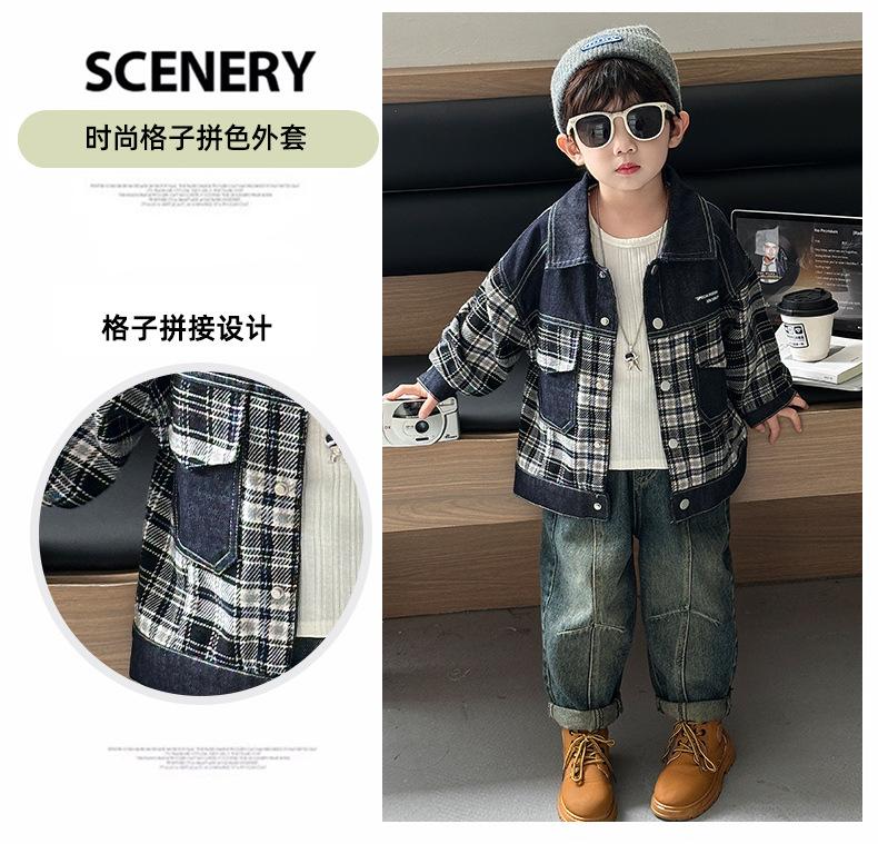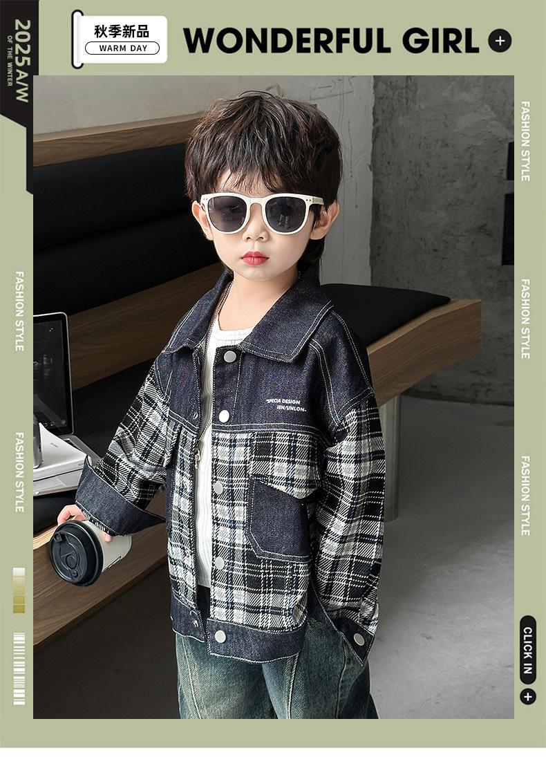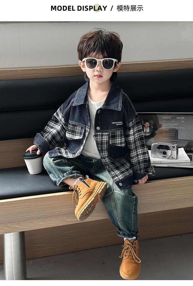 Chaqueta de mezclilla para niño estilo primavera y otoño 2025 nueva para niños parcheada a cuadros top niño bebé ropa de otoño chaqueta a la moda