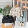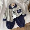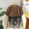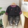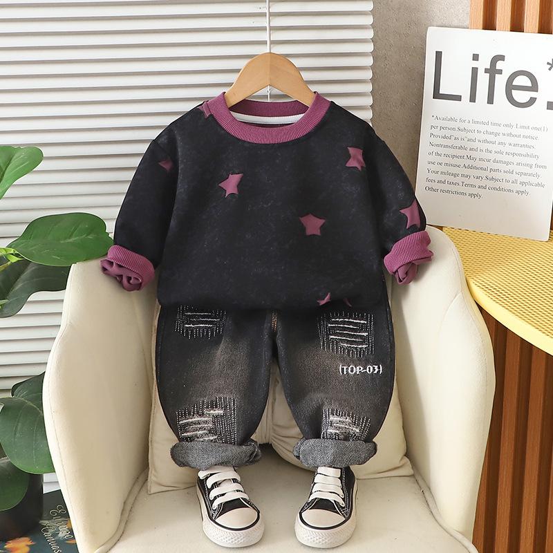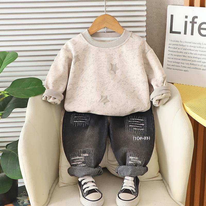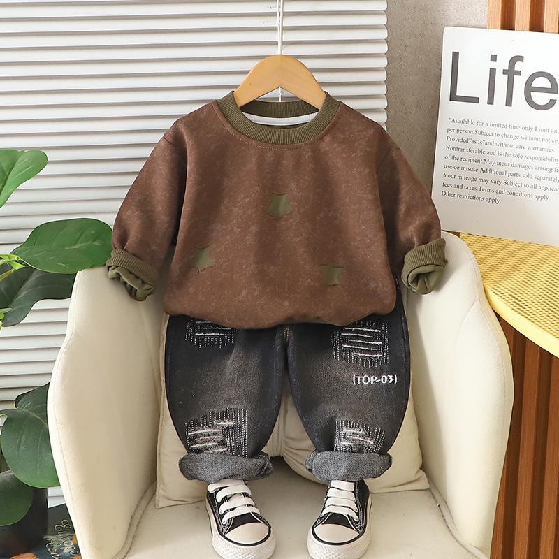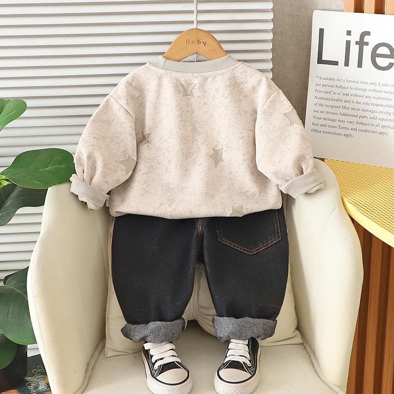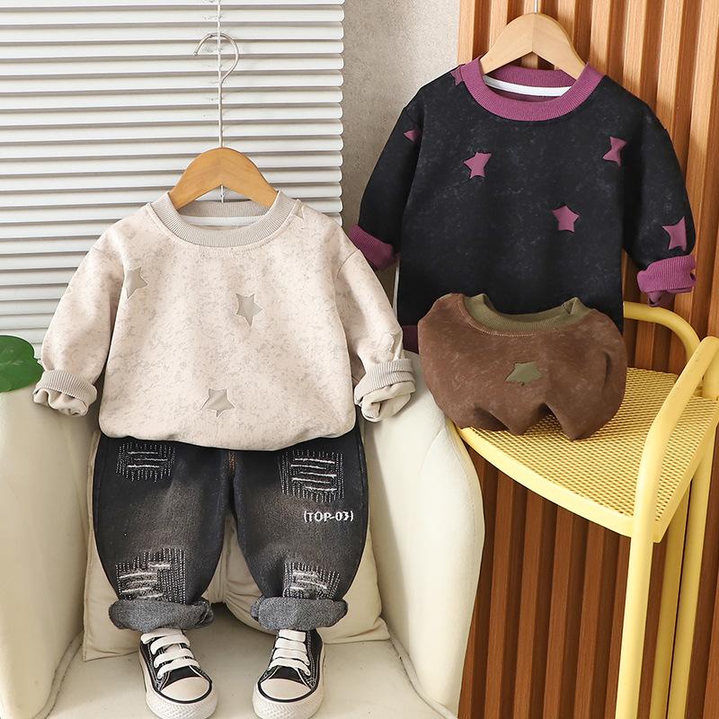 Conjunto de dos piezas de sudadera de cuello redondo con estrella para bebé niño para primavera y otoño, ropa infantil casual nueva 2025, manga larga para niño