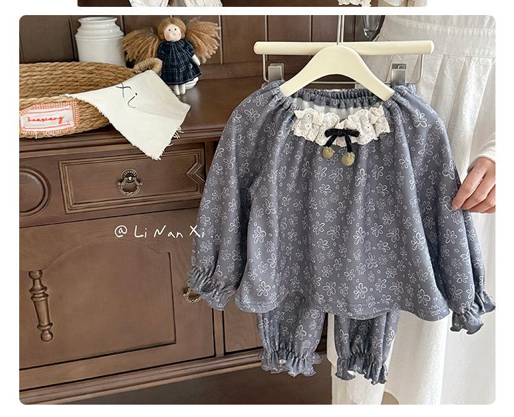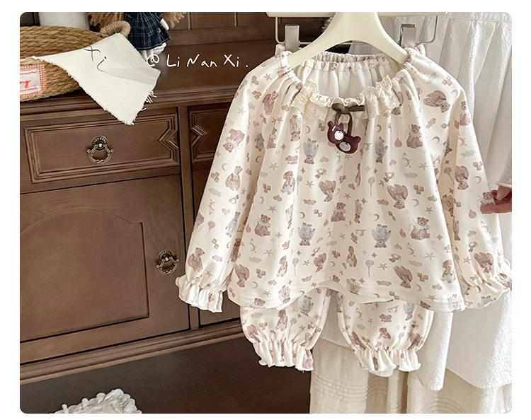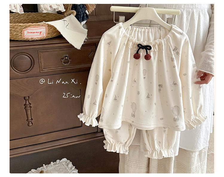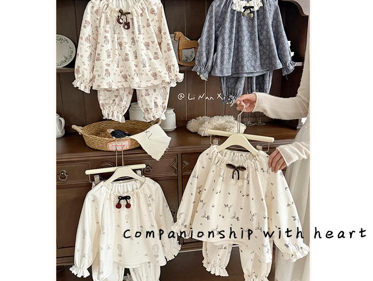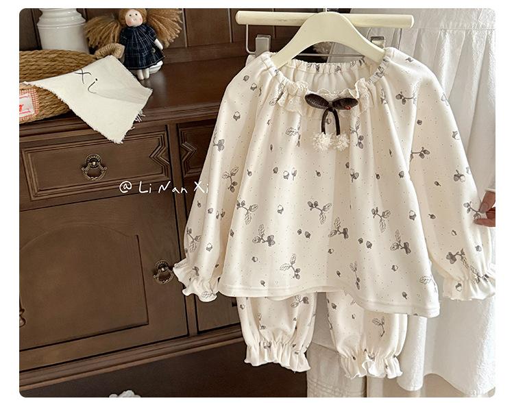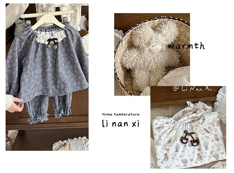 88180 Conjunto de Pijama de Otoño para Niñas 2025 Nuevo Conjunto de Ropa de Otoño para Bebé Niña Pijama para Niños Pequeños y Medianos con Forro Polar Ropa para el Hogar