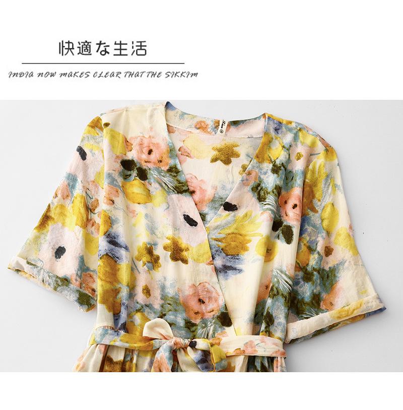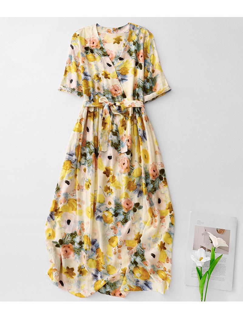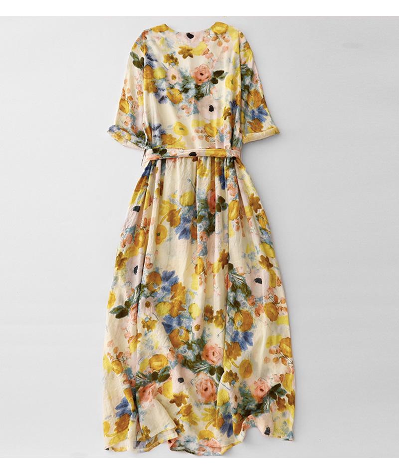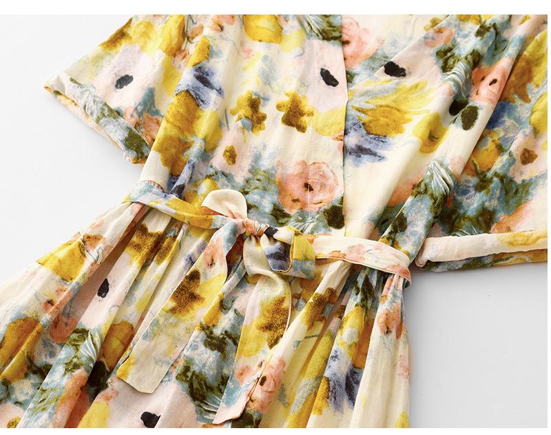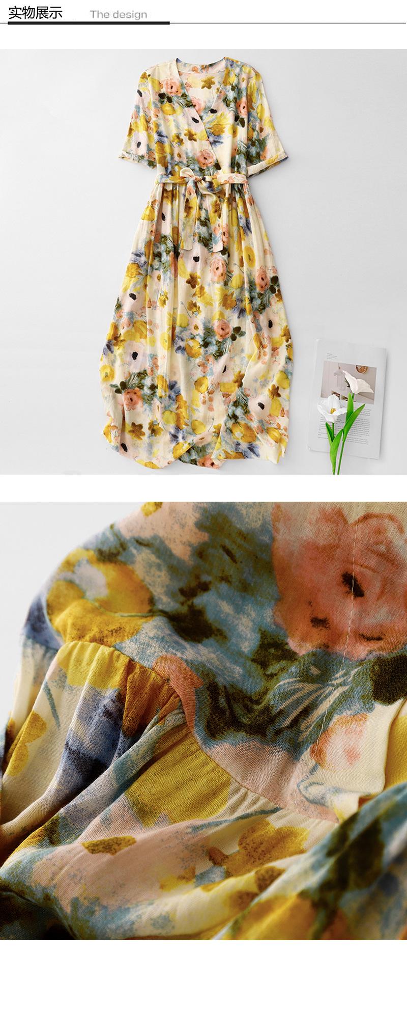Vestido Floral de Foto Real Verano 2025 Nuevo Vestido Estampado con Cuello en V Vestido Estilo Vacaciones de Playa Color de la Imagen