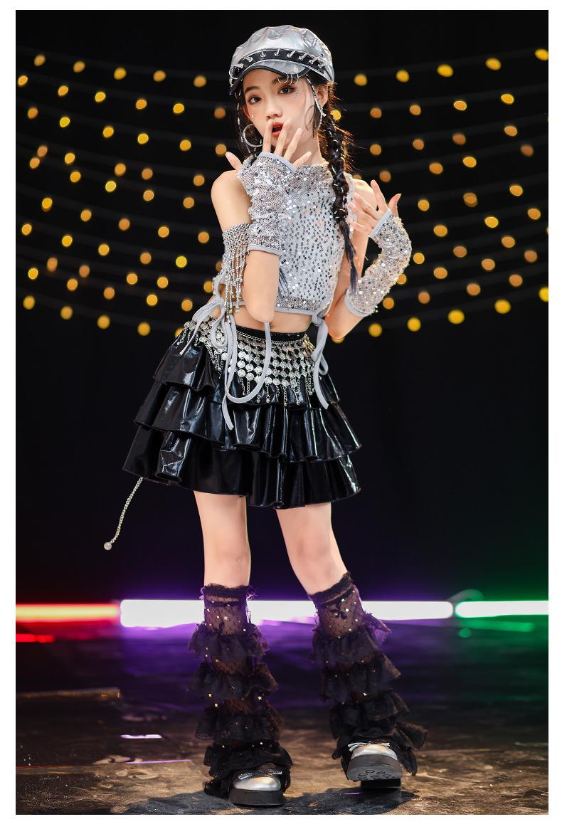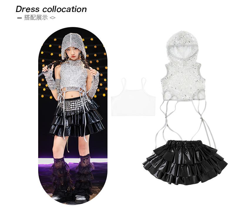 Ropa para Niñas de Danza Jazz Infantil Hip Hop Niña Sudadera con Capucha Lentejuelas Conjunto de Danza Urbana Pasarela Grupo Femenino Disfraz Actuación Escénica