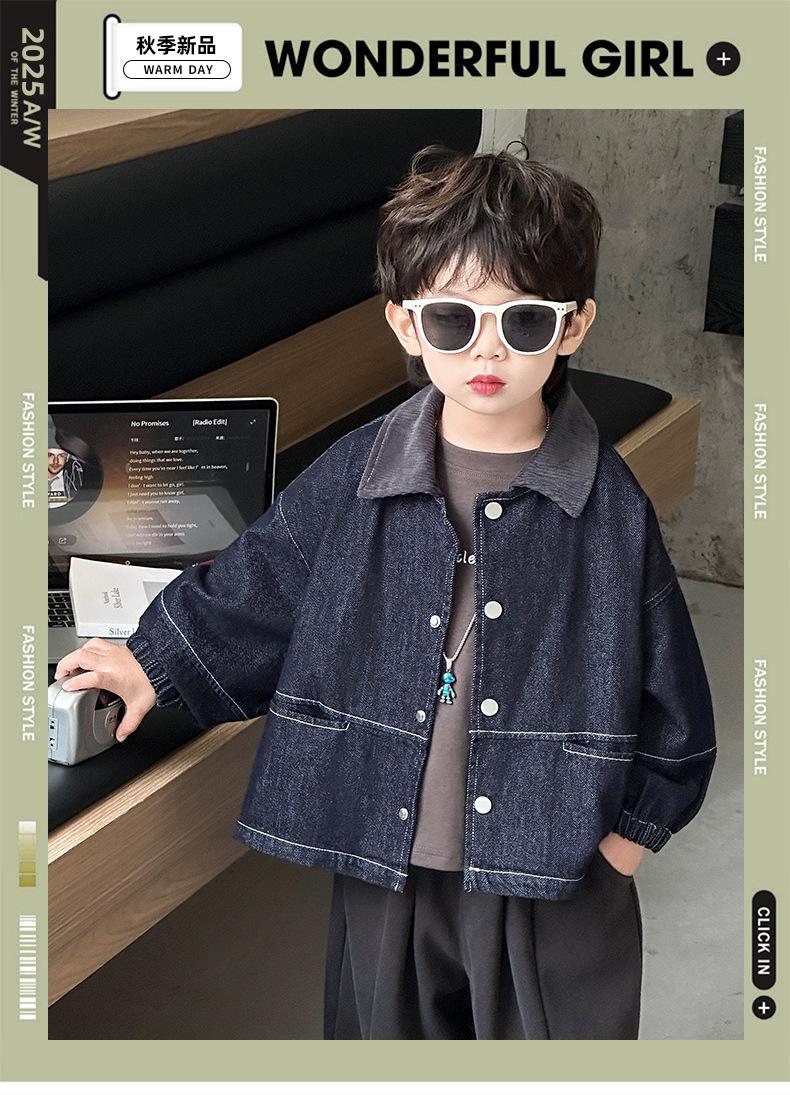 Chaqueta de mezclilla para niño estilo primavera y otoño 2025 nueva ropa de otoño para niños moderna top niño bebé chaqueta guapa genial marea