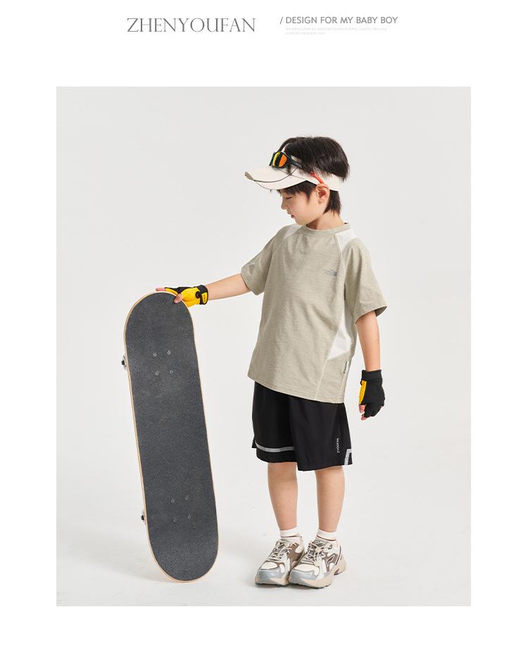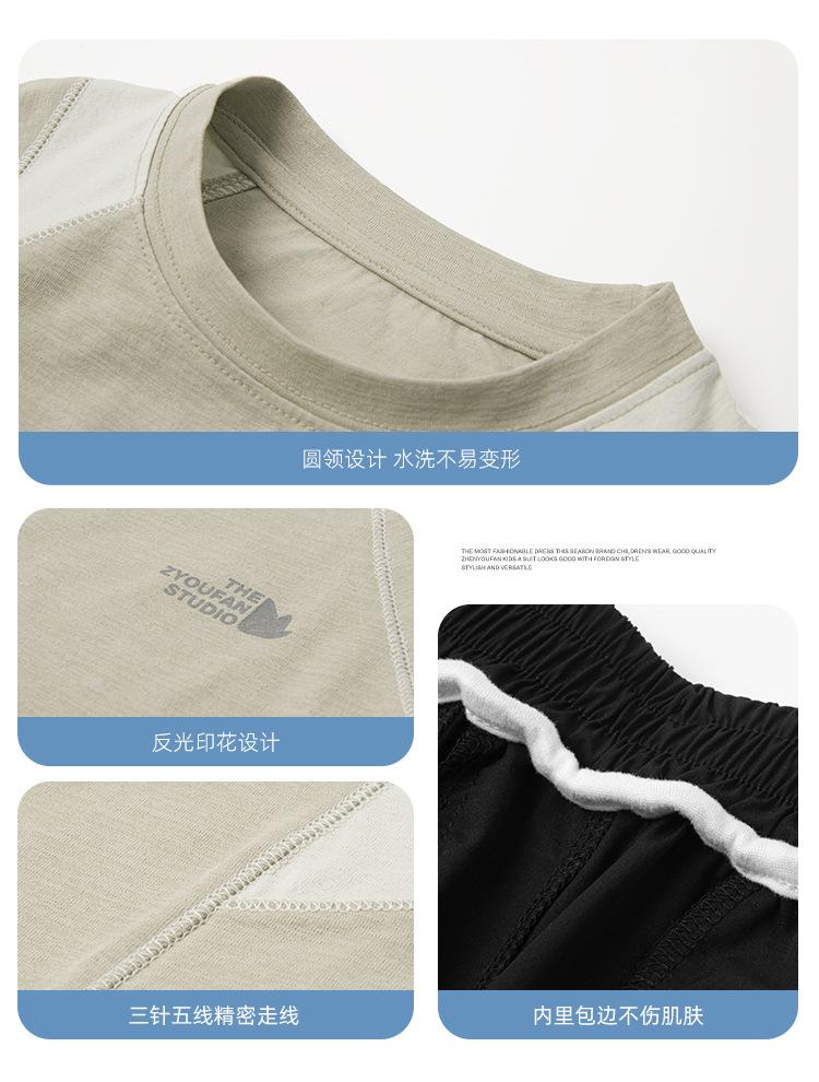 Ropa para Niños Zhenpinxuan Traje de Verano para Niños 2025 Nuevo Niños Grandes Verano Delgada Niños Manga Corta Pantalones Cortos Conjunto de Dos Piezas