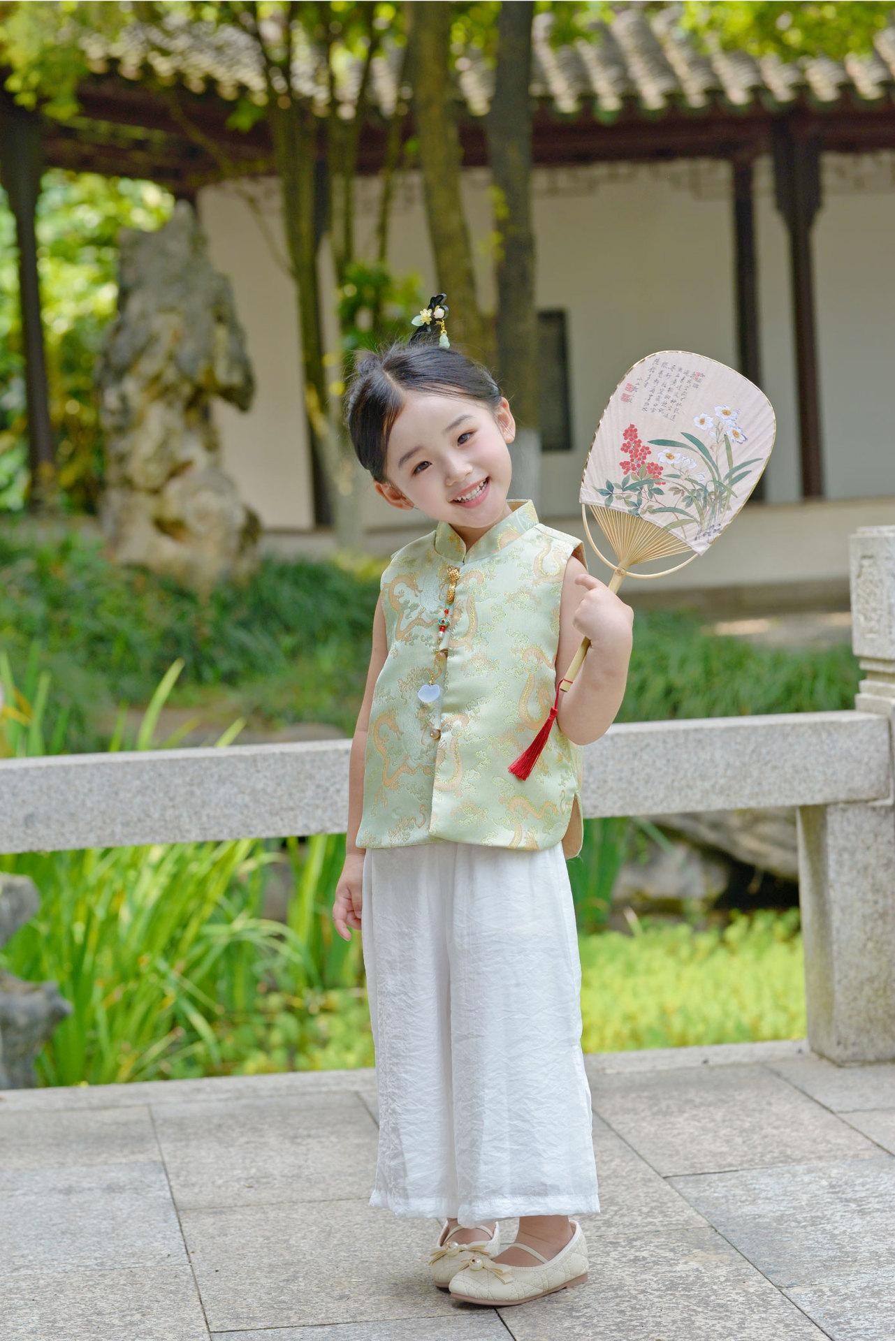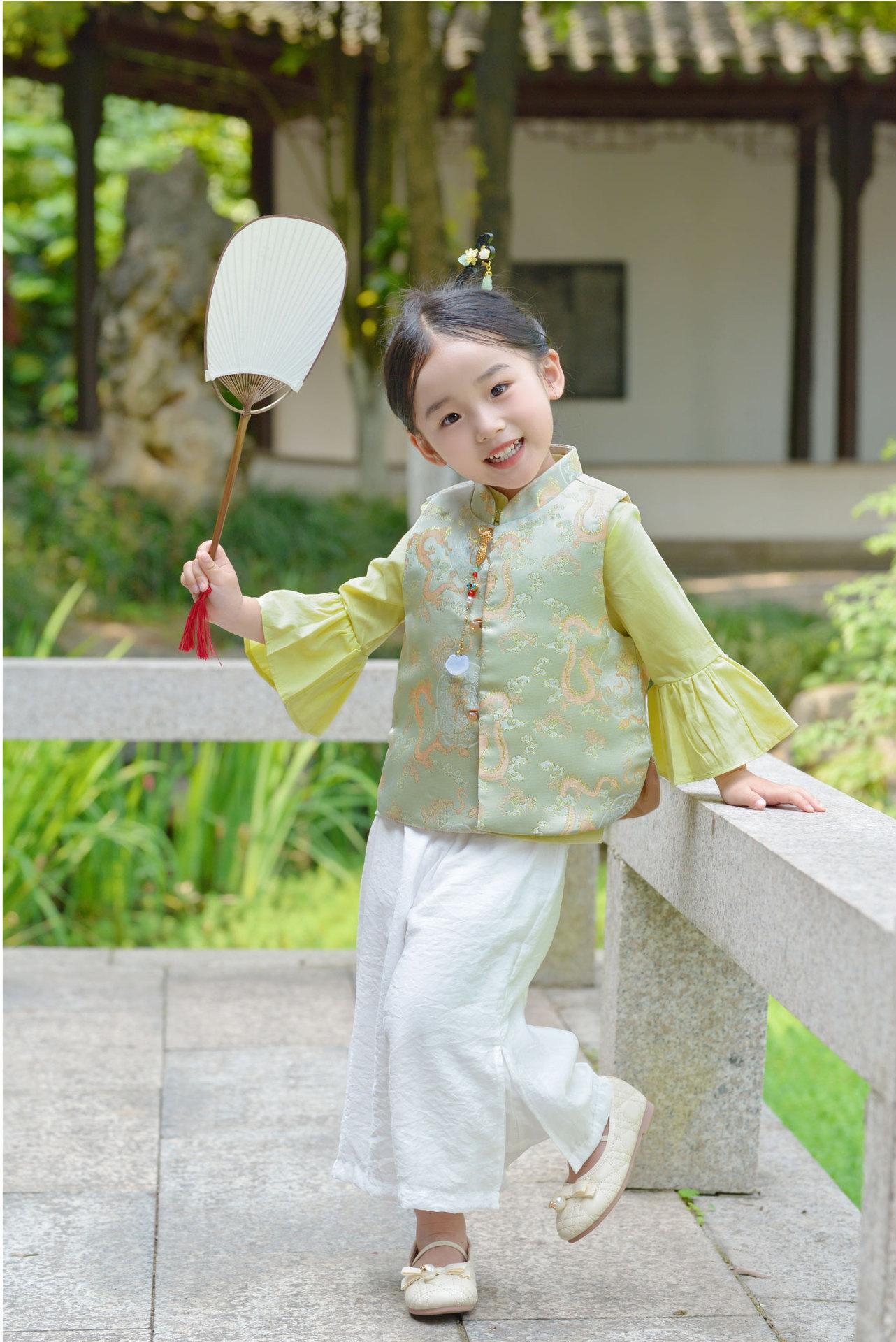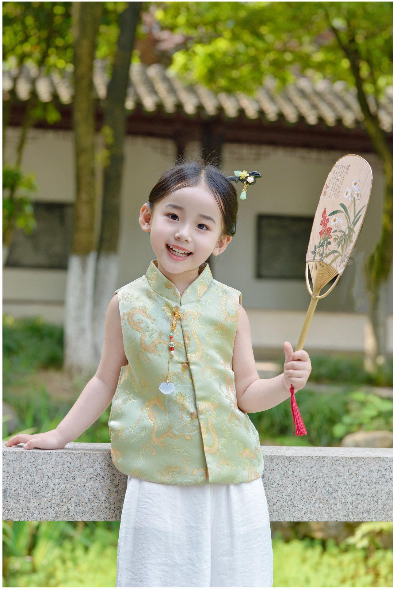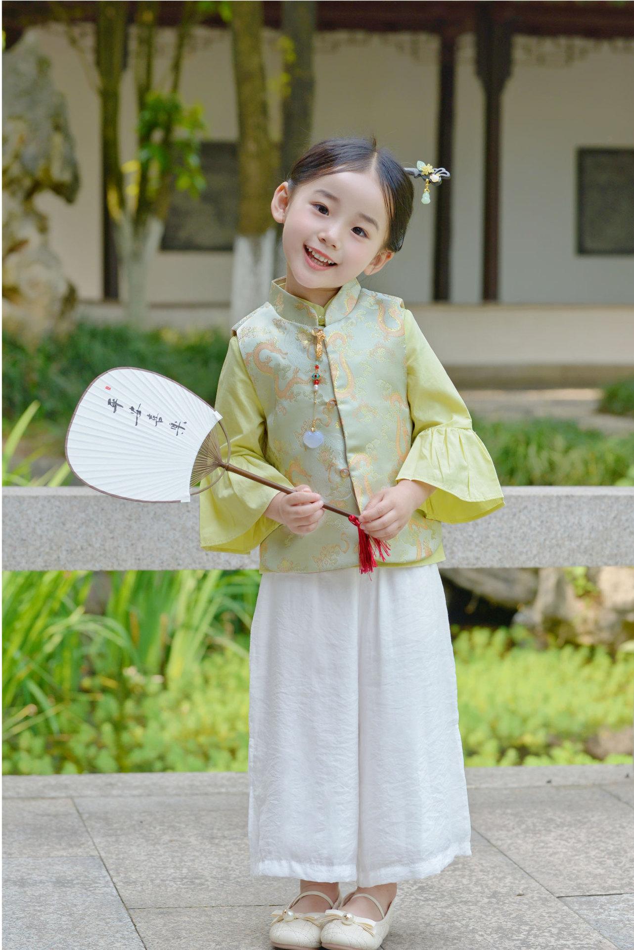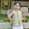 Ropa infantil de estilo chino para niñas, chaleco de estilo chino nuevo, traje Tang, chaleco retro de primavera y otoño, hebilla, traje Hanfu