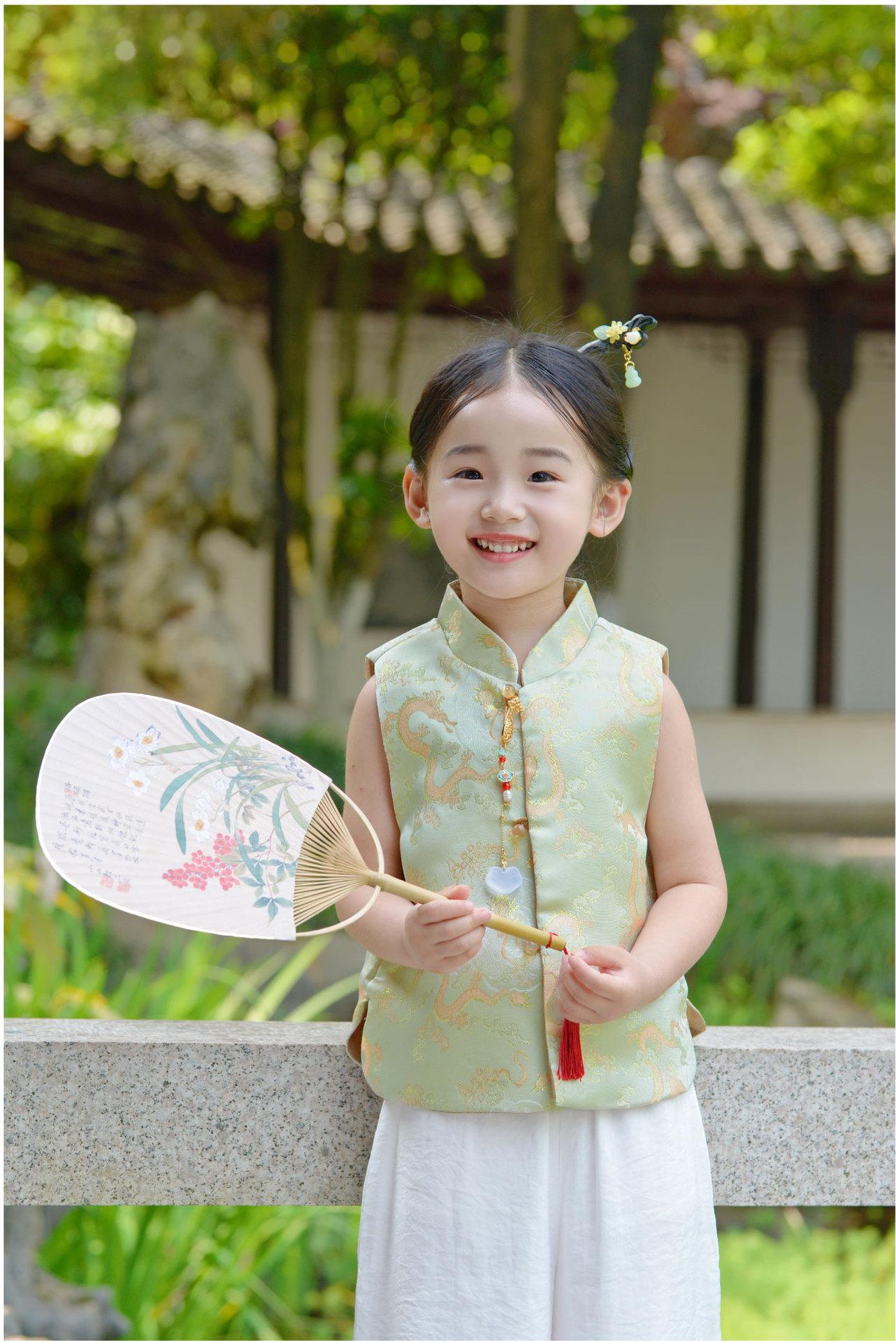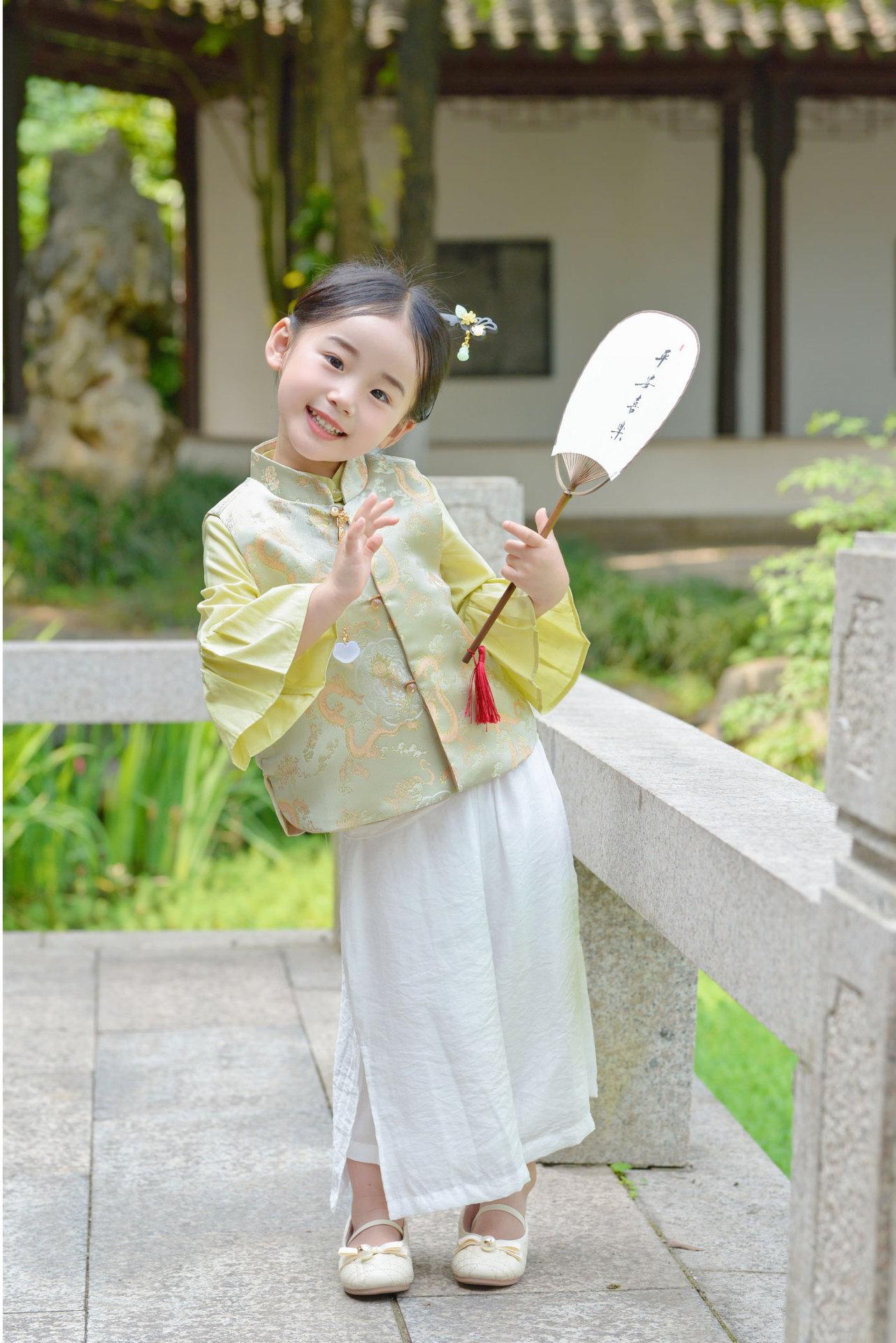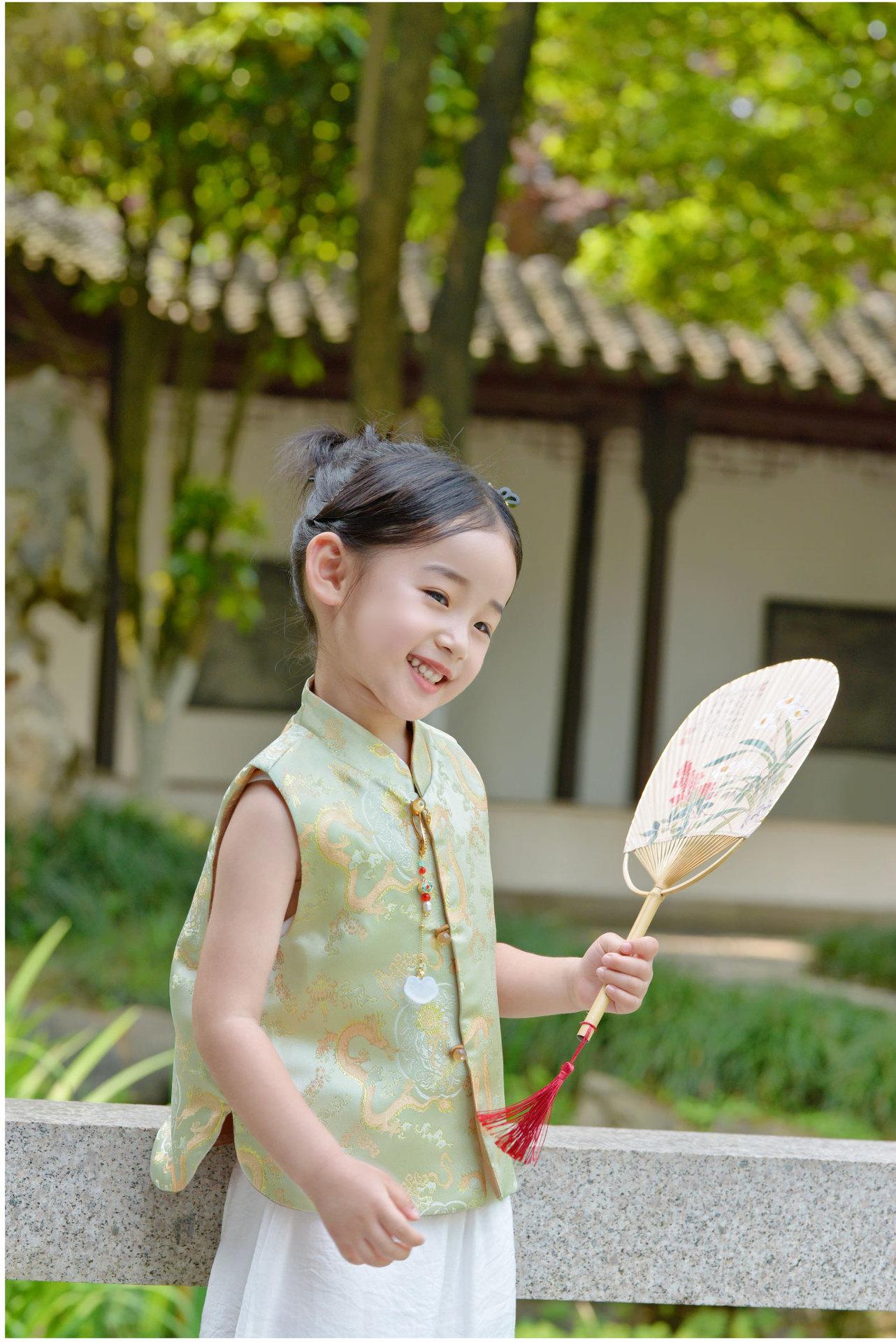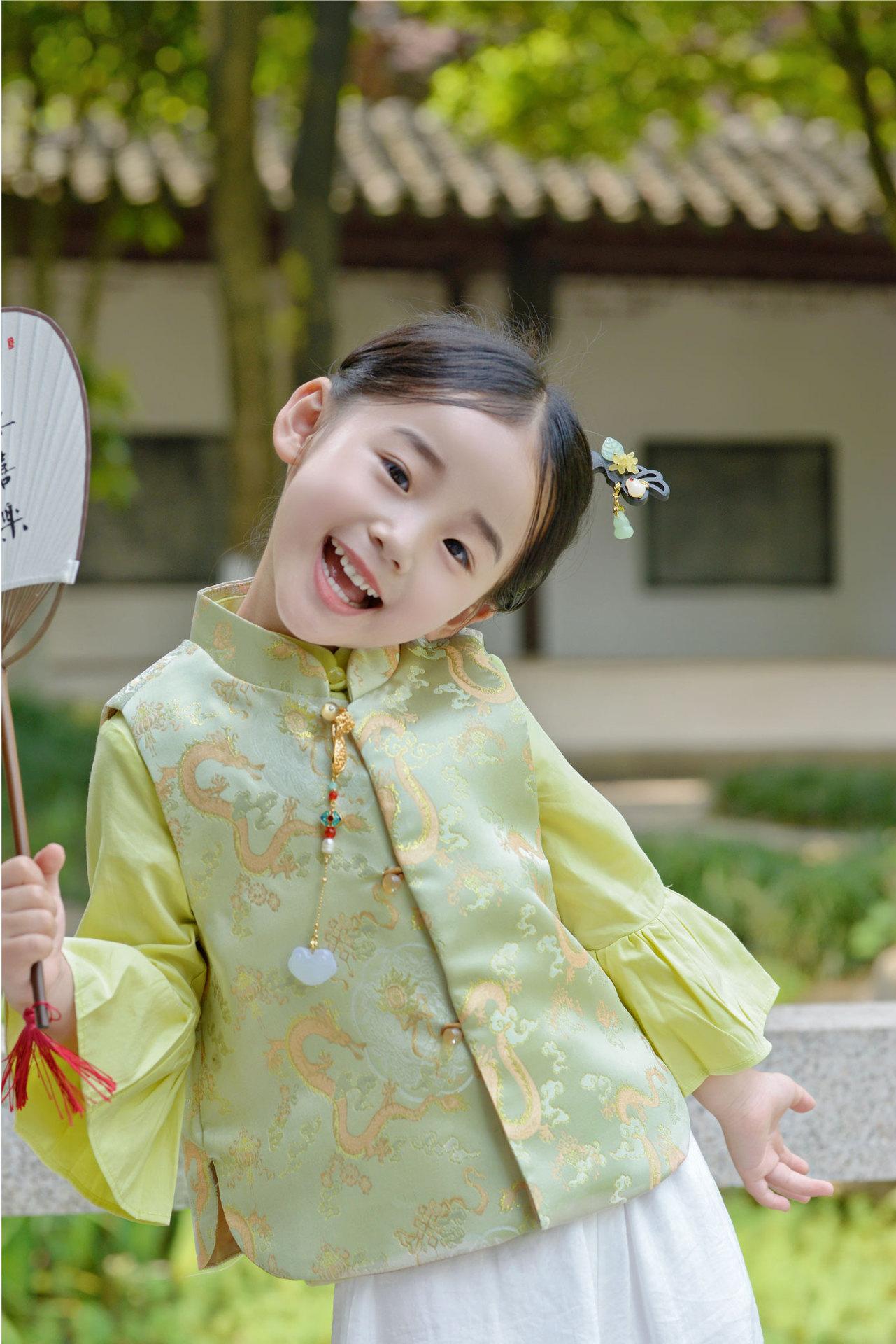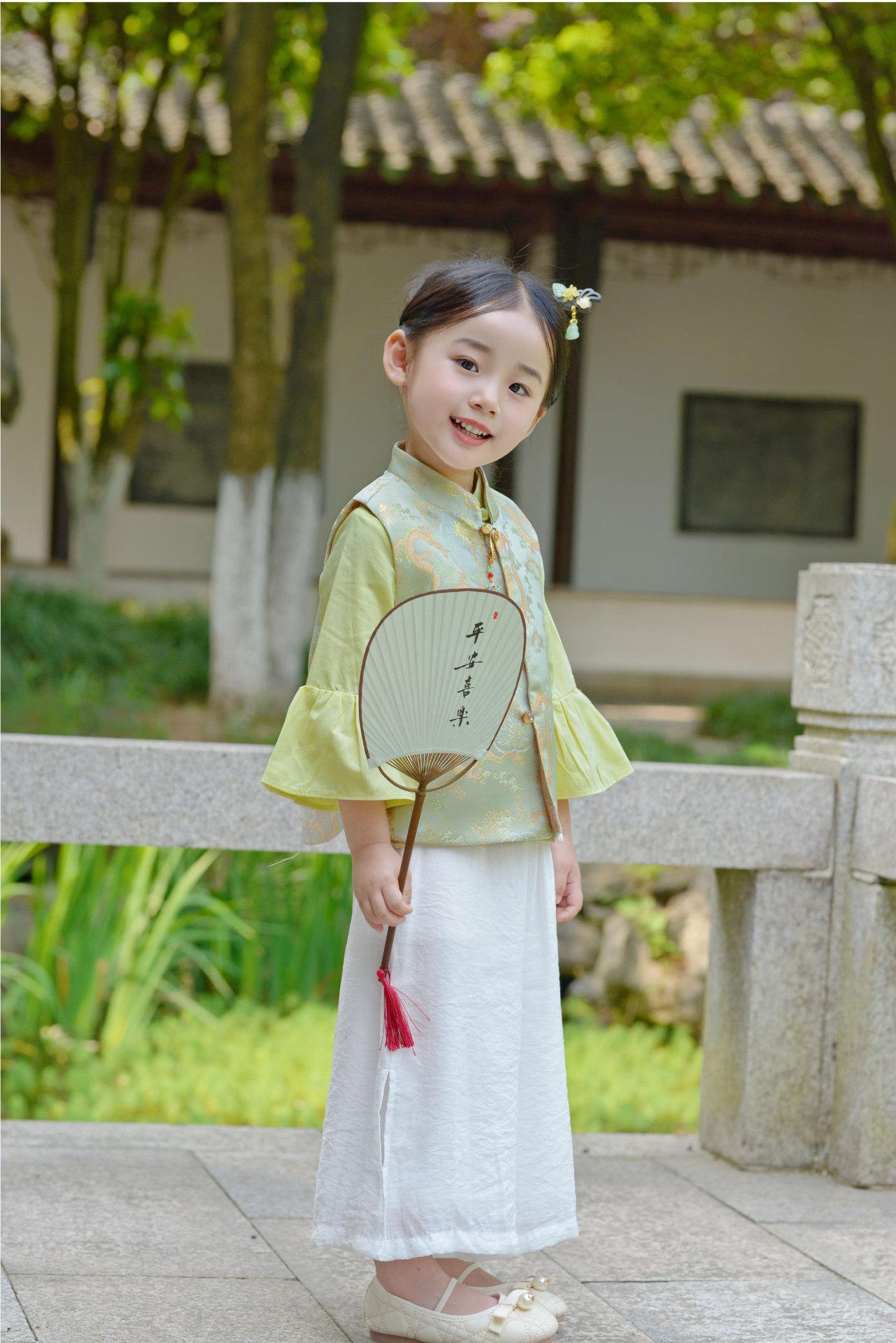 Ropa infantil de estilo chino para niñas, chaleco de estilo chino nuevo, traje Tang, chaleco retro de primavera y otoño, hebilla, traje Hanfu
