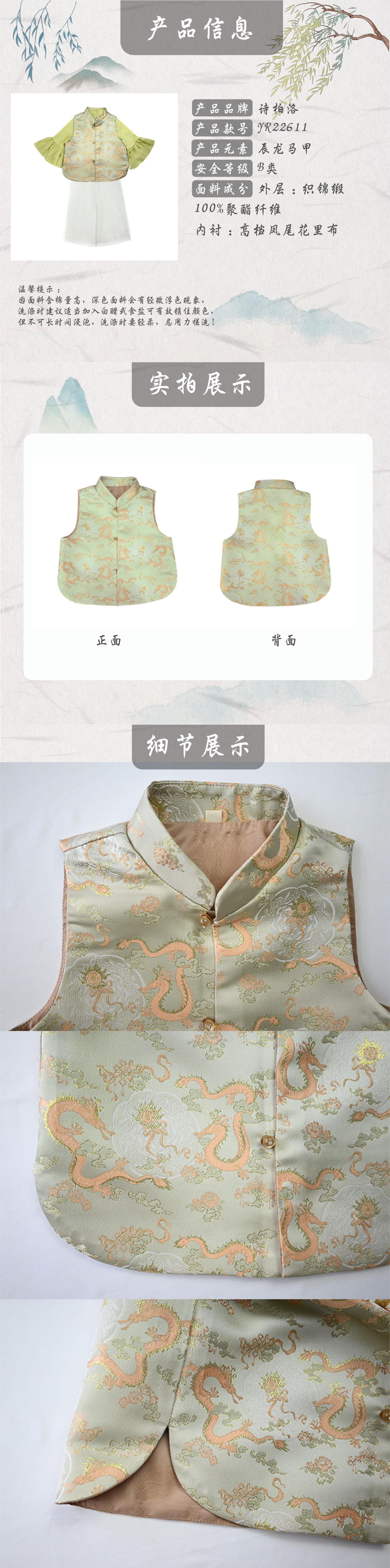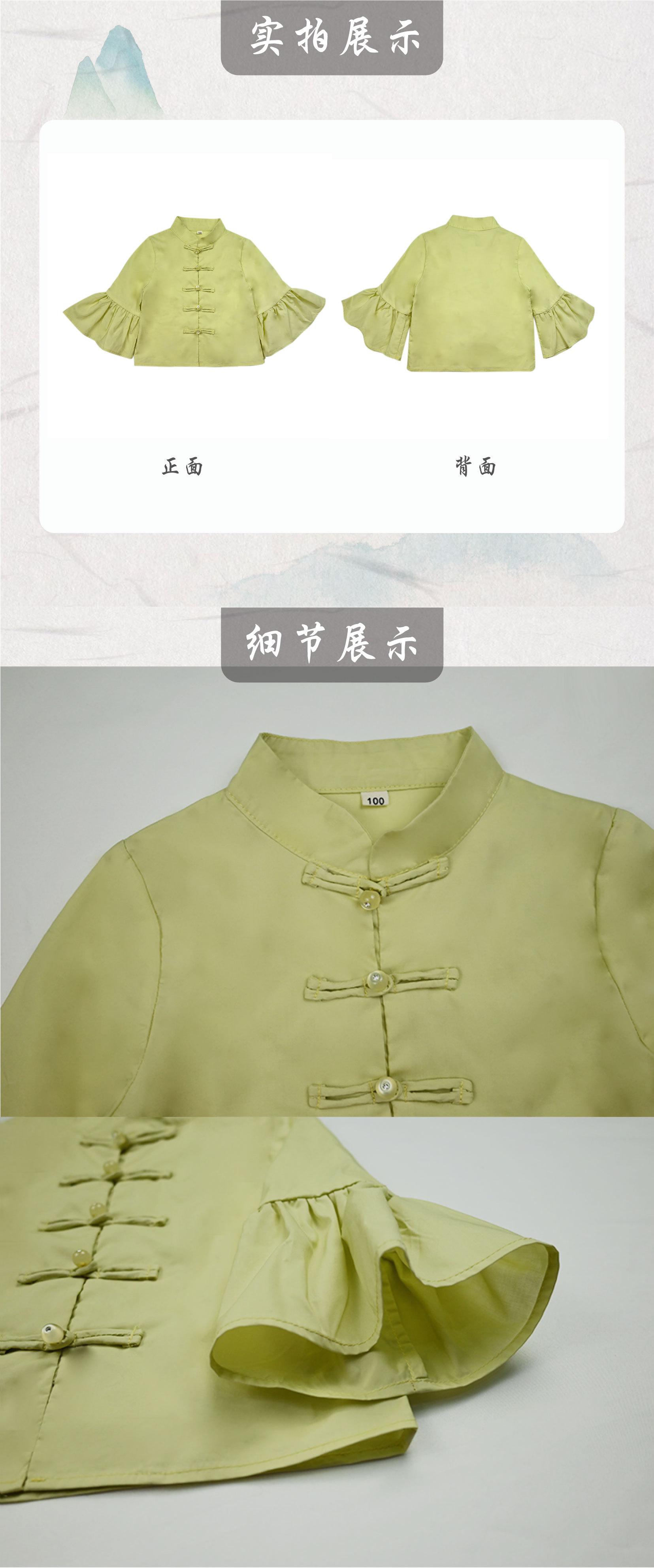 Chenlong vest, Autumn green bell sleeve shirt