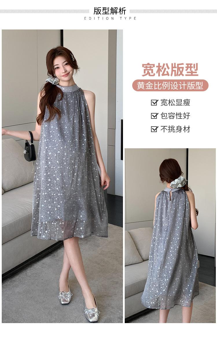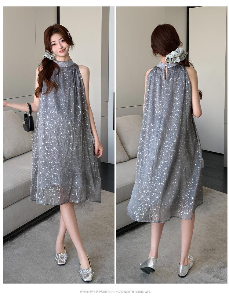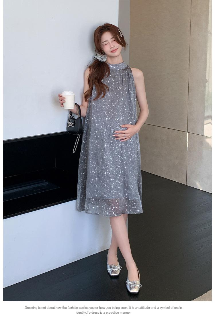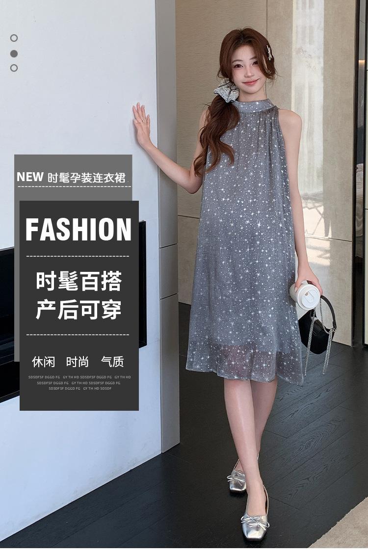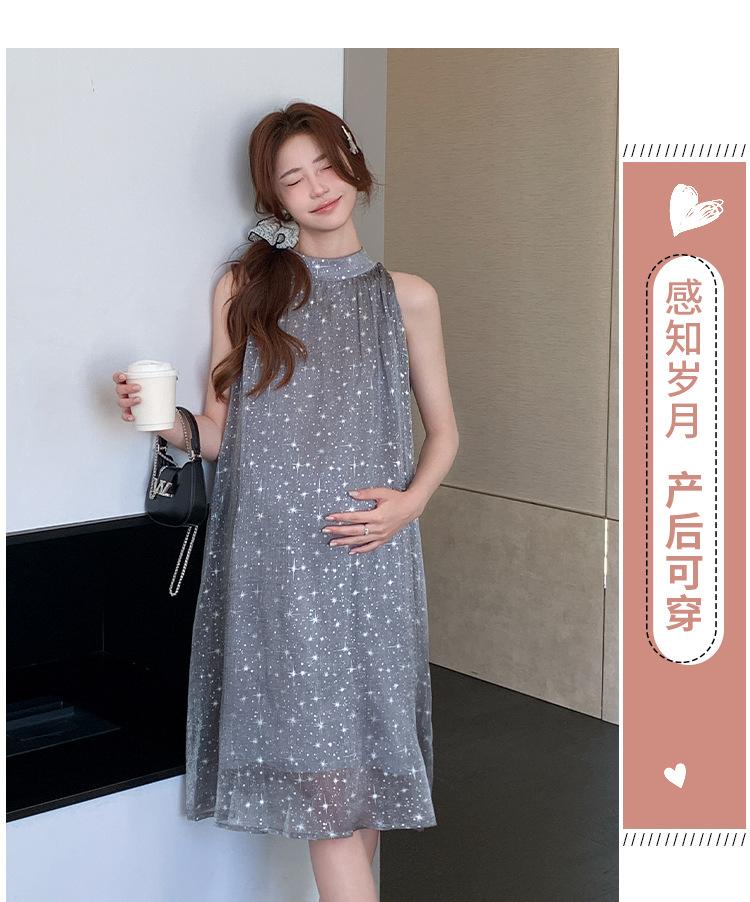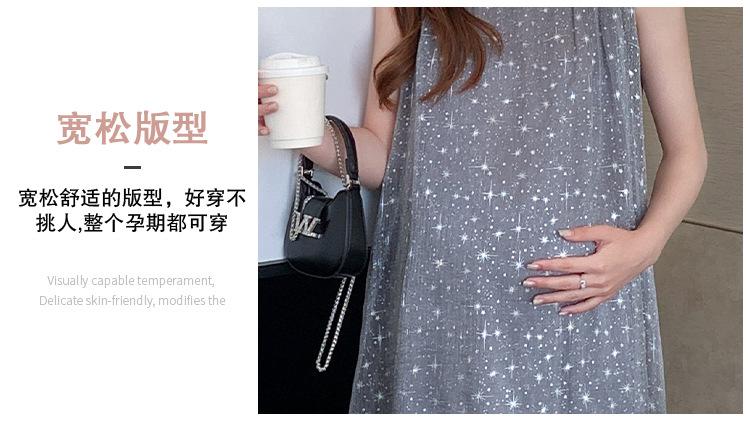 Ropa de Maternidad 2025 Verano Nuevo Estilo Moda Sin Mangas Falda de Gasa Cielo Estrellado Vestido de Maternidad Holgado