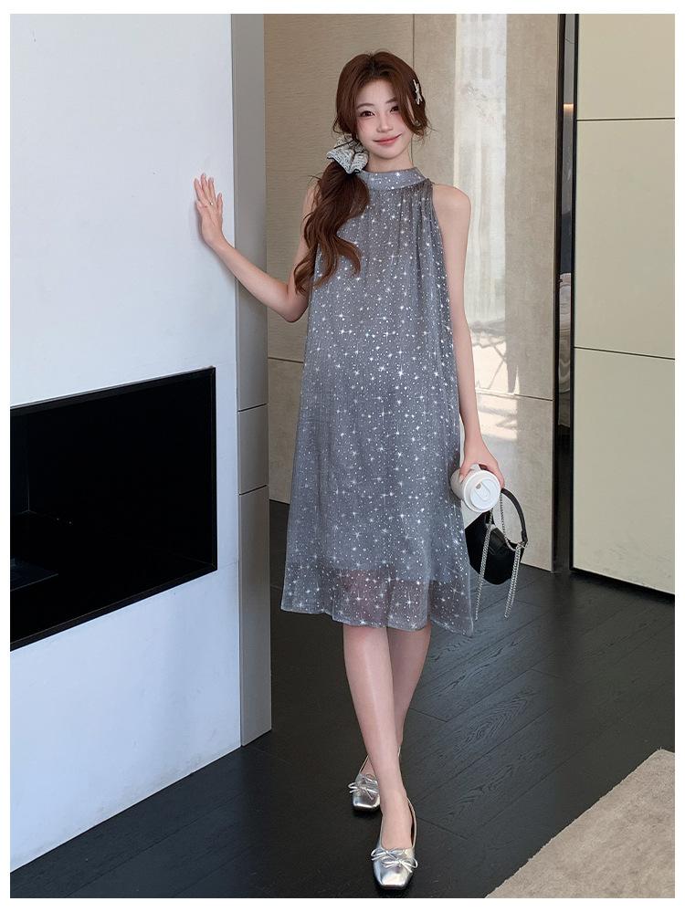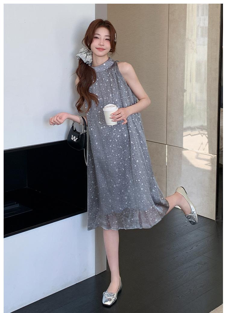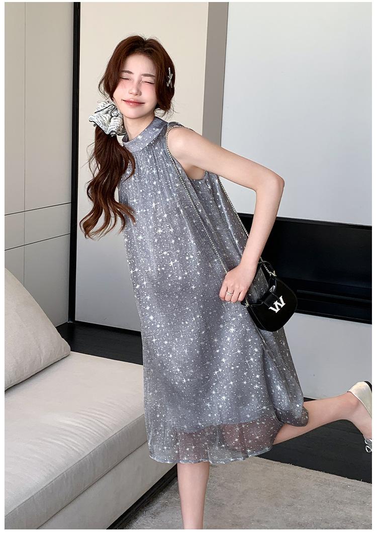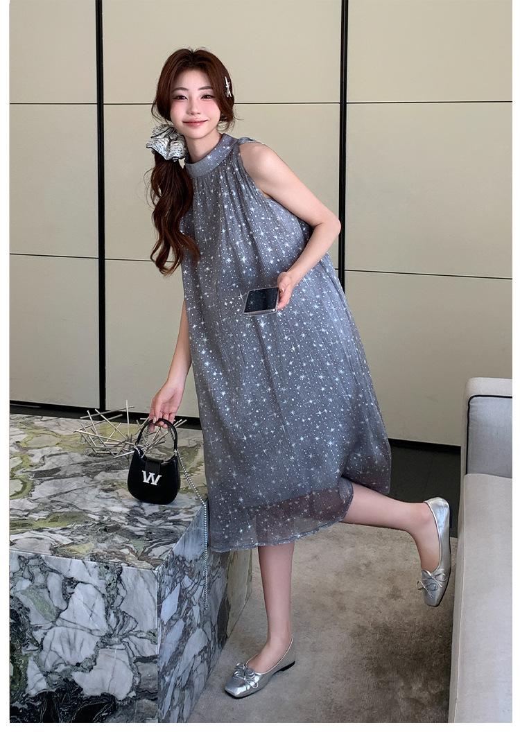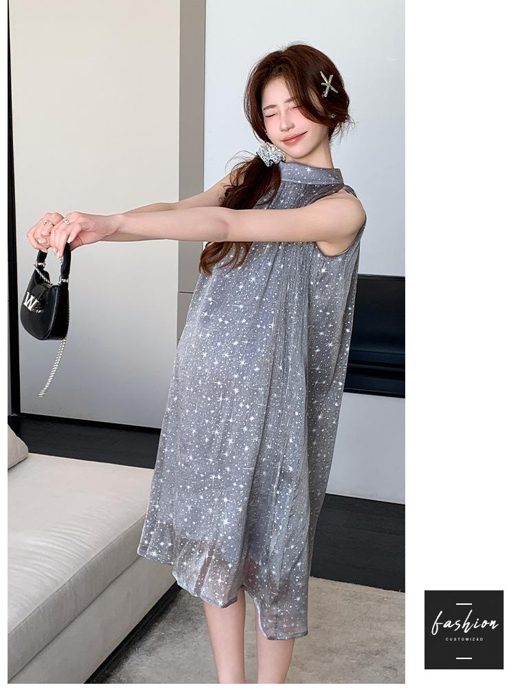 Ropa de Maternidad 2025 Verano Nuevo Estilo Moda Sin Mangas Falda de Gasa Cielo Estrellado Vestido de Maternidad Holgado