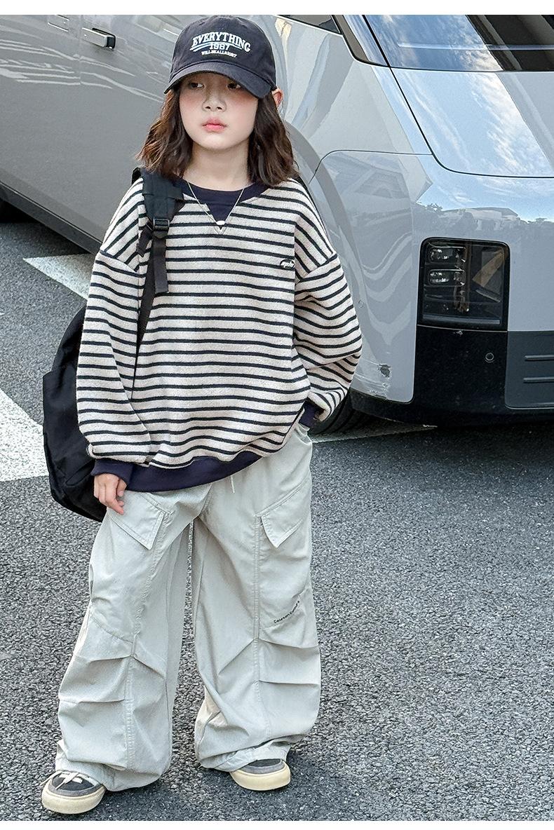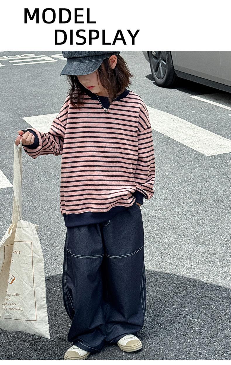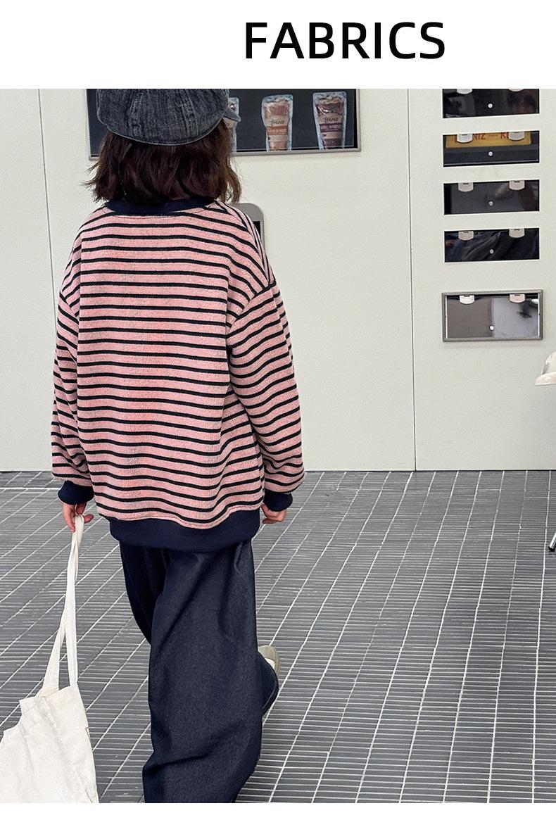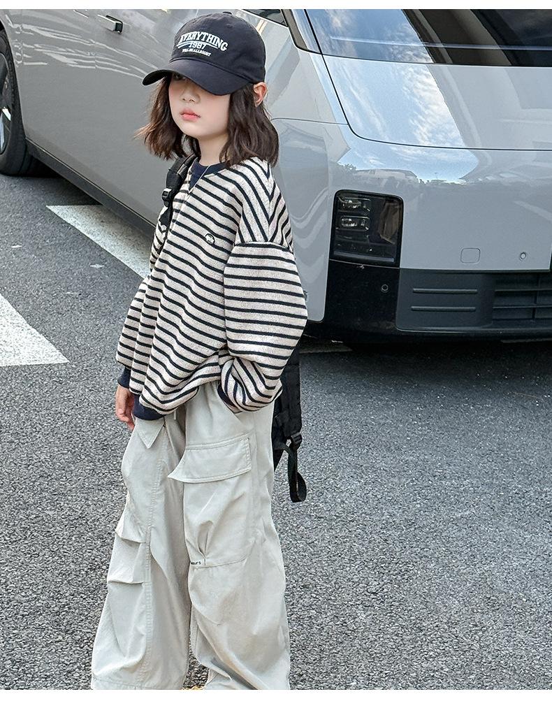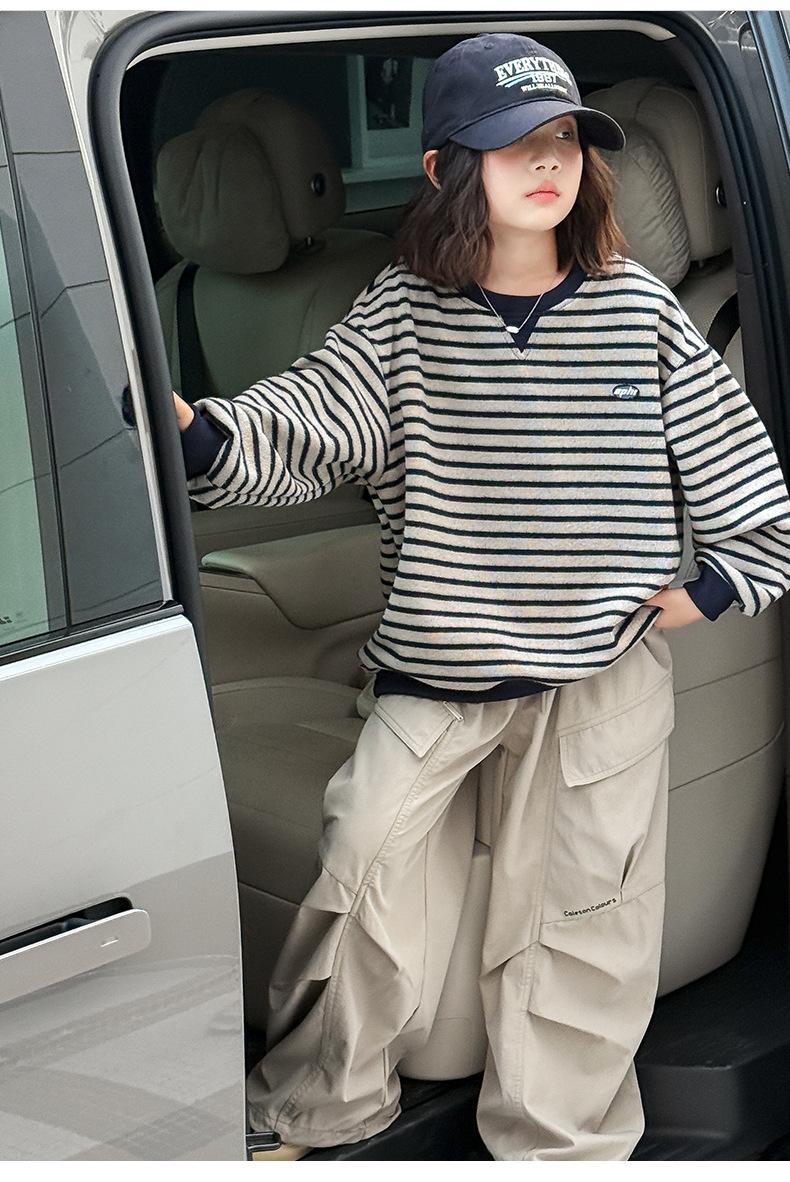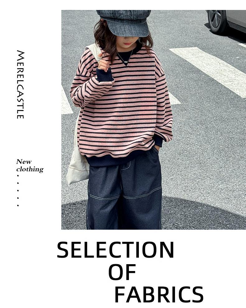 Sudadera para niña Otoño 2025 Nueva Moda Ropa de Otoño Rayada para Niña Ropa de Estilo Primavera y Otoño para Niñas Grandes Versión Coreana Top