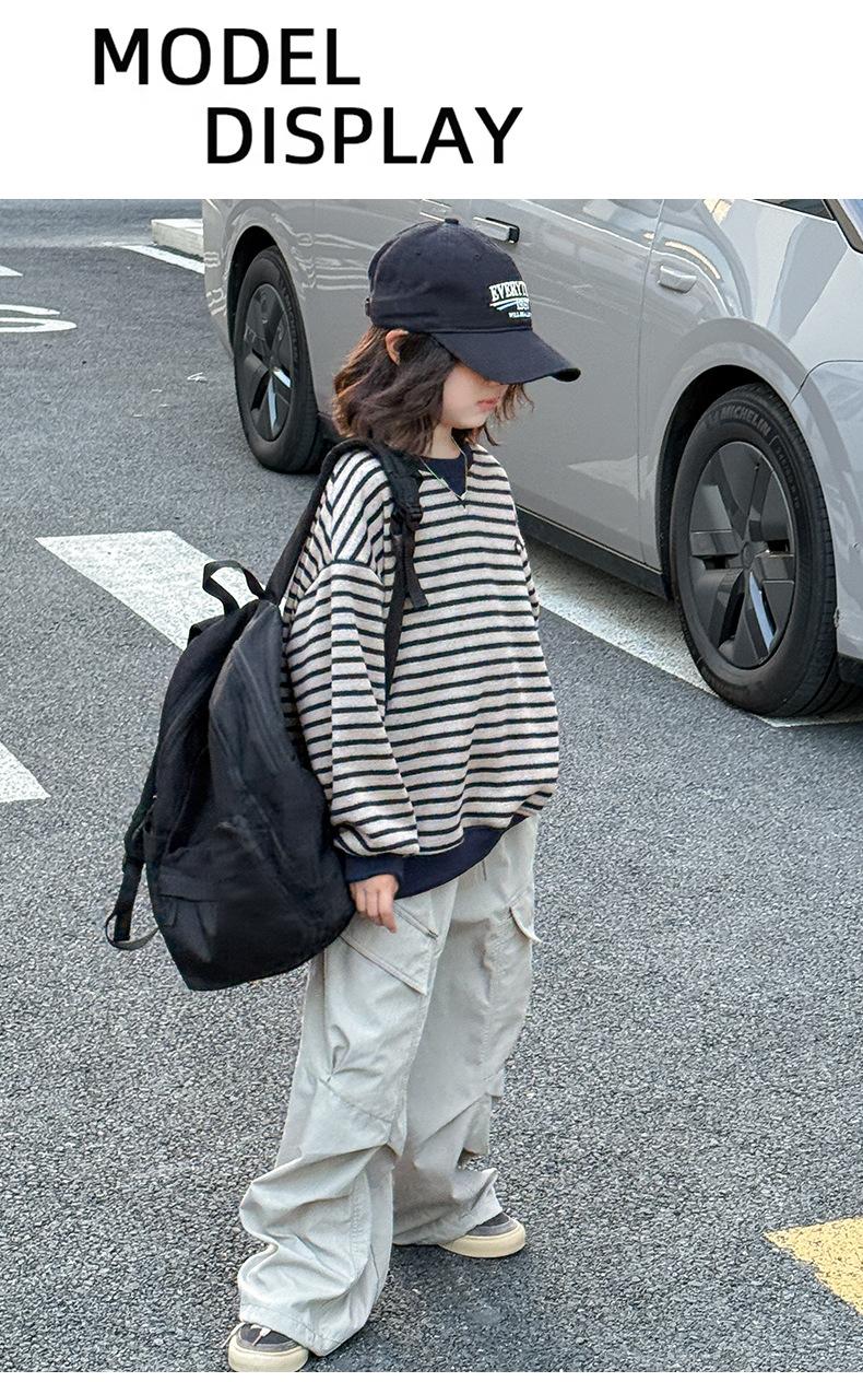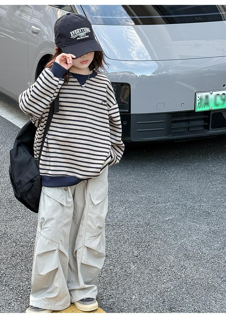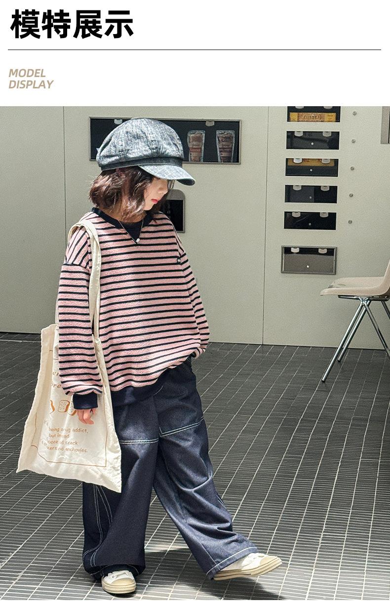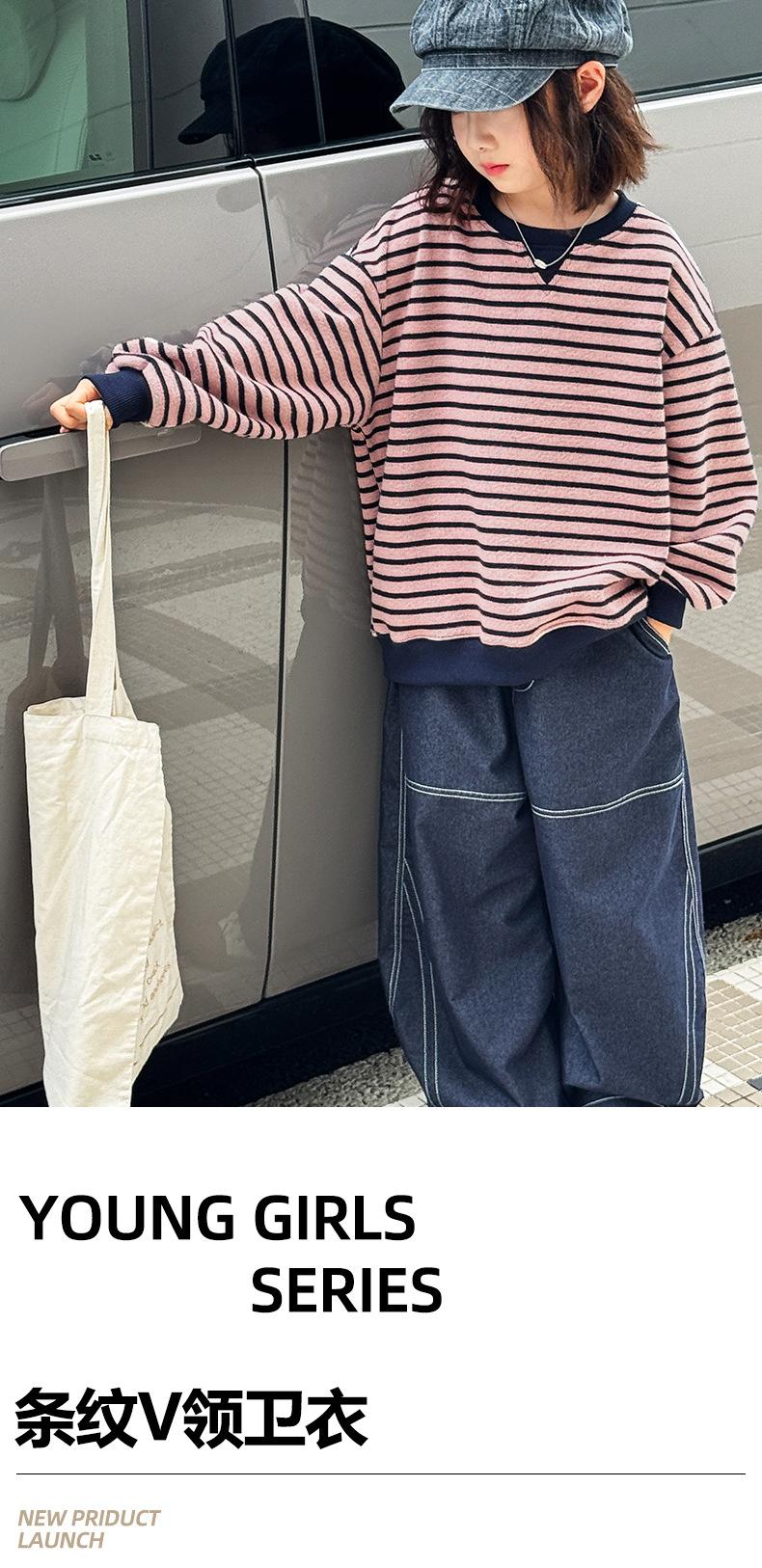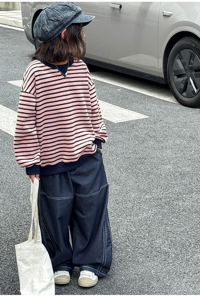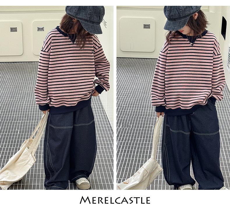Sudadera para niña Otoño 2025 Nueva Moda Ropa de Otoño Rayada para Niña Ropa de Estilo Primavera y Otoño para Niñas Grandes Versión Coreana Top