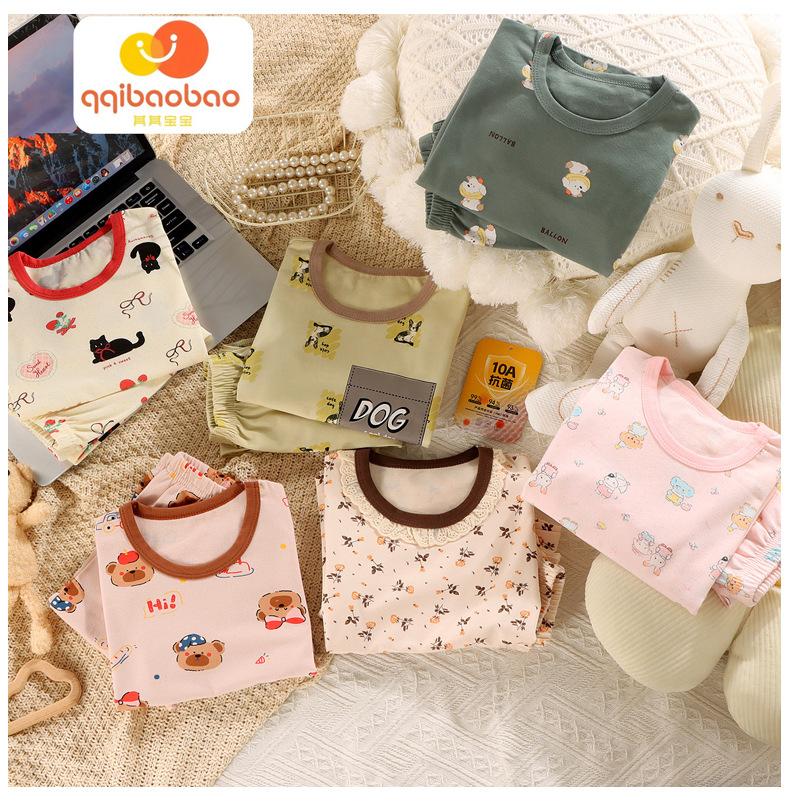 Pijamas para niños Ropa y pantalones de otoño para bebé Ropa de casa de dibujos animados Niños pequeños y medianos Estilo coreano Manga larga Pantalones largos Conjunto de cuello redondo para niños y niñas
