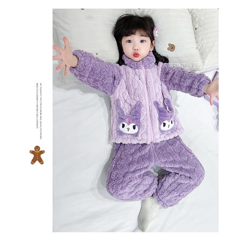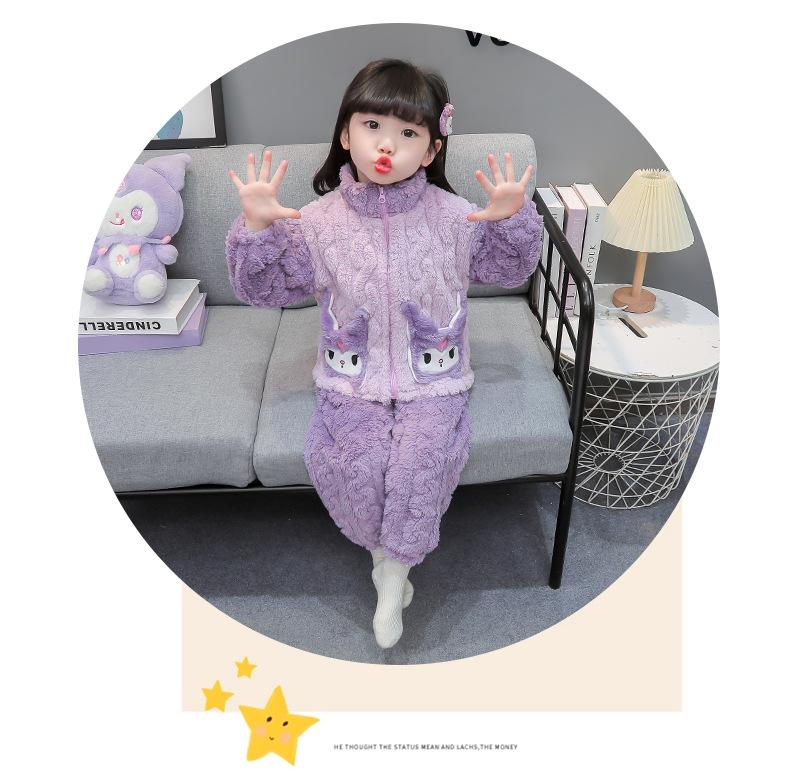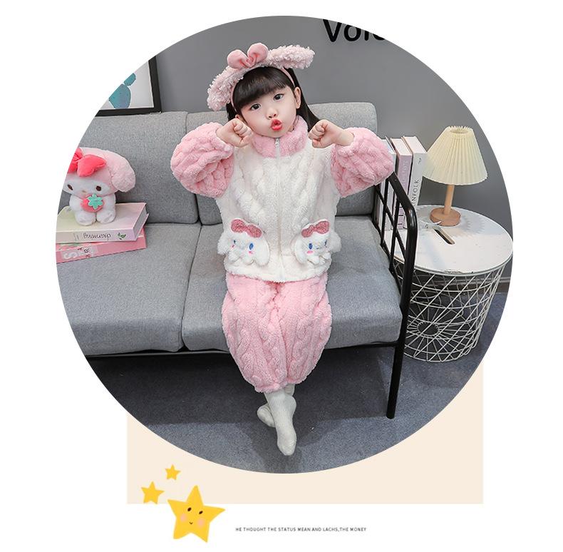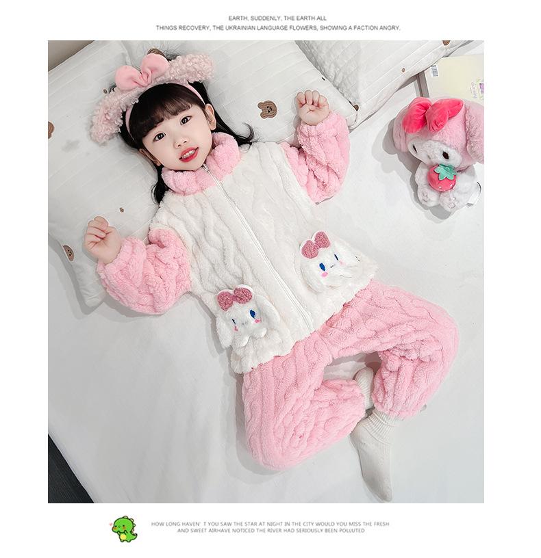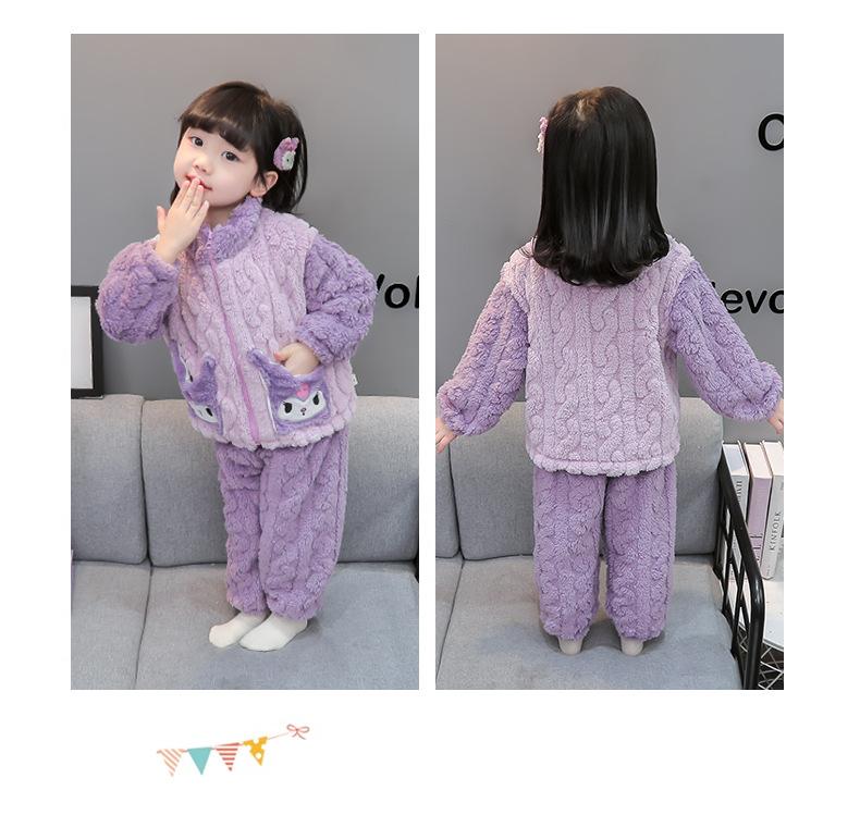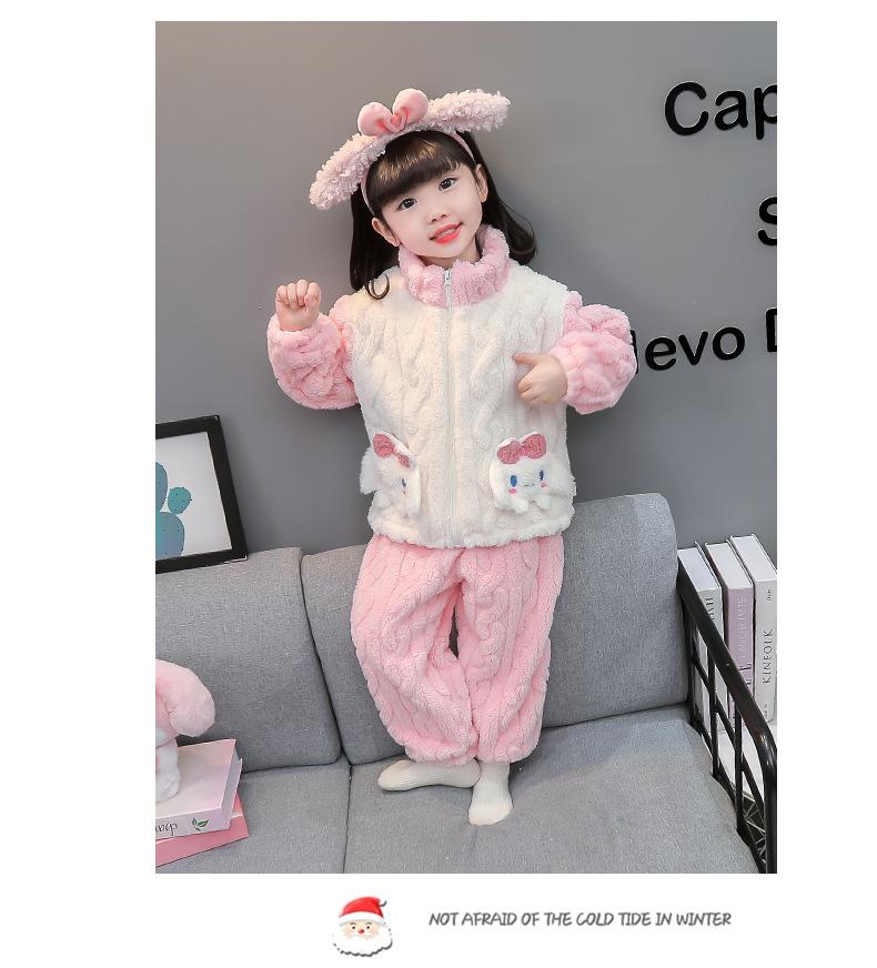 Pijamas para Niñas Otoño Invierno Franela Espesada Vellón Coral 2025 Nuevo Conjunto de Ropa de Casa para Niños Niña
