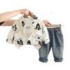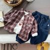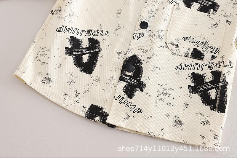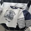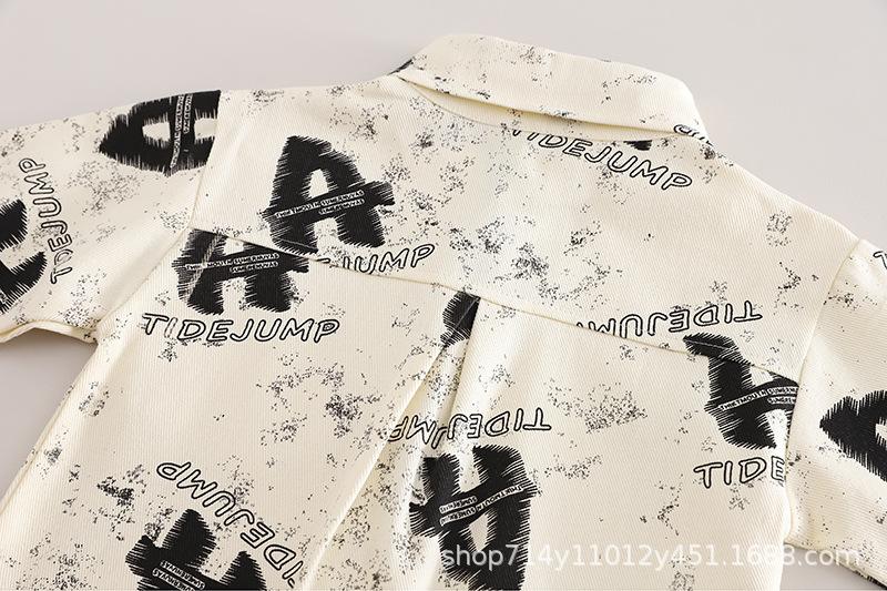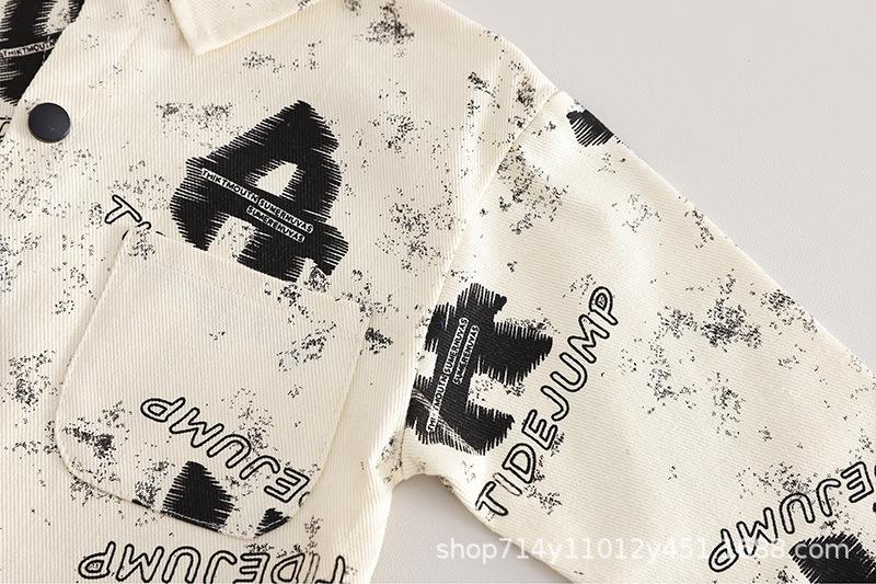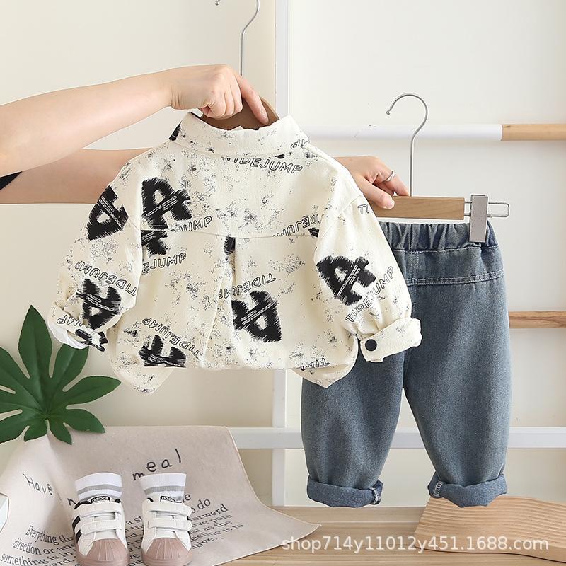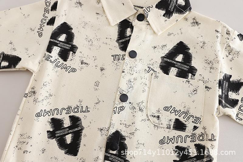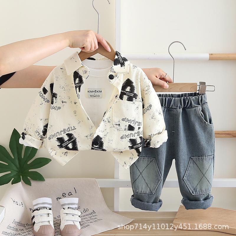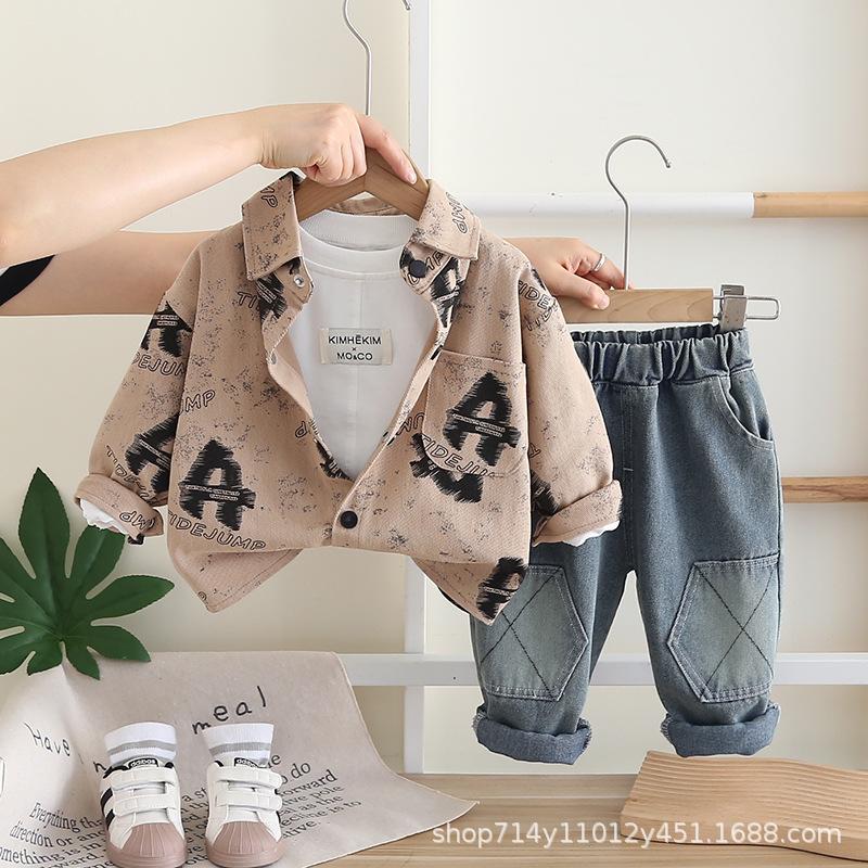 Conjunto de Moda para Niños de Primavera y Otoño 2025 Nuevo Estilo Bebé Niño Elegante Camisa con Letras Conjunto de Tres Piezas Otoño Ropa Infantil Tendencia