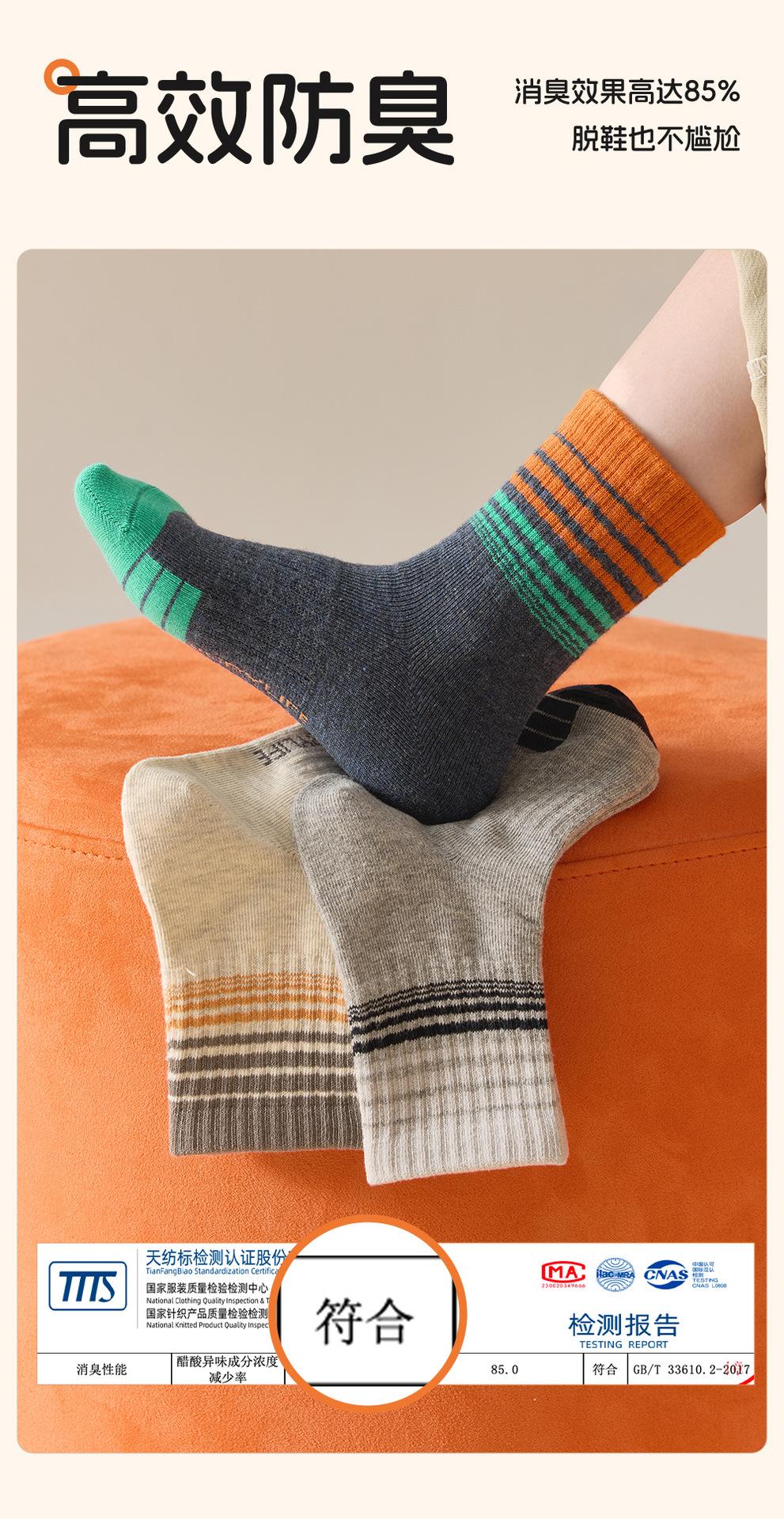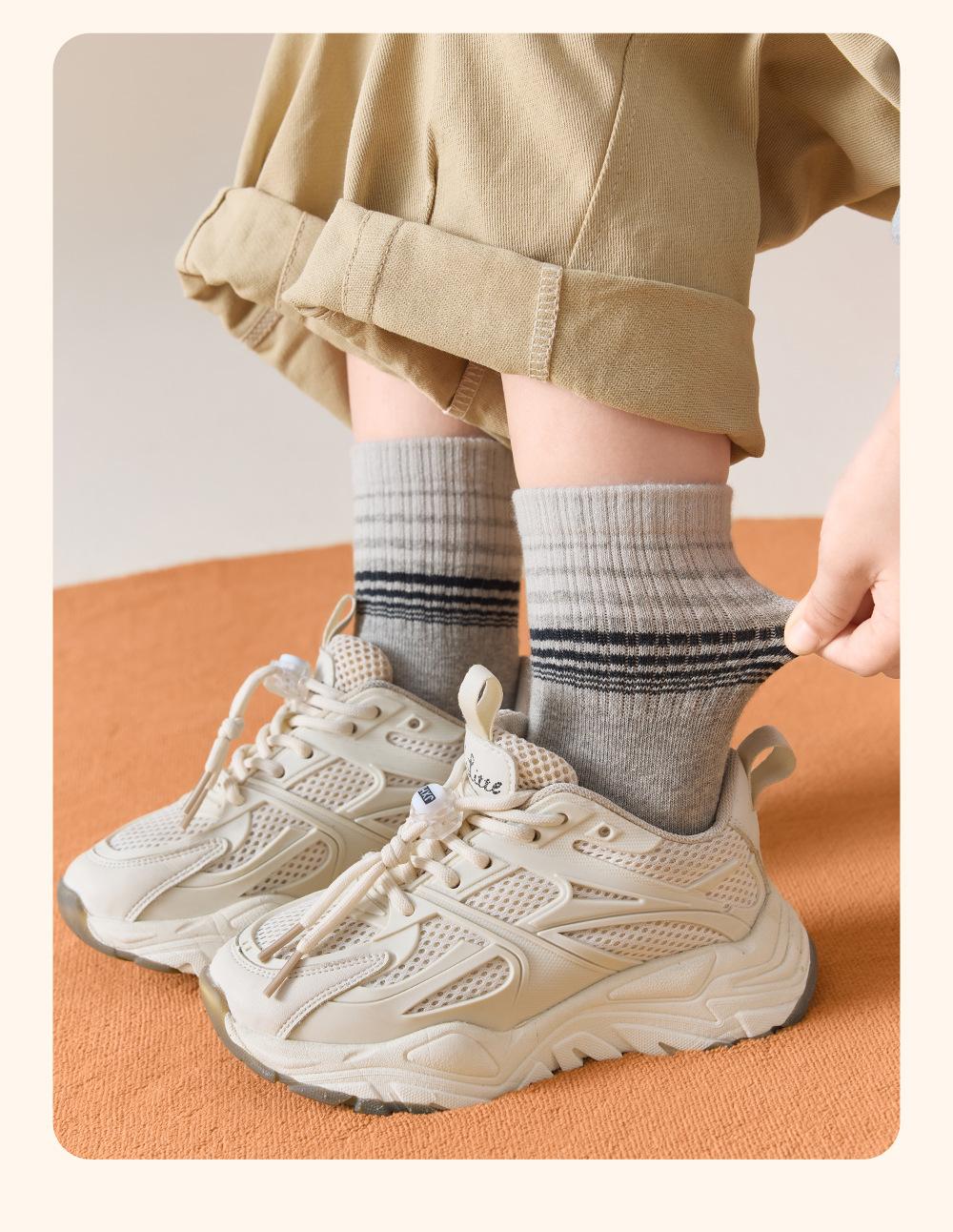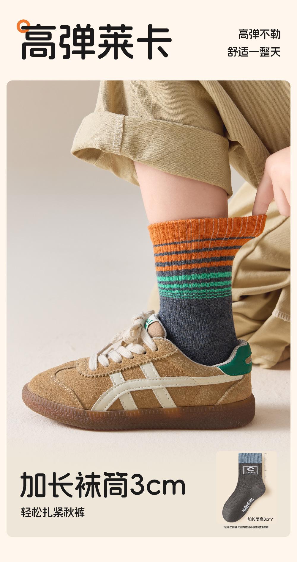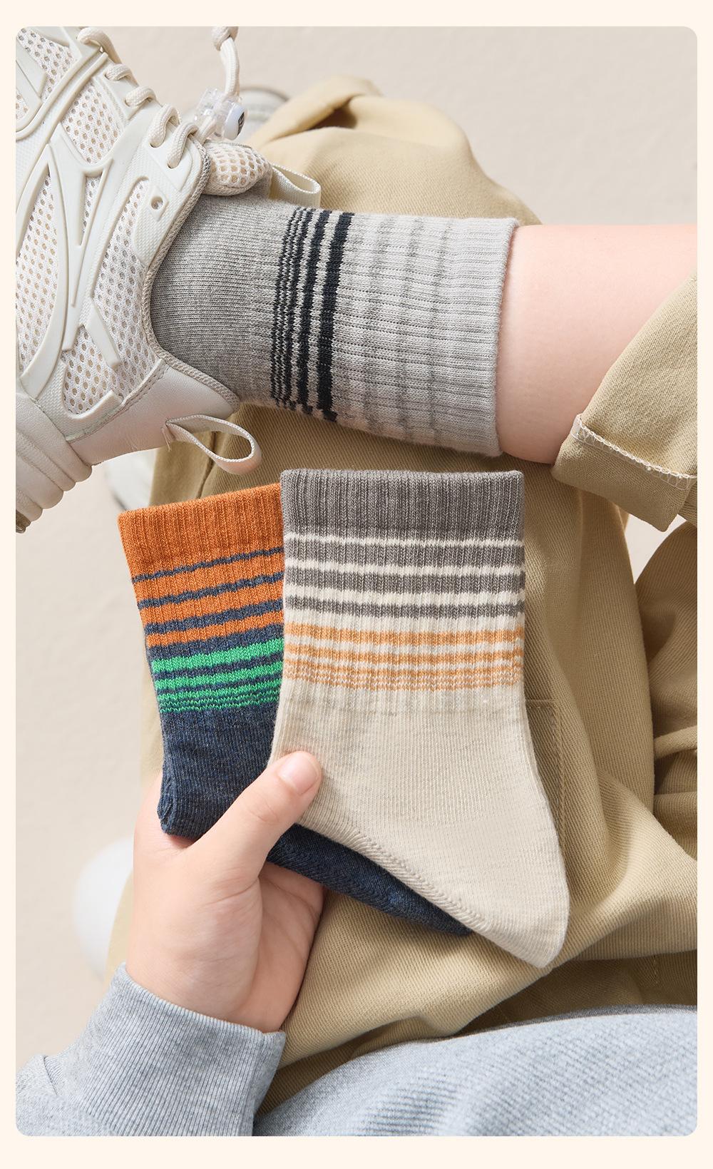 Calcetines para niños Calcetines de algodón Clase A Sin costuras Niños Niñas Otoño Invierno Adolescentes Niños grandes Resistentes al olor Absorbentes de sudor Calcetines a media pantorrilla a rayas