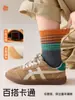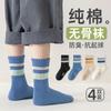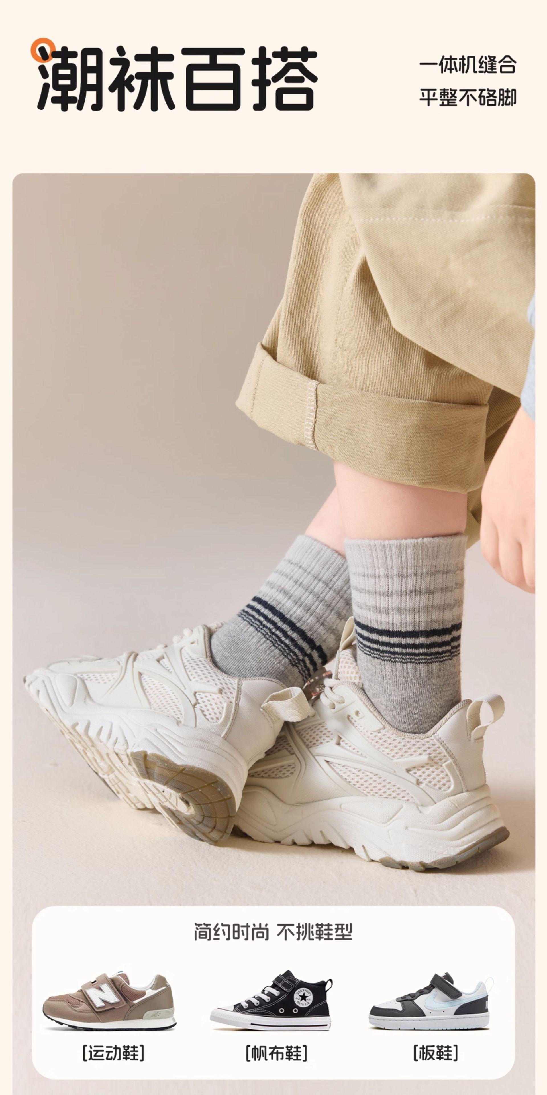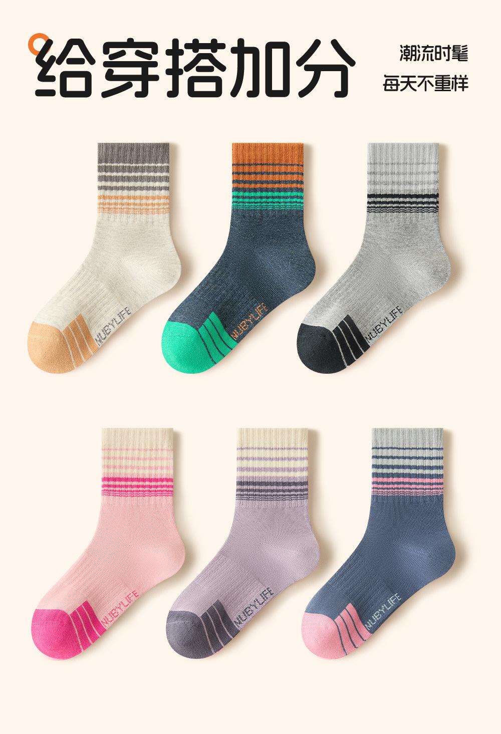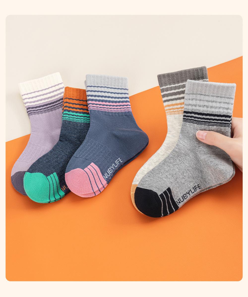 Calcetines para niños Calcetines de algodón Clase A Sin costuras Niños Niñas Otoño Invierno Adolescentes Niños grandes Resistentes al olor Absorbentes de sudor Calcetines a media pantorrilla a rayas